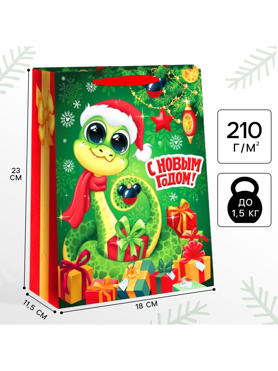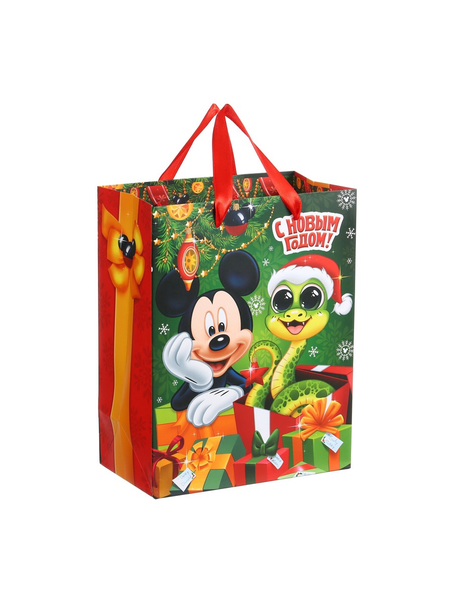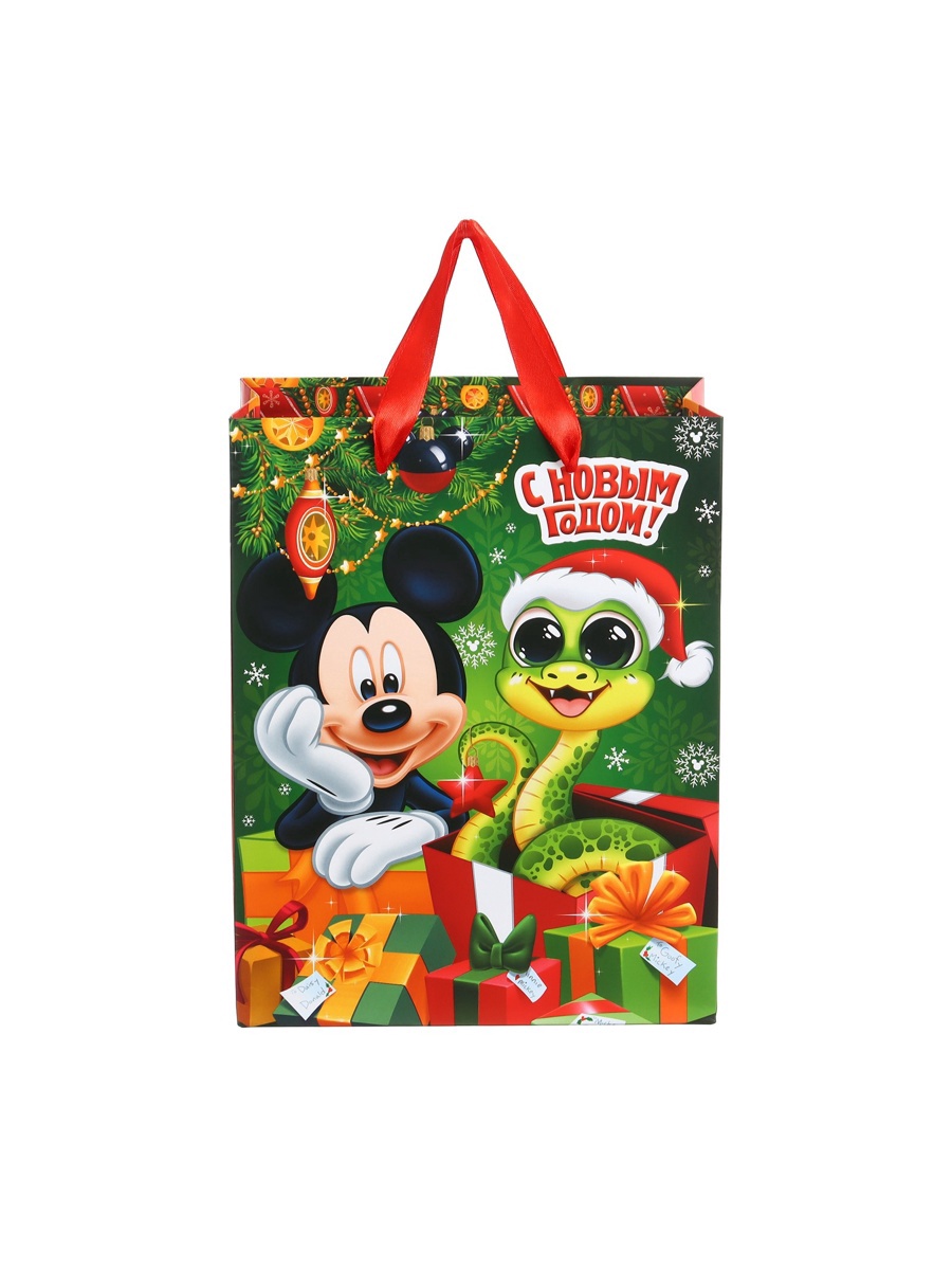 Пакет подарочный новогодний «с новым годом» 23 х 18 х 11.5 см, упаковка, микки маус. Цвет:Зелёный|Для кого:Для девочки|Для кого:Для мальчика|Плотность, г/м :210|Допустимый вес вложения, г:1500|Тематика:Новогодняя|Символ года:Нет|Тематика праздника:Новый год|Материал:Картон|Отделка пакета:Ламинация|Вид ручки:Бумажная|Страна:Китай  развернуть описание ▼