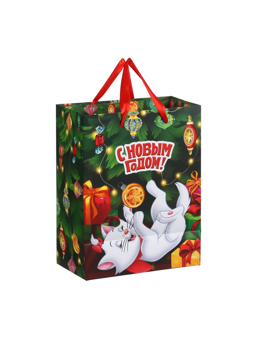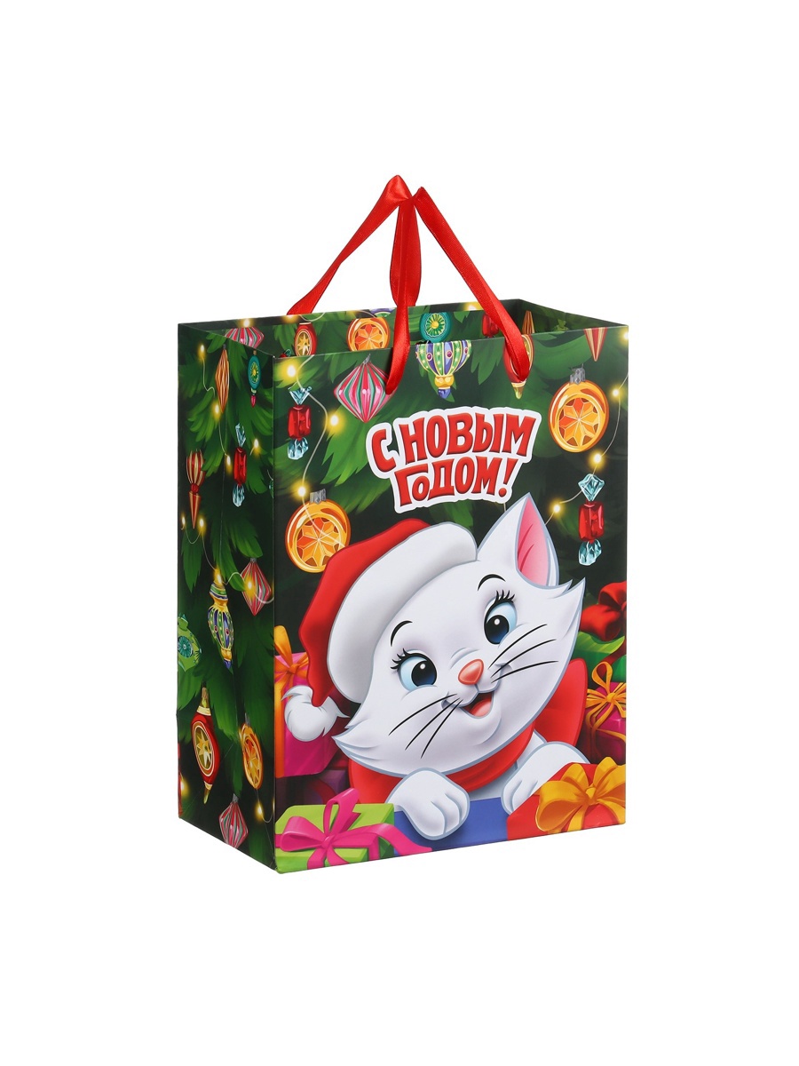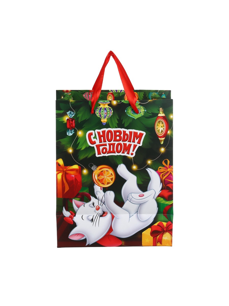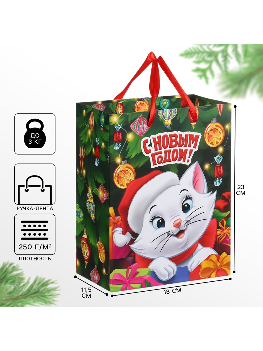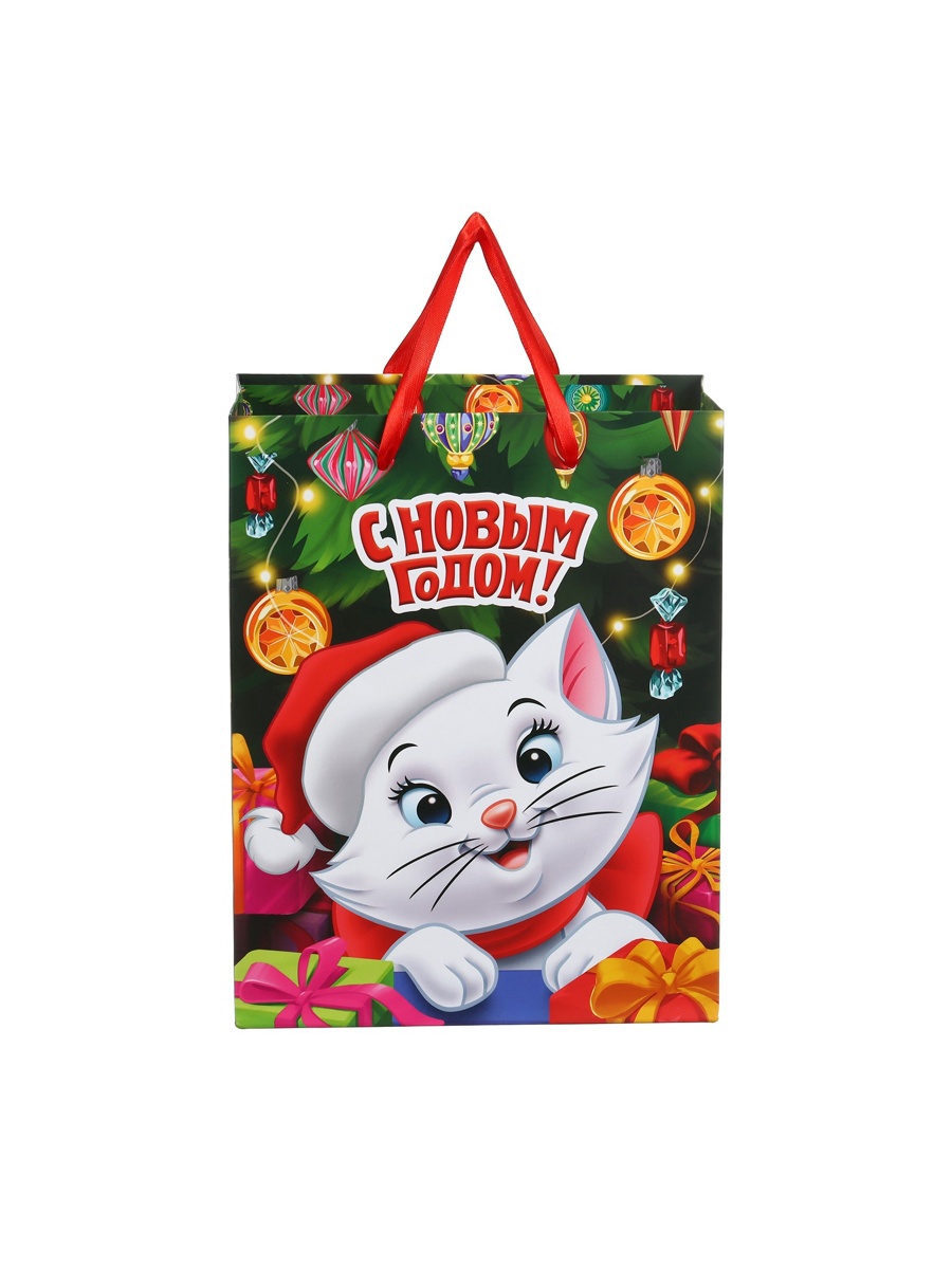 Пакет подарочный новогодний «с новым годом», 18 х 23 х 11.5 см, упаковка, коты аристократы. Цвет:Зелёный|Для кого:Для девочки|Плотность, г/м :210|Допустимый вес вложения, г:1500|Тематика:Новогодняя|Символ года:Нет|Тематика праздника:Новый год|Материал:Картон|Отделка пакета:Ламинация|Вид ручки:Бумажная|Страна:Китай  развернуть описание ▼