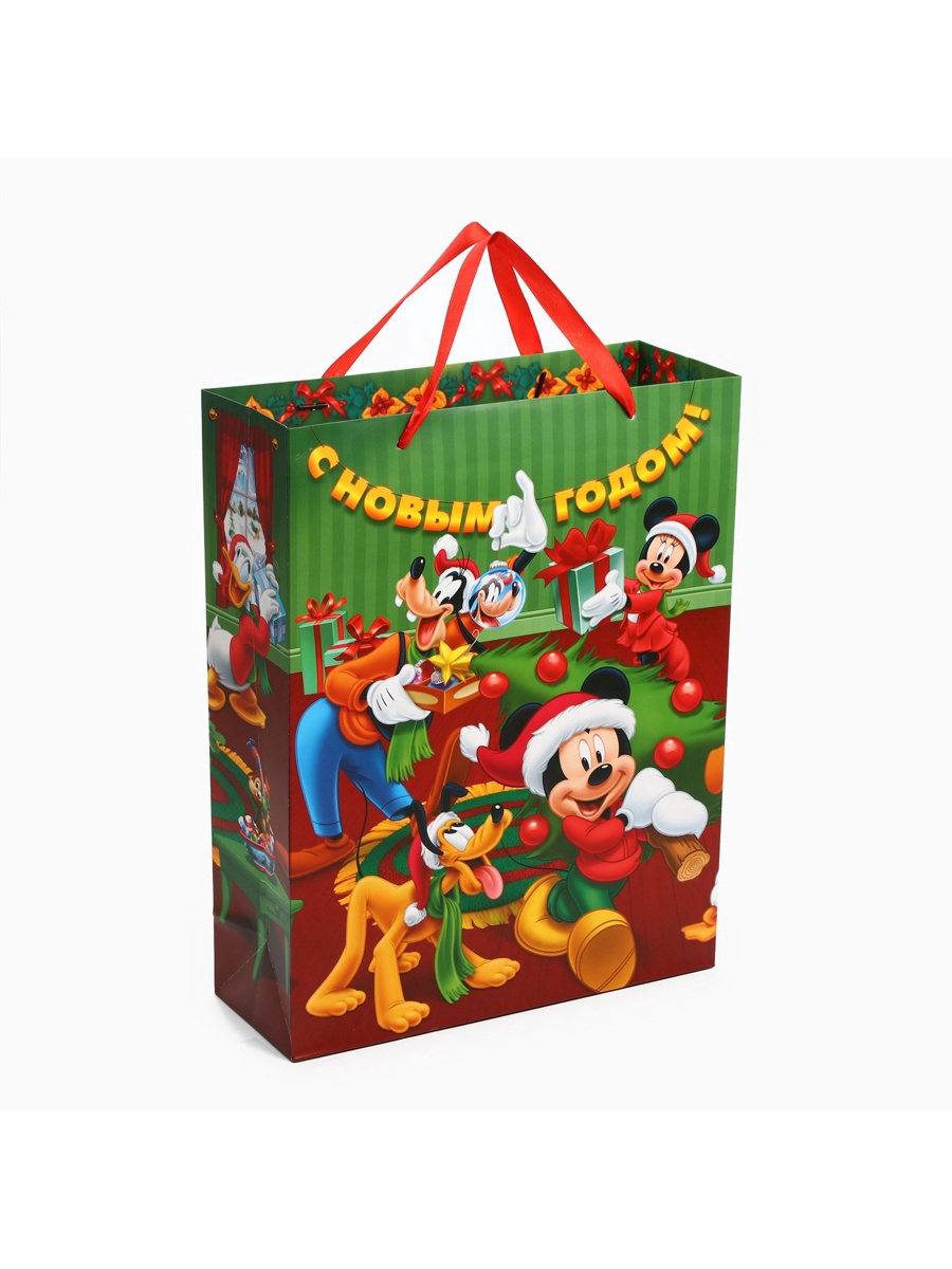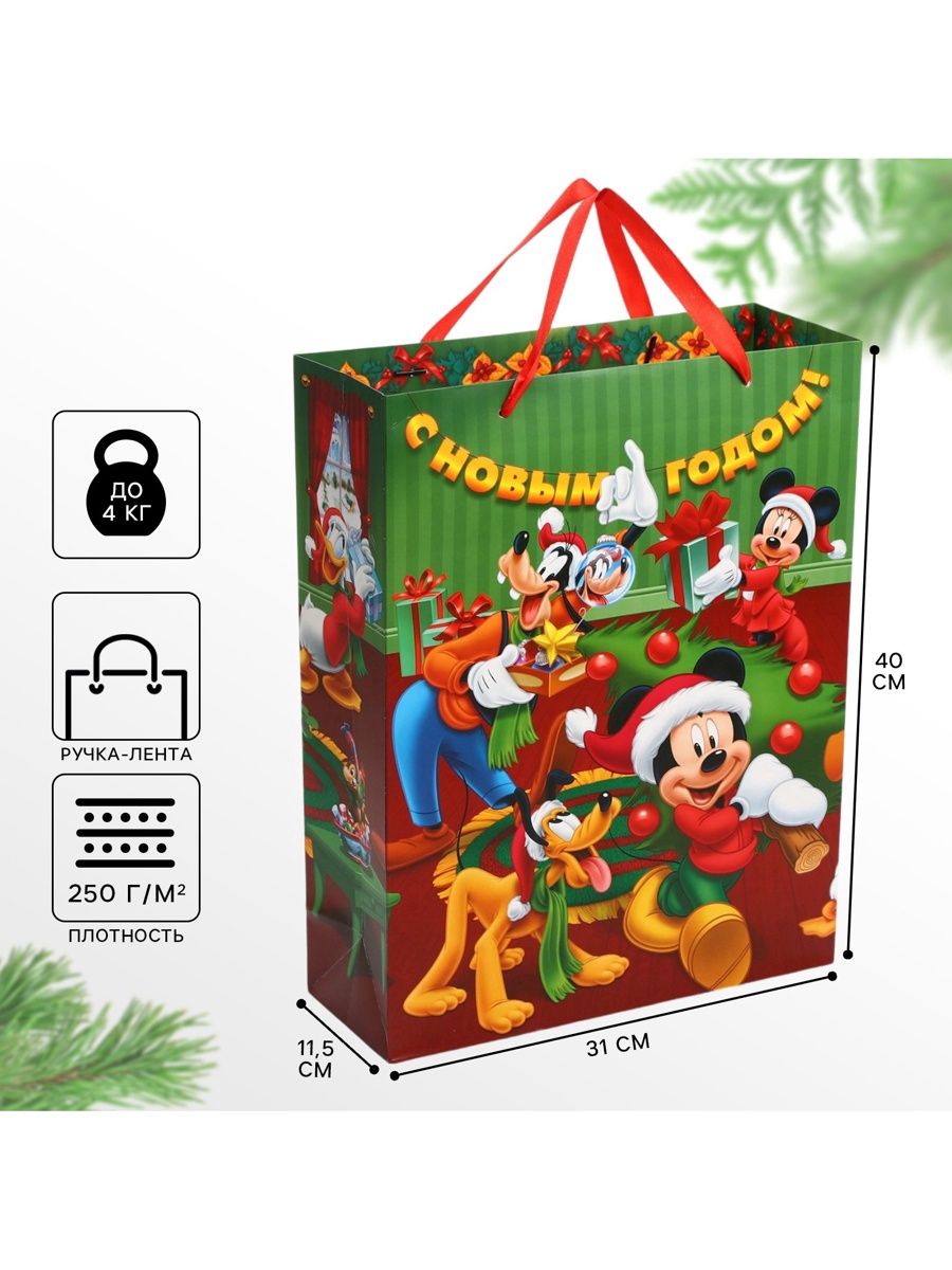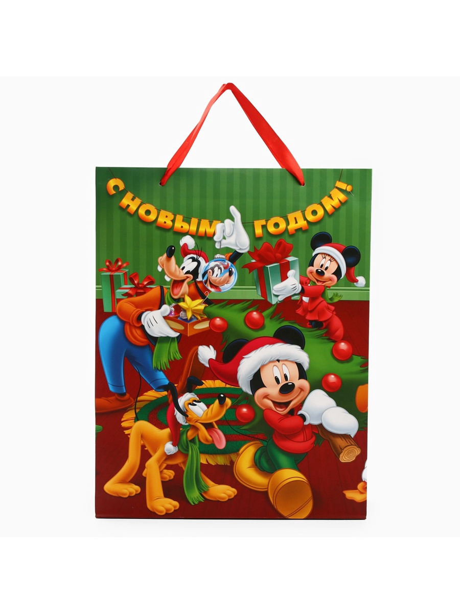 Пакет подарочный новогодний «с новым годом», 31 х 40 х 11.5 см, упаковка, микки маус. Цвет:Разноцветный|Для кого:Для девочки|Для кого:Для мальчика|Плотность, г/м :210|Допустимый вес вложения, г:3000|Тематика:Новогодняя|Символ года:Нет|Тематика праздника:Новый год|Материал:Картон|Отделка пакета:Ламинация|Вид ручки:Ручка-лента|Страна:Китай