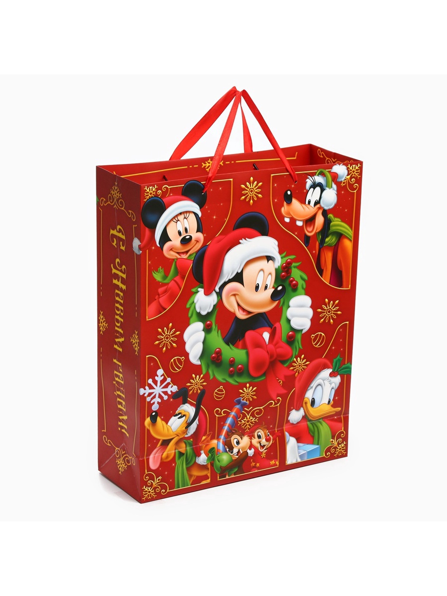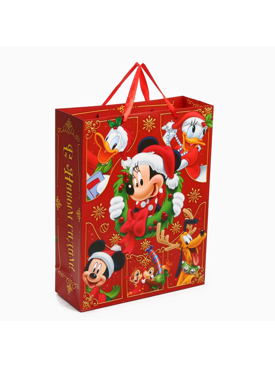 Пакет подарочный новогодний «с новым годом», 31 х 40 х 11.5 см, упаковка, микки маус. Цвет:Красный|Для кого:Для девочки|Для кого:Для мальчика|Плотность, г/м :210|Допустимый вес вложения, г:3000|Тематика:Новогодняя|Символ года:Нет|Тематика праздника:Новый год|Материал:Картон|Отделка пакета:Ламинация|Вид ручки:Ручка-лента|Страна:Китай  развернуть описание ▼