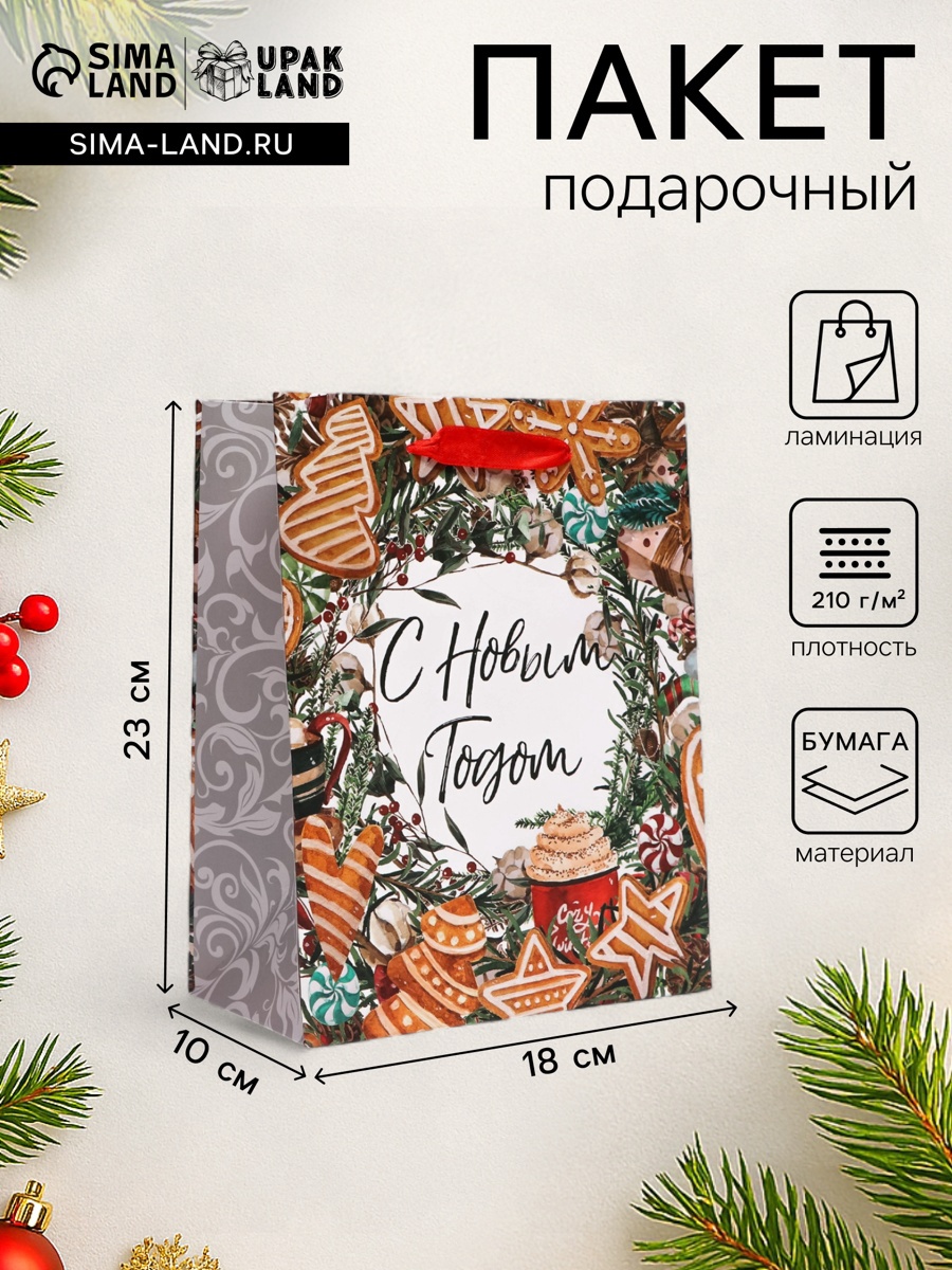 Пакет подарочный новогодний ламинированный «с новым годом!»,18 23 10 см. Подарочный пакет, ламинированный и новогодний, размером 18 х 23 х 10 см — это идеальный выбор для упаковки ваших праздничных сюрпризов. Этот пакет сочетает в себе практичность и элегантный дизайн, который украсит любой подарок и создаст особую атмосферу волшебства и радости. Ламинированная поверхность придает пакету особую прочность и блеск, защищая его от возможных повреждений и придавая ему дополнительную изысканность.Праздничный дизайн с яркими и насыщенными цветами, украшенный новогодними мотивами— создает неповторимое ощущение праздника и тепла.Размер пакета 18 х 23 х 10 см оптимален для небольших и средних подарков, таких как книги, косметика, аксессуары, сладости или игрушки.Удобные ручки из прочного материала обеспечивают комфорт при переноске, а вместительное основное отделение позволяет легко разместить все необходимые предметы.Такой подарочный пакет станет неотъемлемой частью вашего подарка, дополняя его и делая его еще более особенным. Это не просто упаковка — это возможность создать целую новогоднюю историю, где каждый элемент, включая этот элегантный пакет, играет важную роль в создании праздничного настроения. Цвет:Разноцветный|Для кого:Унисекс|Форма:Прямоугольная|Плотность, г/м :210|Длина, см:18|Ширина, см:10|Высота, см:23|Тематика:Рождественская|Тематика:Новогодняя|Вид упаковки:Пакет бумажный|Символ года:Нет|Тематика праздника:Новый год|Тематика праздника:Рождество|Материал:Бумага|Отделка пакета:Декор|Отделка пакета:Ламинация|Расширение:Боковая складка|Вид ручки:Ручка-лента|Форма пакета:Вертикальный|Страна:Китай  развернуть описание ▼