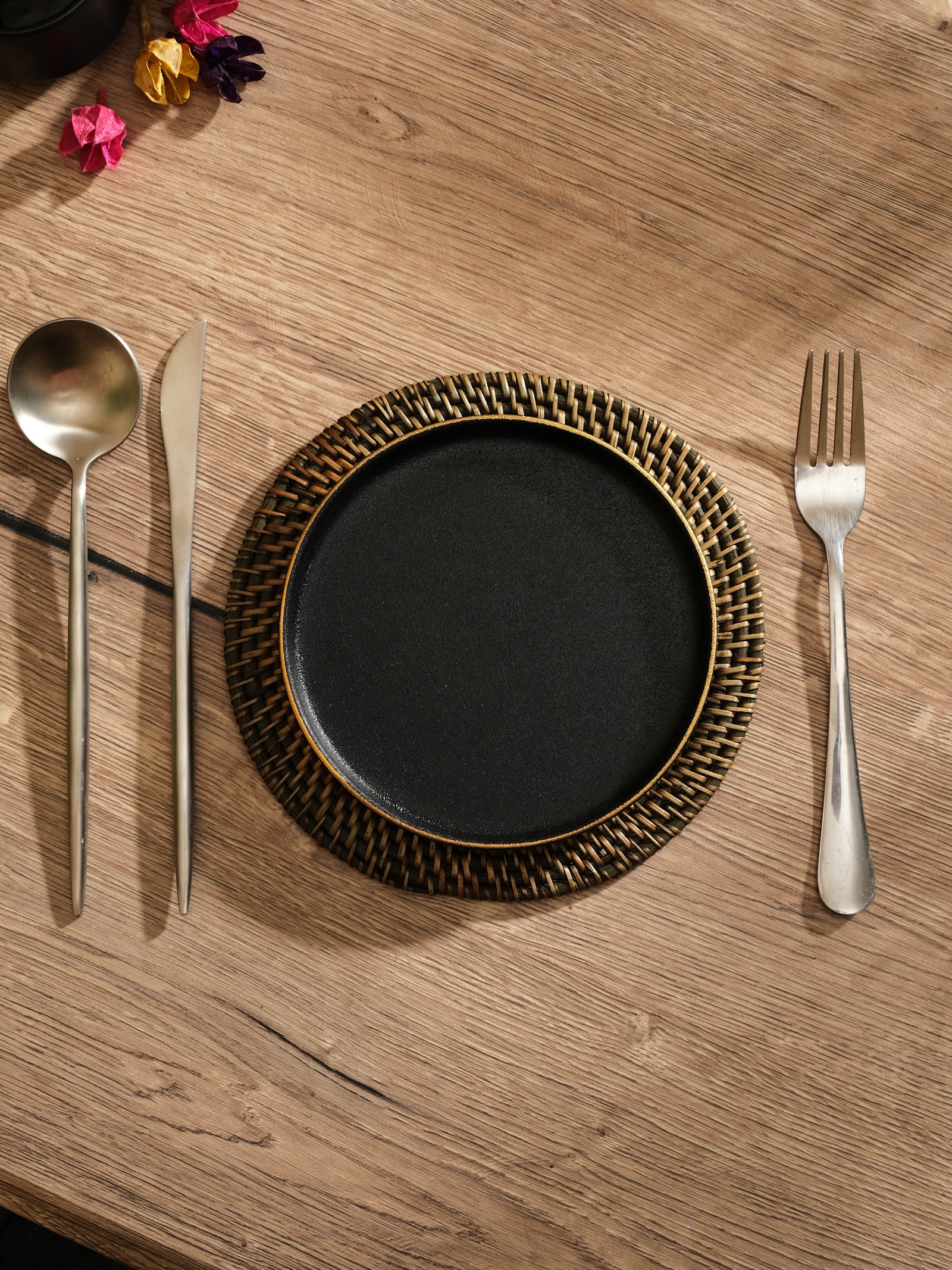 Салфетка сервировочная плетёная круглая, 20x20x0.5 см, ротанг.