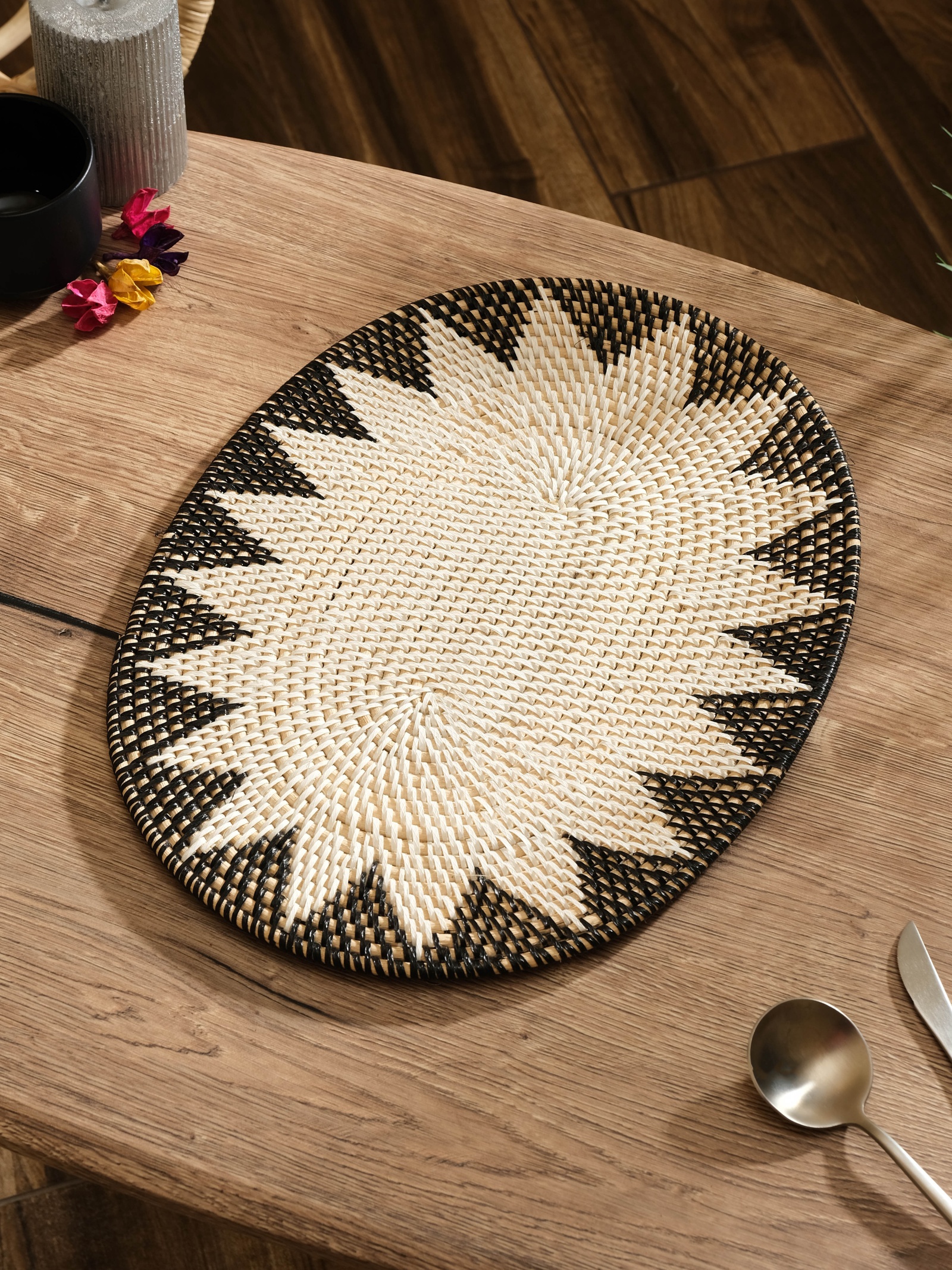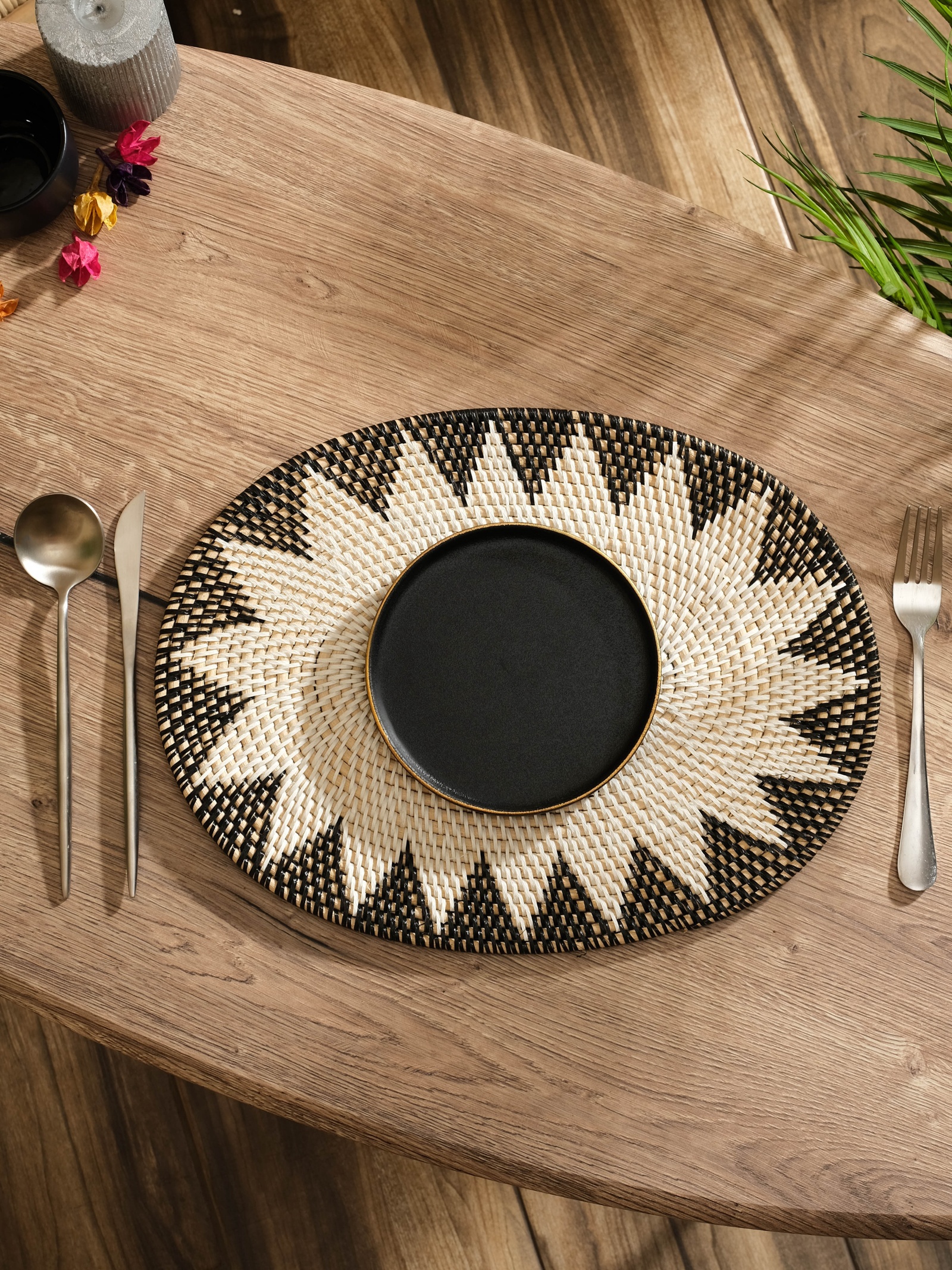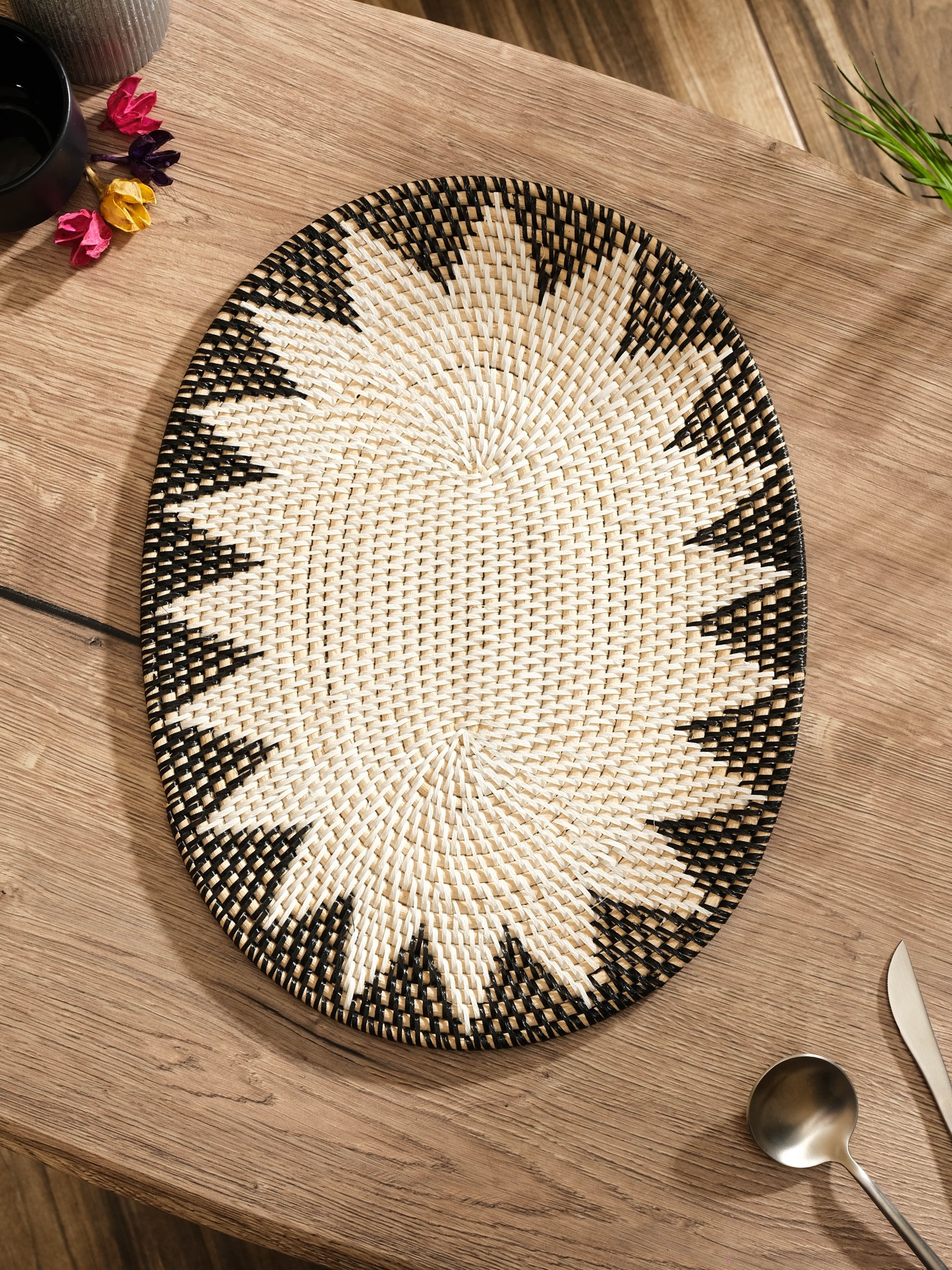 Коврик сервировочный плетеный овальный ротанг, 40х30х0,5 см, чёрно-белый