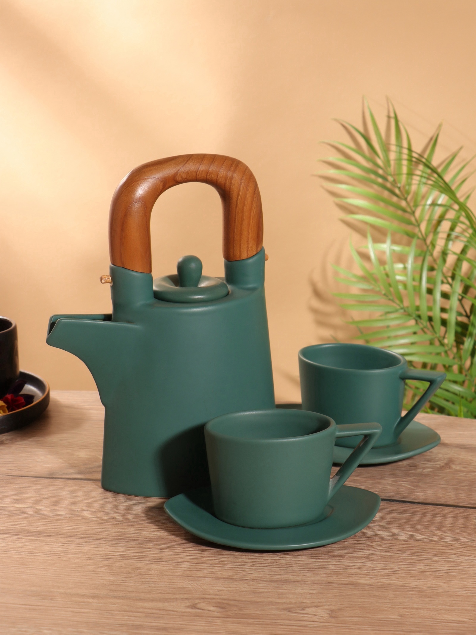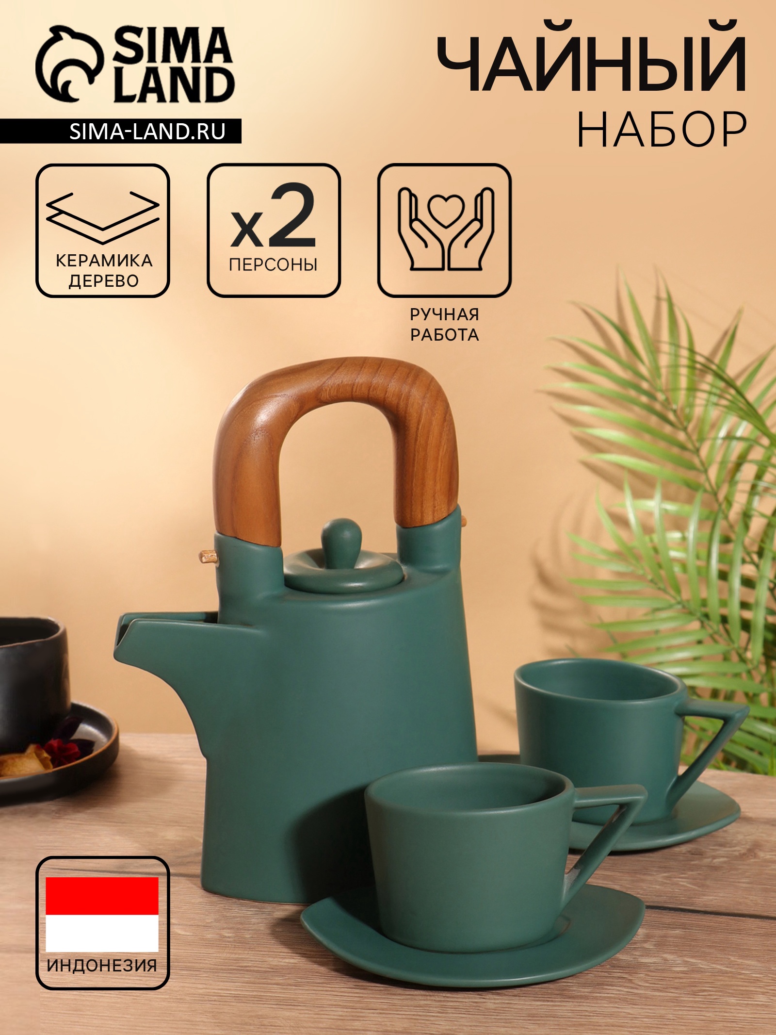 Набор для чаепития «старинный обычай», чайник, 2 чайные пары, керамика. Цвет: Зелёный Для кого: Унисекс parts count: 0 Количество персон: 2 В наборе, шт.: 3 Тематика: Однотонная Вид упаковки: Бумажная обертка Адресат: Без адресата Материал: Дерево Материал: Керамика Наличие подставки: Нет Составляющие набора: Кружка Составляющие набора: Чайник Возраст: Для взрослых Можно мыть в посудомоечной машине: Нет Можно использовать в СВЧ-печи: Нет Текстура: Гладкая Тип: Чайный сервиз Особенности: Деревянная ручка Особенности: Ручная работа Тематика подарка: Кухонные принадлежности Тематика подарка: Хозтовары Вид: Чайный набор Форма: Фигурная  развернуть описание ▼