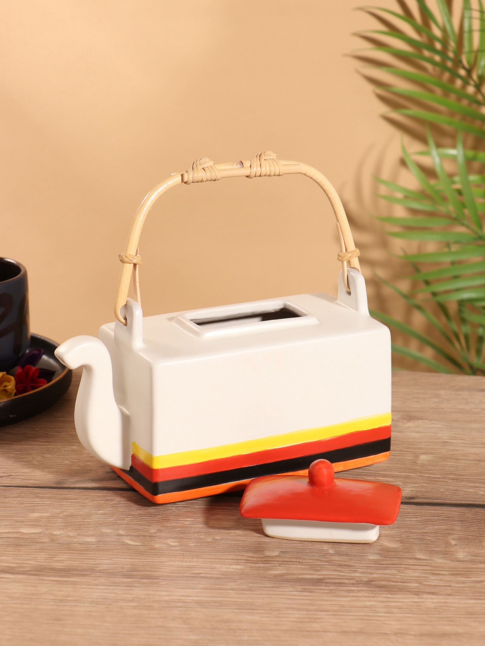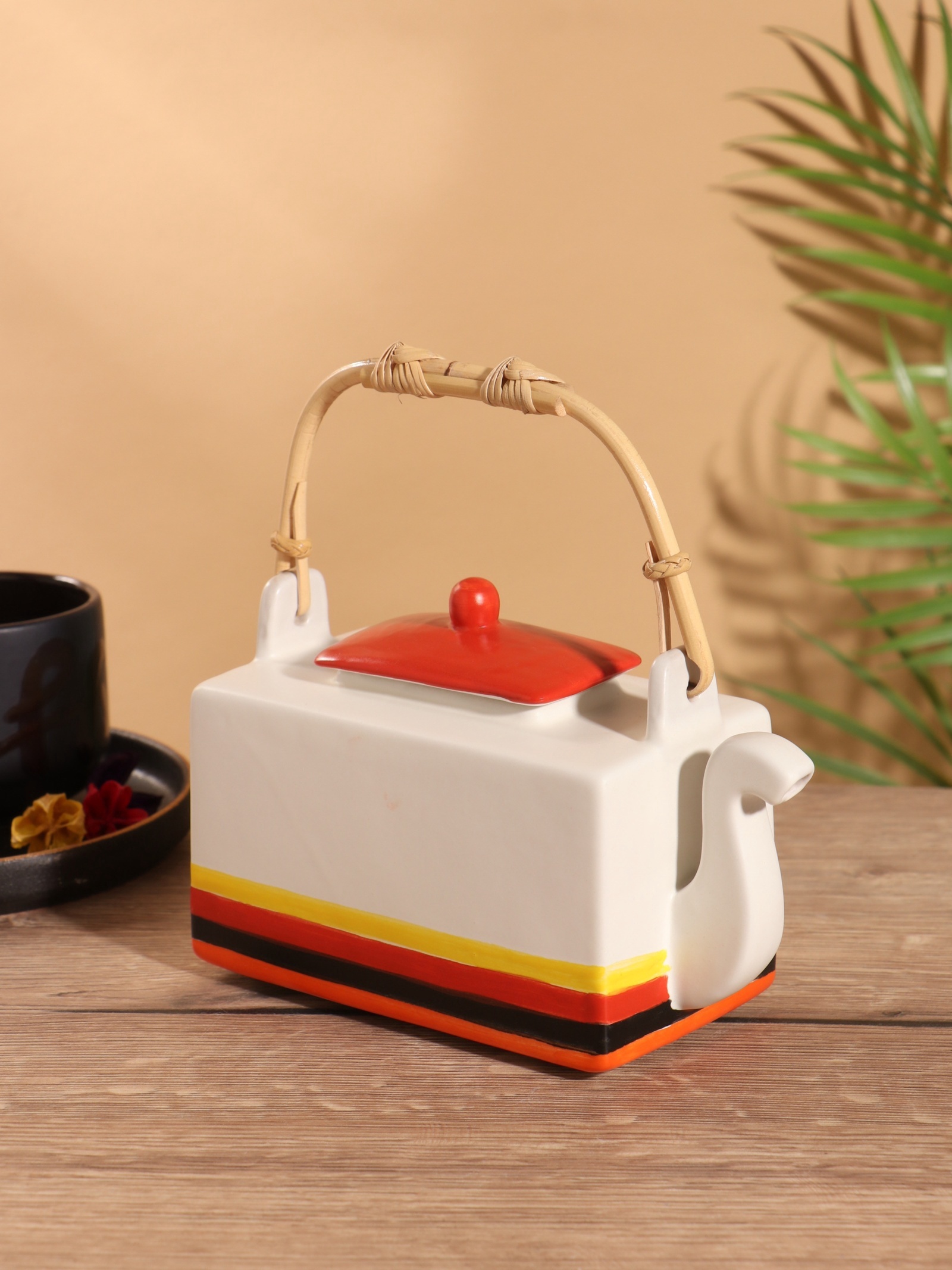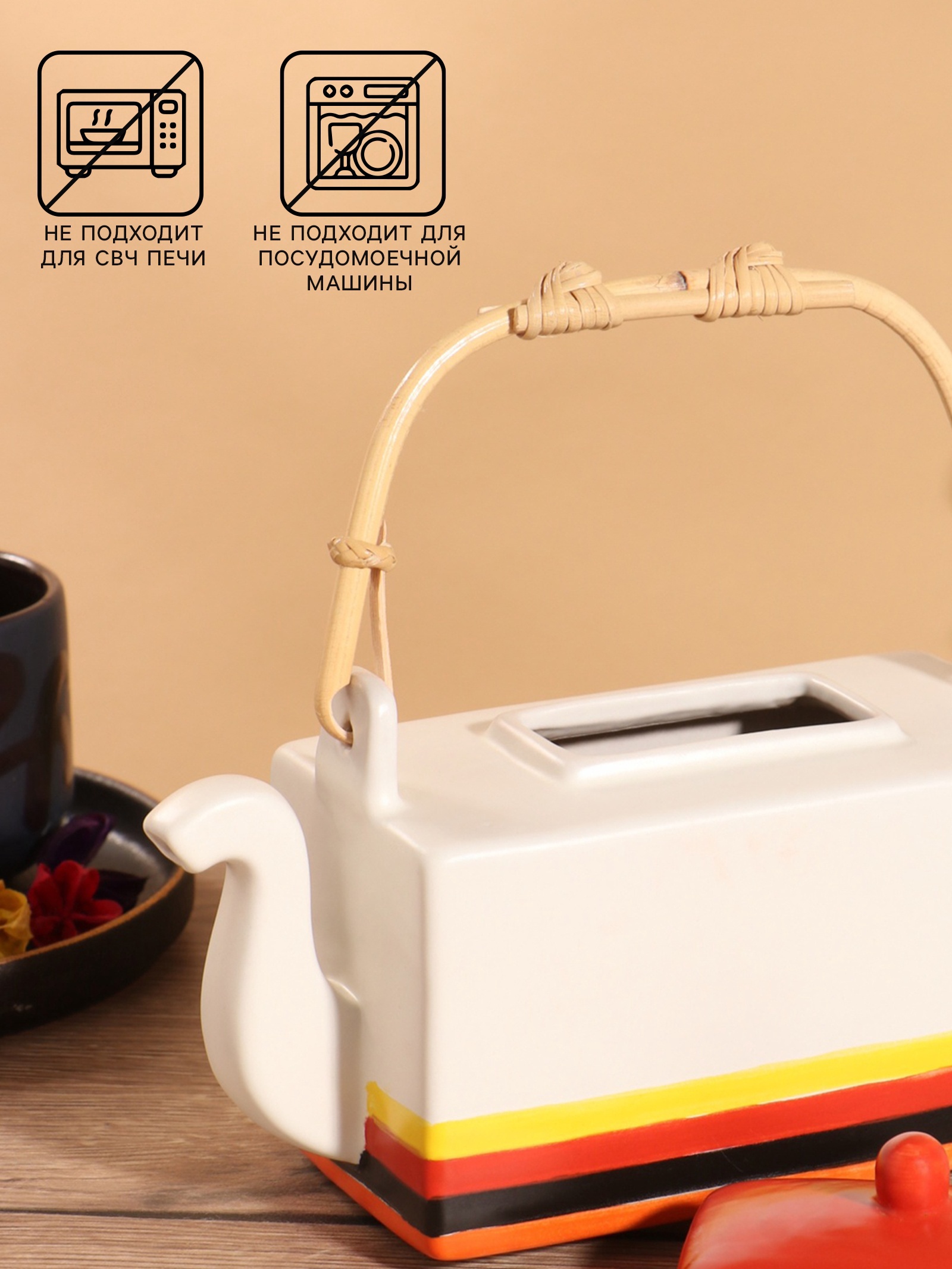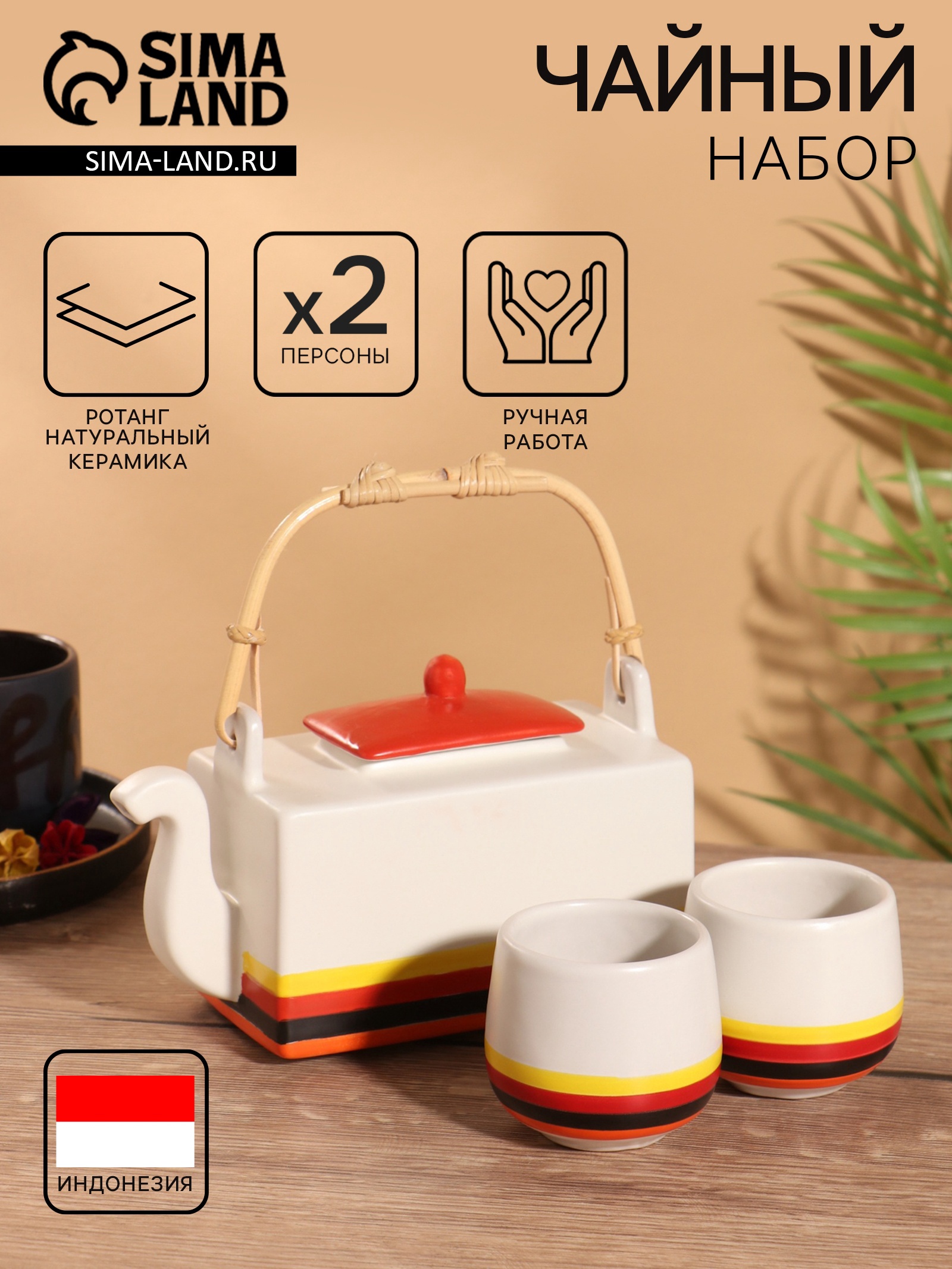 Набор для чаепития «мода», чайник, 2 стакана, керамика. Цвет: Белый Цвет: Оранжевый Для кого: Унисекс parts count: 0 Количество персон: 2 В наборе, шт.: 3 Тематика: Полоски, полоса Вид упаковки: Бумажная обертка Адресат: Без адресата Материал: Ротанг натуральный Материал: Керамика Наличие подставки: Нет Составляющие набора: Кружка Составляющие набора: Чайник Возраст: Для взрослых Можно мыть в посудомоечной машине: Нет Можно использовать в СВЧ-печи: Нет Текстура: Гладкая Тип: Чайный сервиз Особенности: Ручная работа Тематика подарка: Кухонные принадлежности Тематика подарка: Хозтовары Вид: Чайный набор Форма: Фигурная  развернуть описание ▼