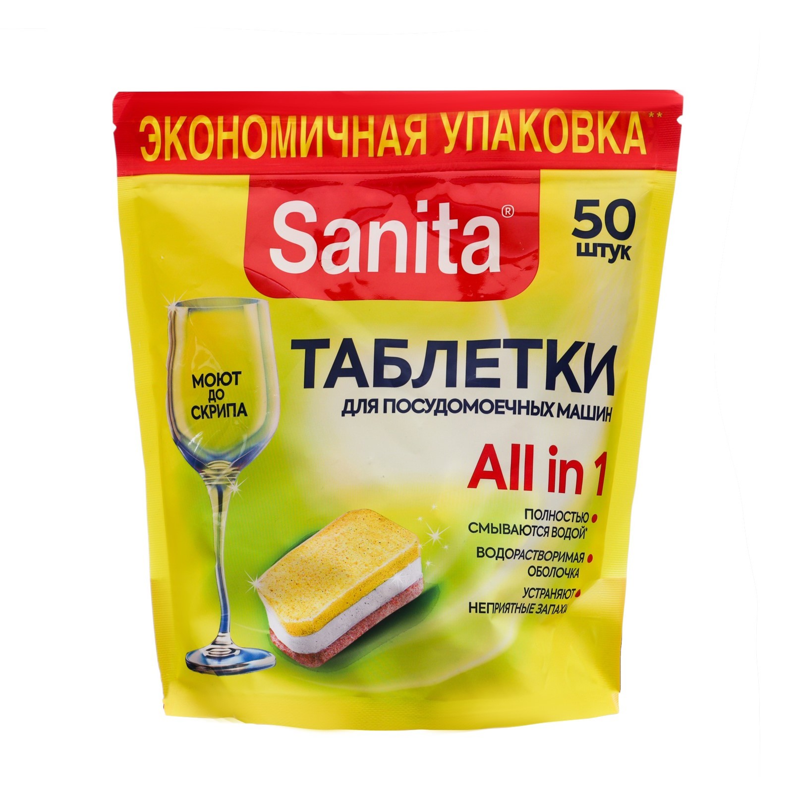 Таблетки sanita для посудомоечных машин, 50 штук. Таблетки Sanita для посудомоечных машин представляют собой специальное средство, предназначенное для эффективной очистки посуды от различных загрязнений. Они содержат активные компоненты, которые помогают удалять жир, остатки пищи и другие загрязнения, оставляя посуду чистой и блестящей. Таблетки Sanita экономичны в использовании, так как каждая таблетка рассчитана на одну мойку. Упаковка включает 50 таблеток. В упаковке, шт.: 50 Ароматизированные: Нет Температурное ограничение: Нет  развернуть описание ▼