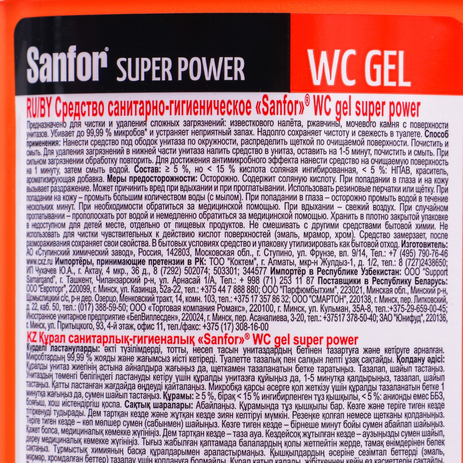 Чистящее средство для унитаза "Sanfor" Wc Gel Super Power", 1000 гр