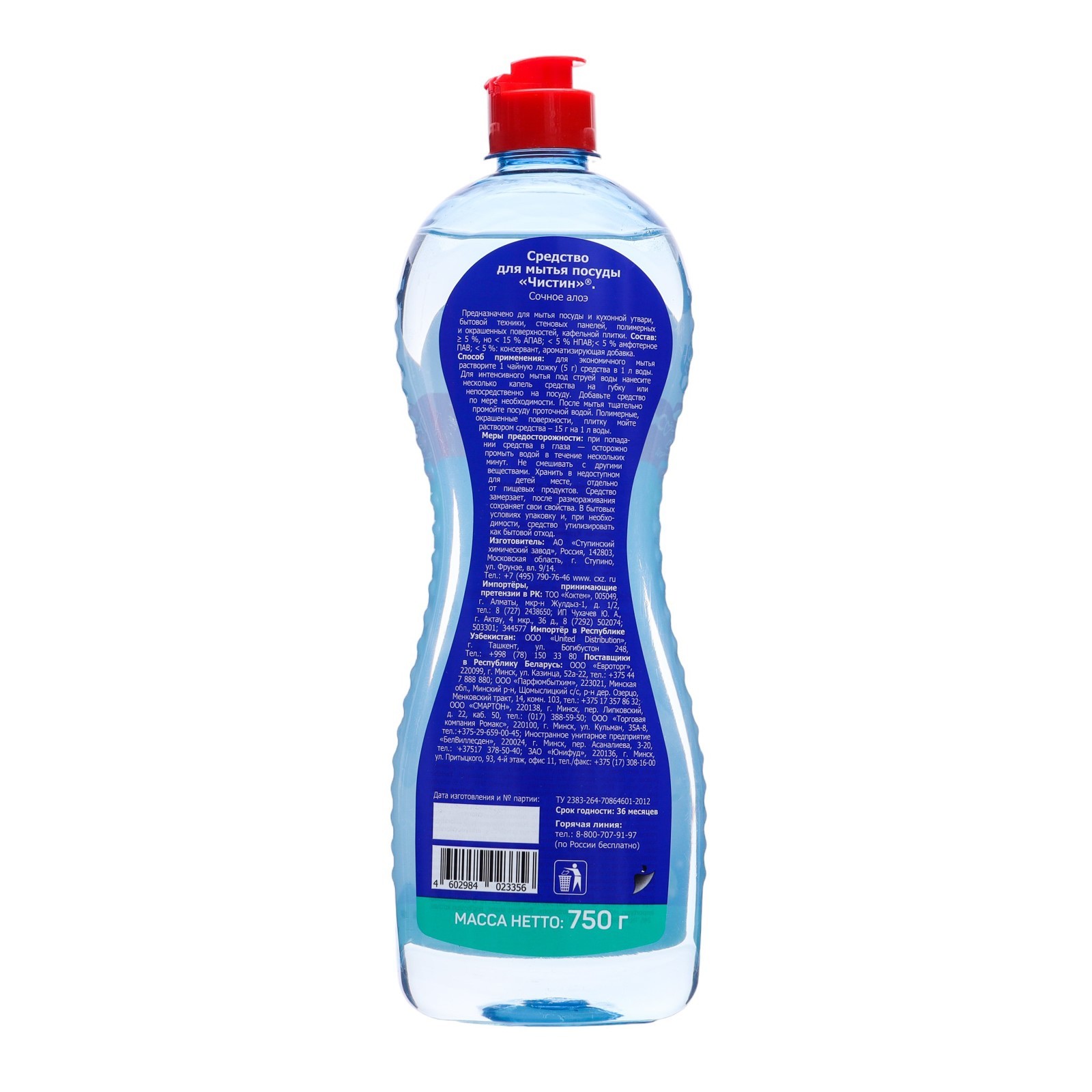 Средство для мытья посуды чистин, сочное алоэ, 750 мл