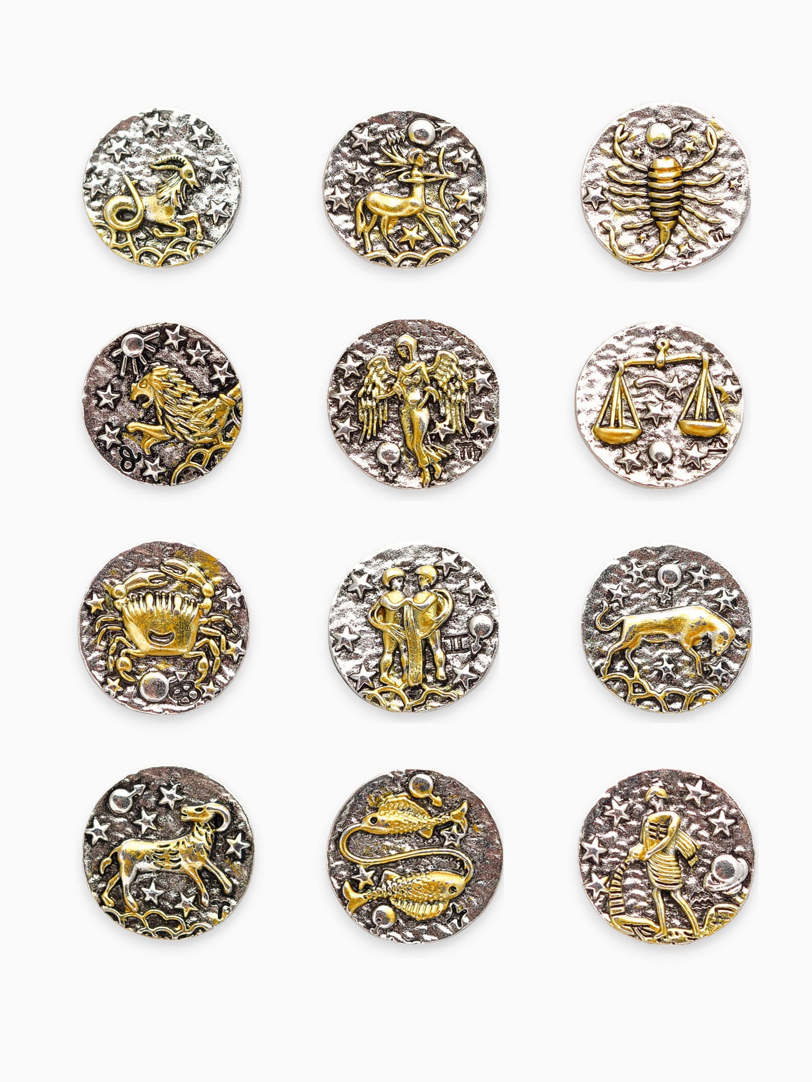 Значок «знаки зодиака» ассорти, золото в серебре.