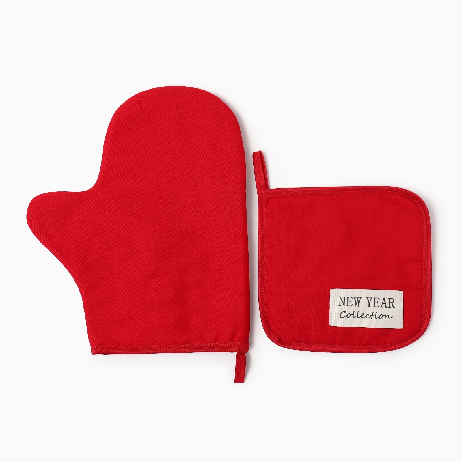 Набор кух. этель New Year Collection,цв. красный, варежка-прихватка 18х29 см, прихватка 19х19 см,10