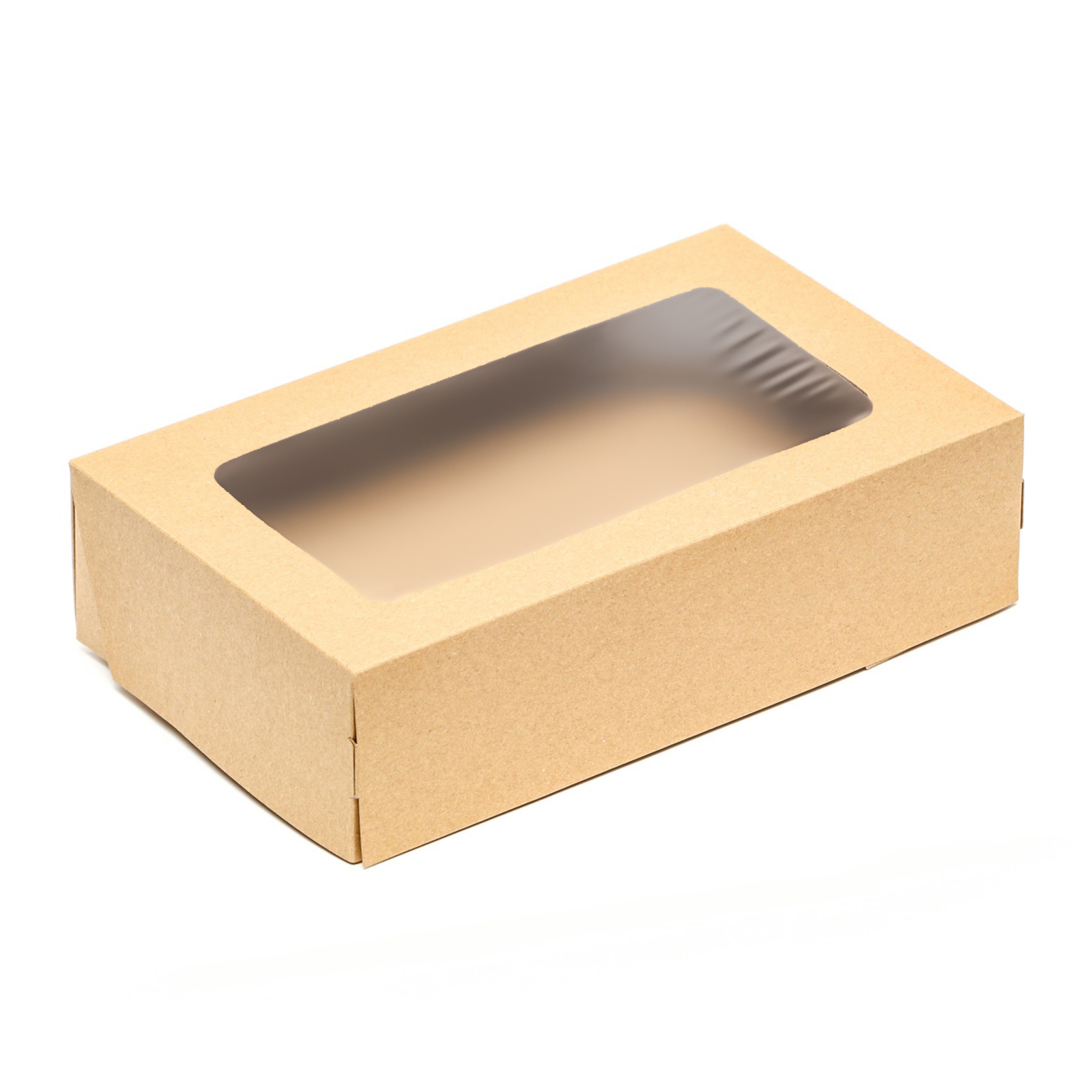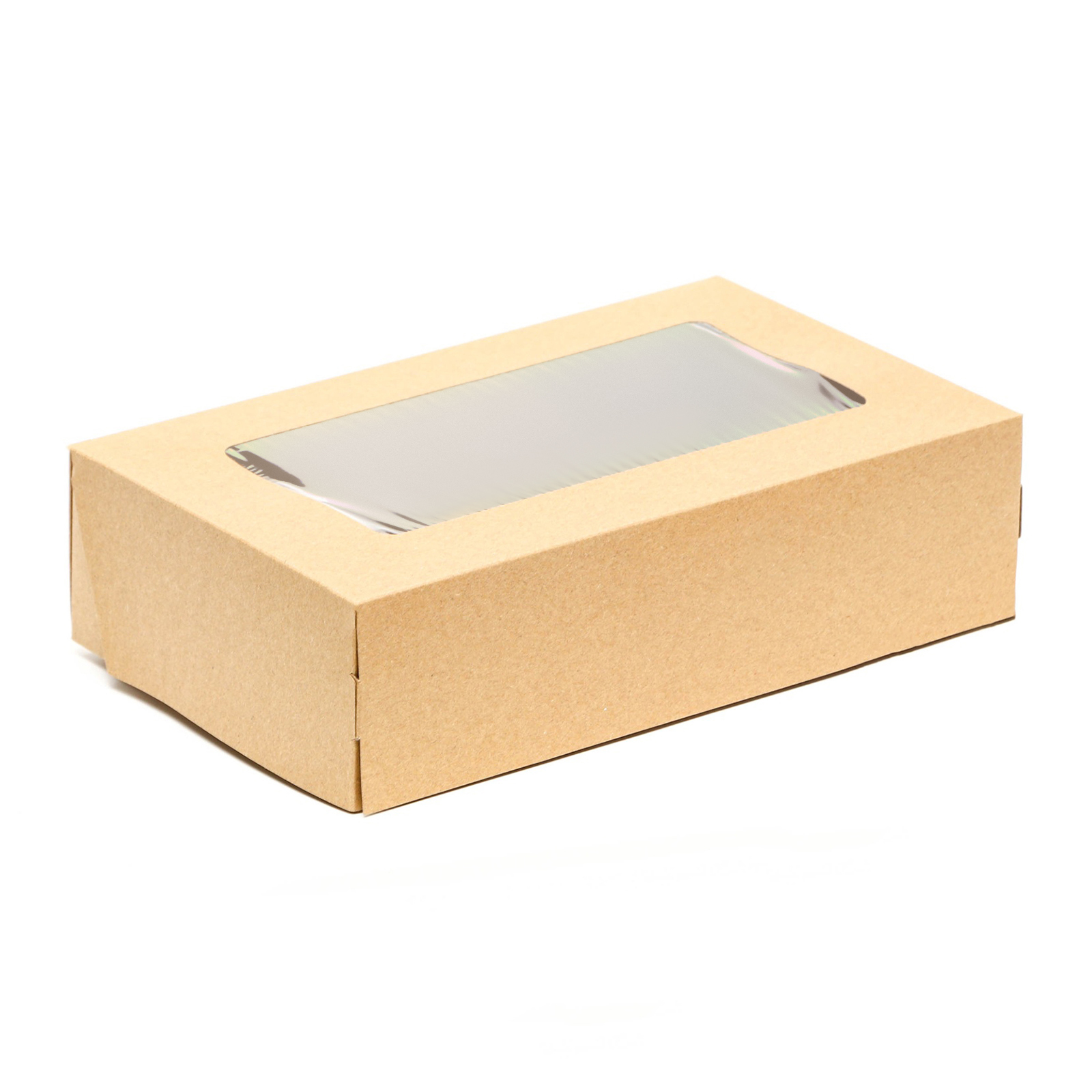 Упаковка для продуктов, крафт с окном, 23 х 14 х 6 см, 1,9 л, набор 10 шт.