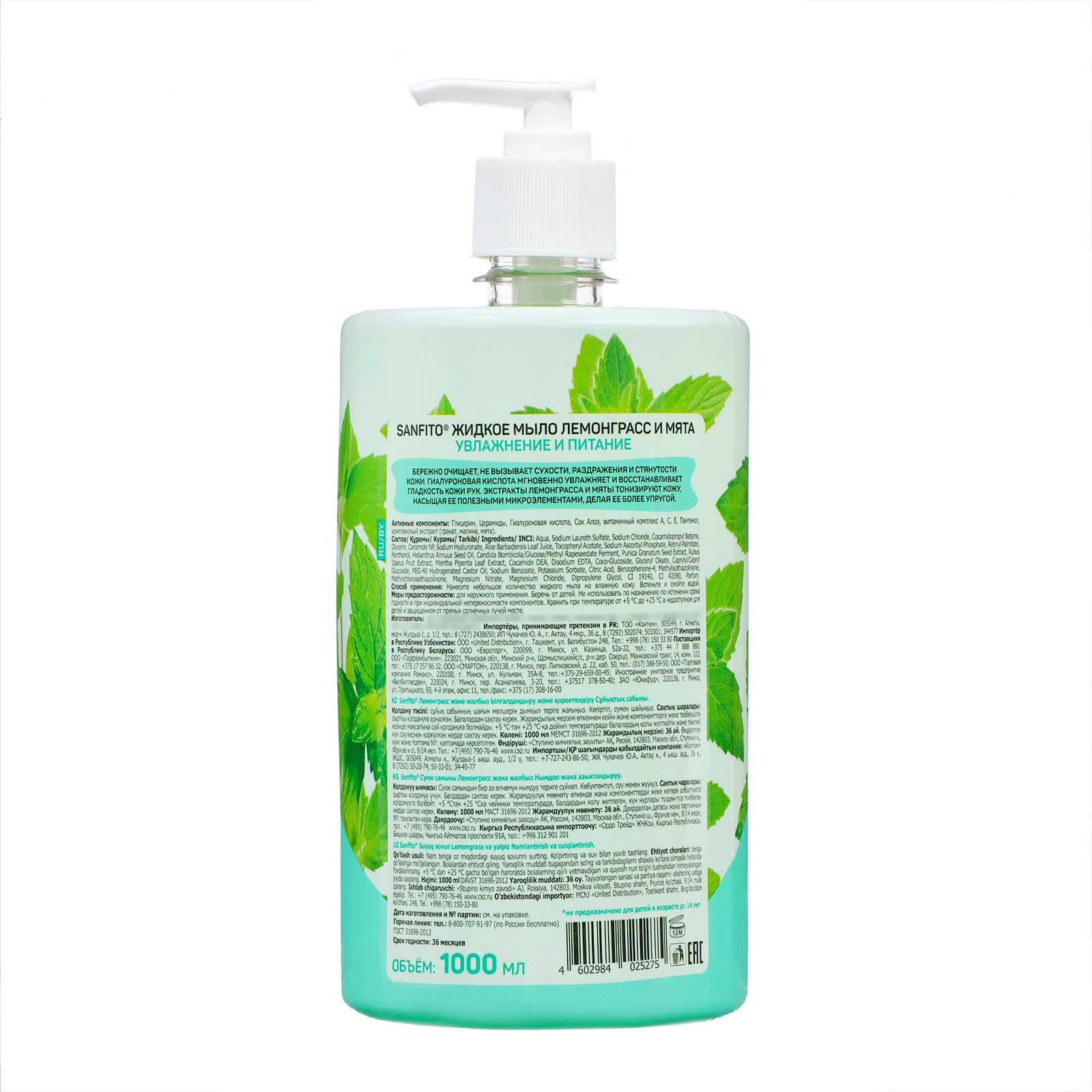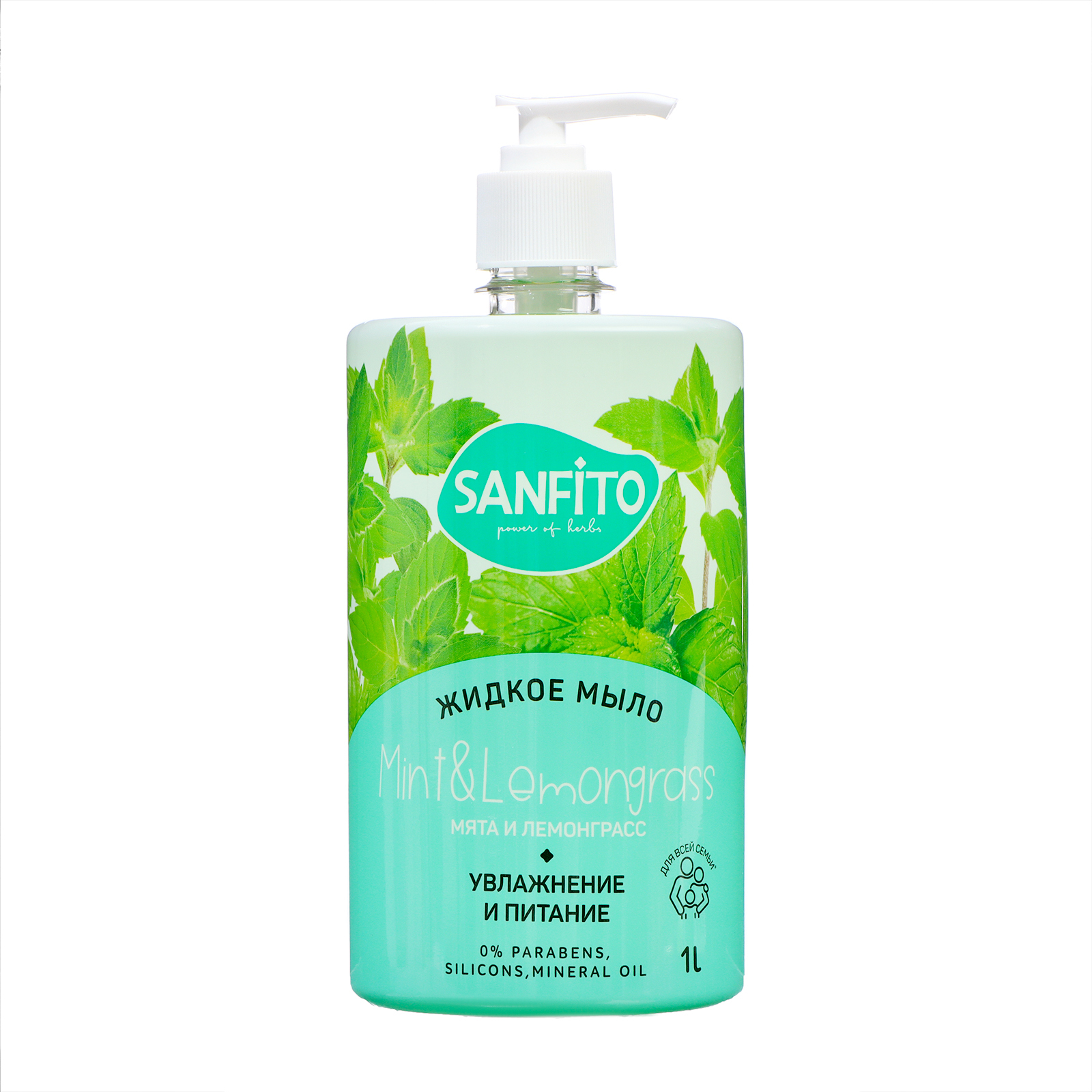 Жидкое мыло Sanfito лемонграсс и мята увлажнение и питание, 1 л