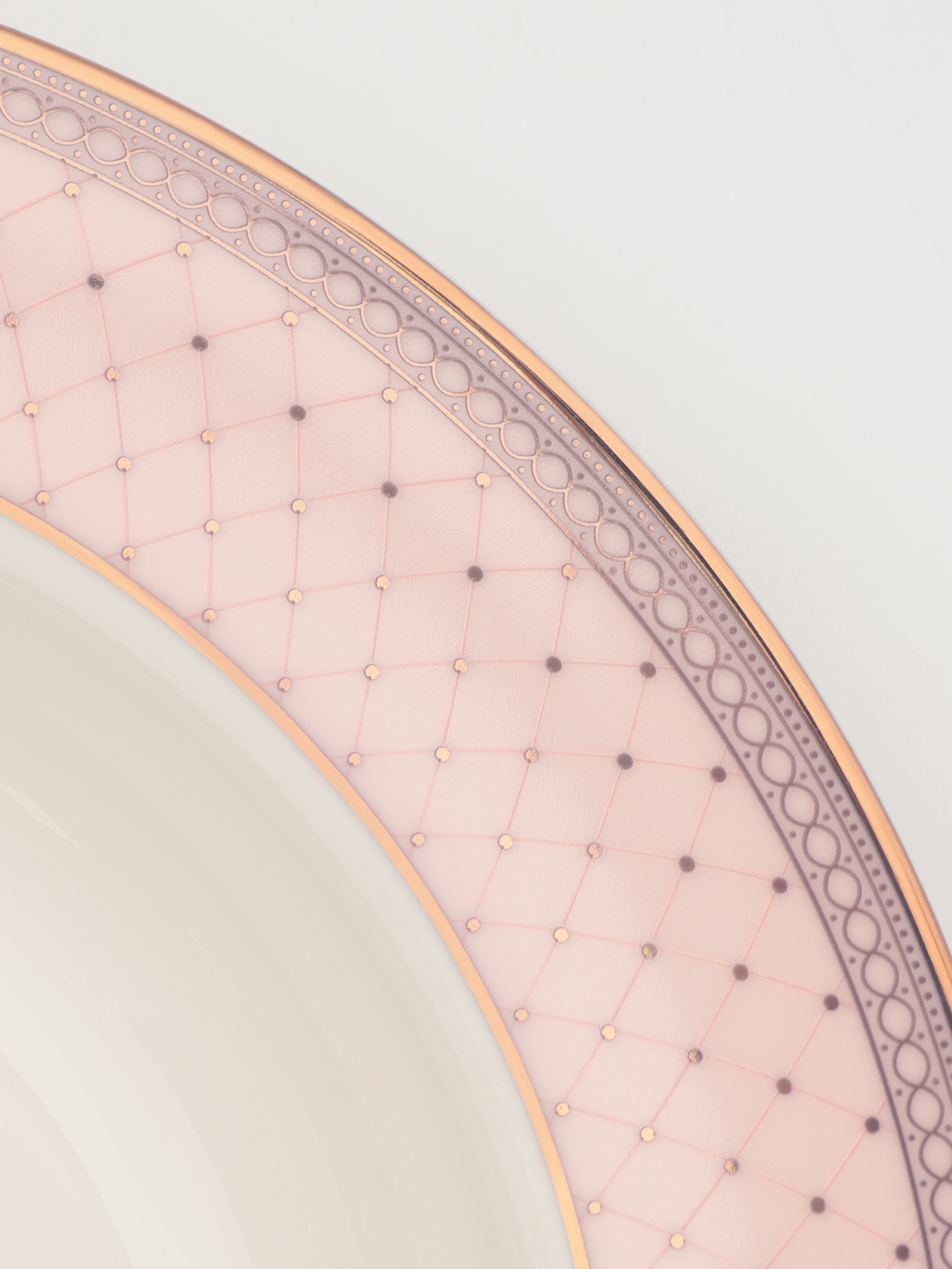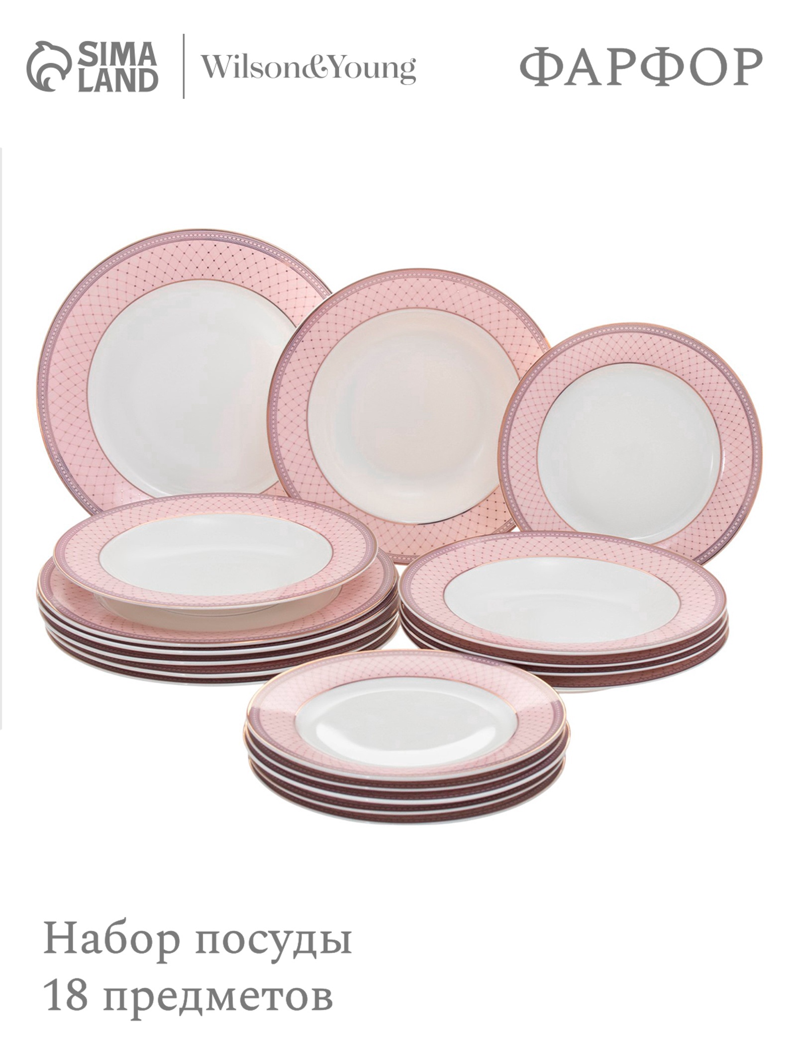 Набор посуды wy paradaise, 18 предметов, 6 тарелок d=25.5 см, 6 тарелок d=20.5 см, 6 глубоких тарелок d=23 см, фарфор, белый, ро. Познакомьтесь с элегантным и стильным набором посуды, который придаст вашему столу шарм и утонченность. Этот фарфоровый комплект идеально подойдет для сервировки блюд на 6 персон и станет изюминкой любого застолья. Вас приятно удивит разнообразие тарелок: от больших до глубоких, что обеспечивает универсальность в подаче различных блюд. Золотая отводка добавляет изысканности и праздничности, делая каждую трапезу особенной. Качество и стиль: фарфор обеспечивает долговечность, а рельефная текстура придаёт каждой тарелке уникальность.Идеальный выбор для оформления: белый цвет легко сочетается с любыми столовыми приборами и украшениями.Гармония в сервировке: разнообразие тарелок даёт возможность создать красивую подачу для любых блюд — от закусок до десертов.Для любого повода: этот набор подойдет как для будних дней, так и для торжеств и семейных праздников.Обратите внимание на этот набор — это не просто посуда, а средство для создания приятной атмосферы за столом. Позвольте себе и своим близким наслаждаться каждым моментом, сервируя еду с этим замечательным фарфоровым комплектом. Больше наших товаров для Вас.Набор:Да|Цвет:Розовый|Цвет:Белый|Диаметр, см:20.5|Диаметр, см:25.5|Количество персон:6|В наборе, шт.:18|Рисунок:Да|Материал:Фарфор|Вид тарелки:Глубокая|Вид тарелки:Плоская|Можно мыть в посудомоечной машине:Нет|Можно использовать в СВЧ-печи:Нет|Текстура:С рельефом|Особенности:С золотой отводкой|Матовая поверхность:Нет|Страна:Китай  развернуть описание ▼