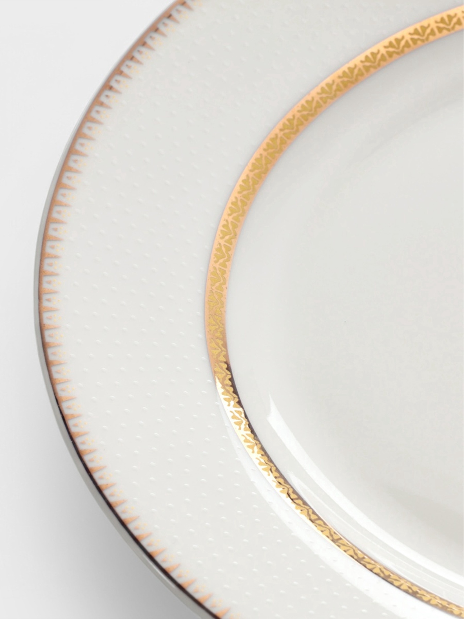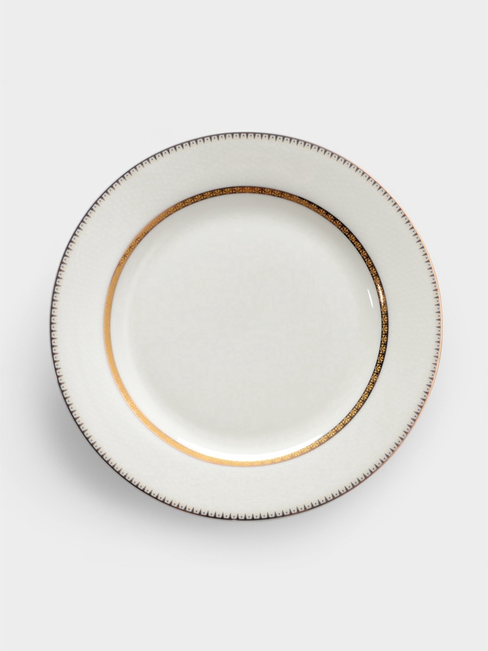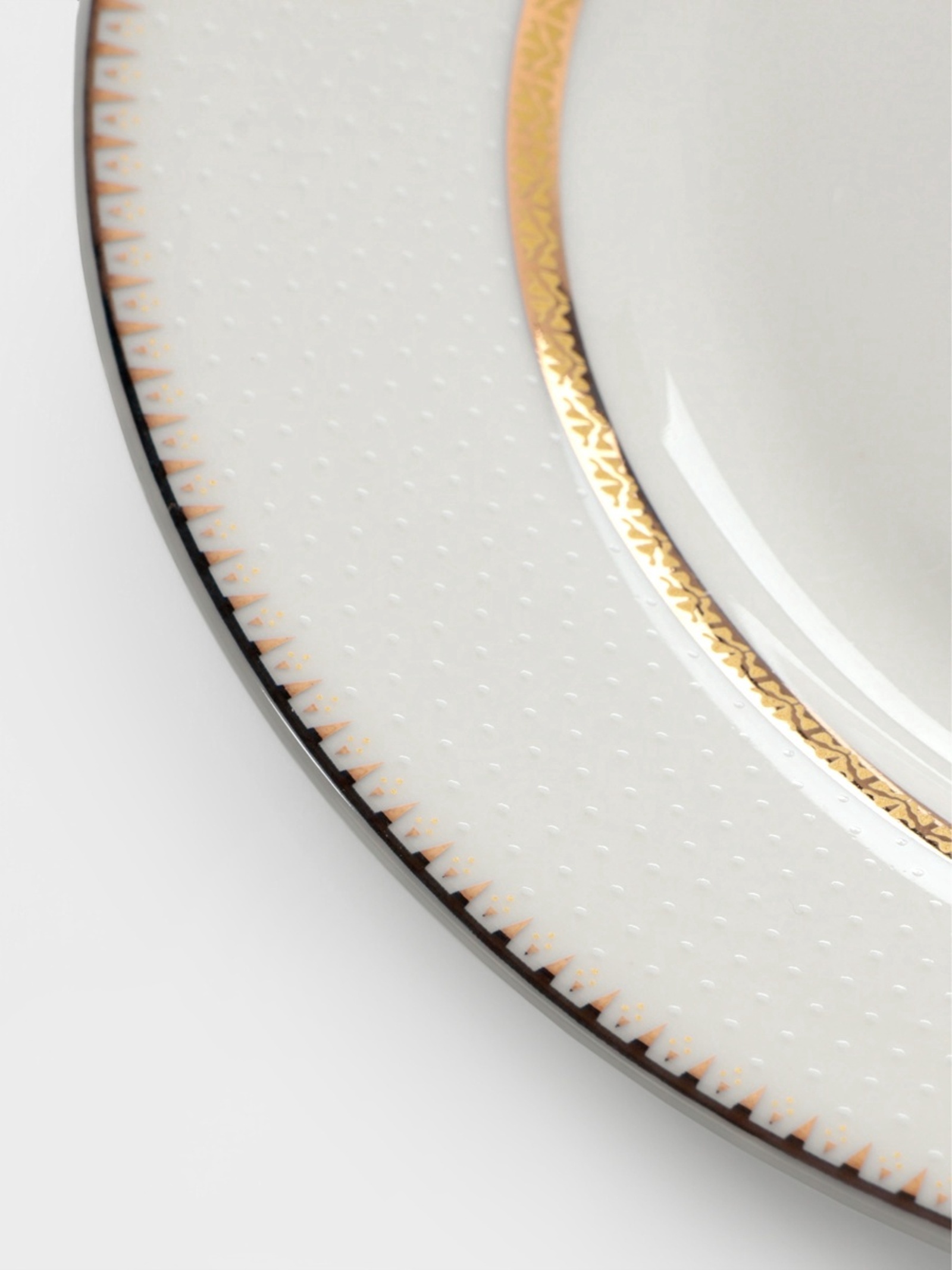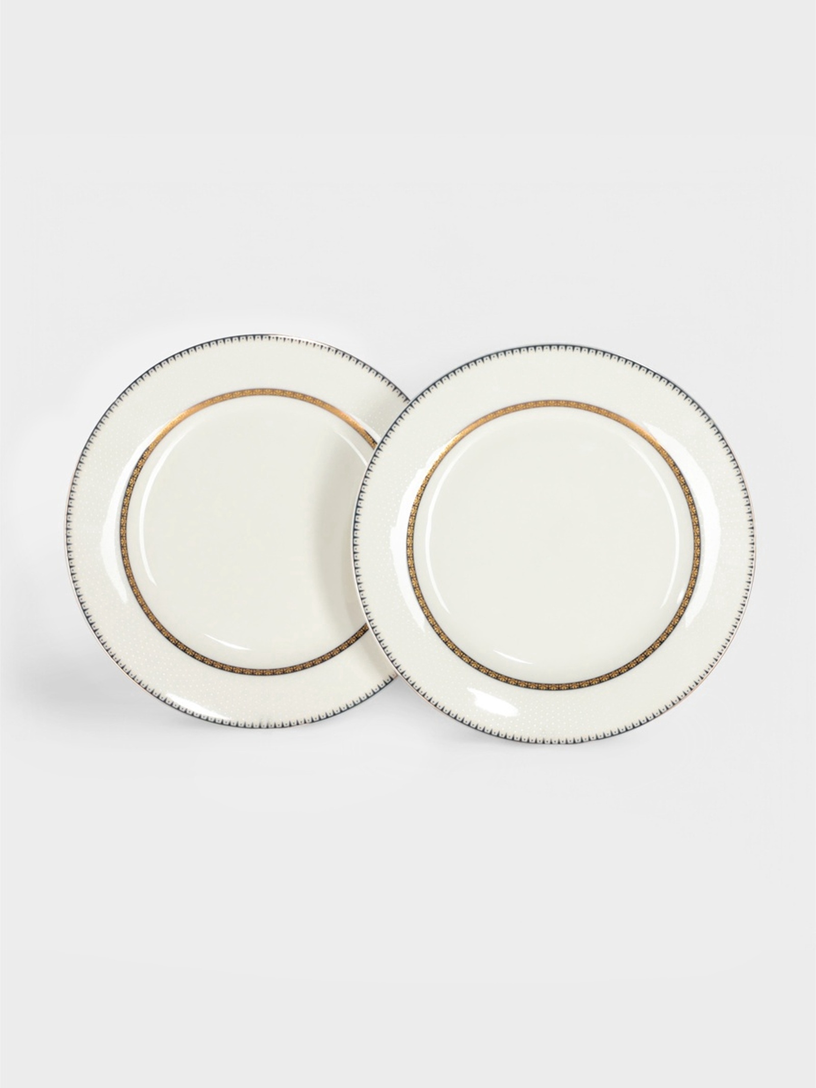 Тарелки wy grace, d=20.5 см, набор 2 шт., фарфор, белые. Фарфоровые тарелки с золотом «Grace»: Изысканная сервировка для ваших блюд! Добавьте элегантности вашей сервировке с этим набором из двух плоских белых фарфоровых тарелок. Диаметр каждой тарелки 20.5 см, что делает их идеальными для подачи различных блюд. Тарелки украшены изящным узором и золотой отводкой. Создайте атмосферу роскоши на вашем столе! Эти тарелки – прекрасный выбор для ценителей изысканного стиля. Белые фарфоровые тарелки с золотой каймой станут настоящим украшением вашего стола. Набор «Grace» – это сочетание утонченности и практичности! Особенности Набор из двух тарелок: Идеально для сервировки на двоих.Изысканный дизайн: Узор и золотая отводка придают тарелкам роскошный вид.Качественный материал: Новый костяной фарфор обеспечивает прочность и долговечность.Универсальность: Подходят для различных блюд.Идеальный размер: Диаметр 20.5 см – оптимален для повседневного использования и особых случаев.Порадуйте себя и своих близких! Эти тарелки, по сути, деталь, которая преобразит любую трапезу, подчеркивая ваш безупречный вкус. Подавайте блюда с любовью и наслаждайтесь каждым моментом! Больше наших товаров для Вас.Набор:Да|Цвет:Белый|Диаметр, см:20.5|В наборе, шт.:2|Тематика:Узоры|Рисунок:Да|Материал:Фарфор (Новый костяной фарфор)|Вид тарелки:Плоская|Можно мыть в посудомоечной машине:Нет|Можно использовать в СВЧ-печи:Нет|Текстура:Гладкая|Особенности:С золотой отводкой|Матовая поверхность:Нет|Для горячего:Да|Страна:Китай  развернуть описание ▼