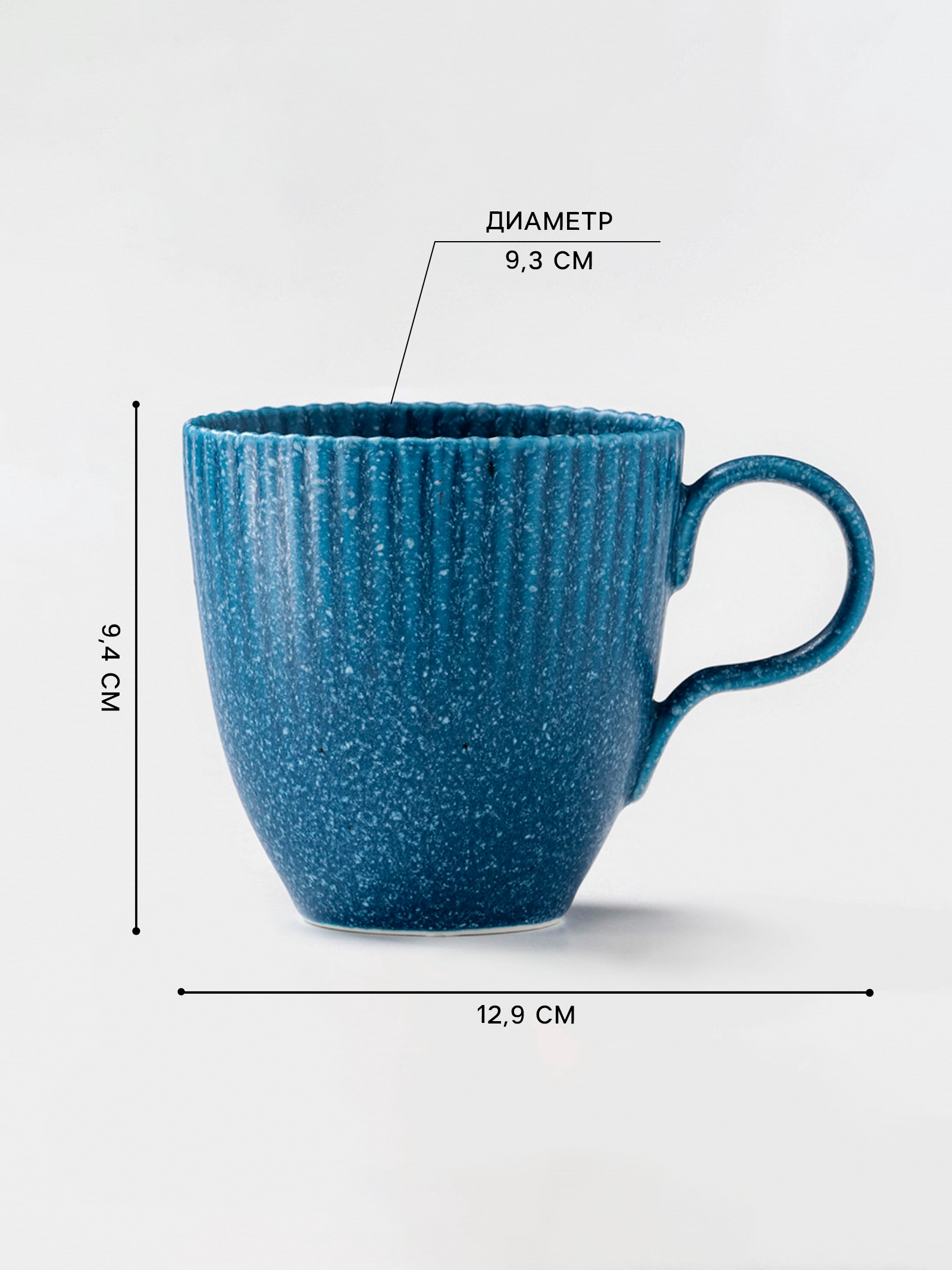 Набор:Нет|Цвет:Синий|Высота, см:9.4|Объём, мл:350|Рисунок:Нет|Материал:Фарфор|Индивидуальная упаковка:Нет|Можно мыть в посудомоечной машине:Да|Можно использовать в СВЧ-печи:Да|Текстура:С рельефом|Особенности:Без особенностей|Матовая поверхность:Нет|Страна:Китай