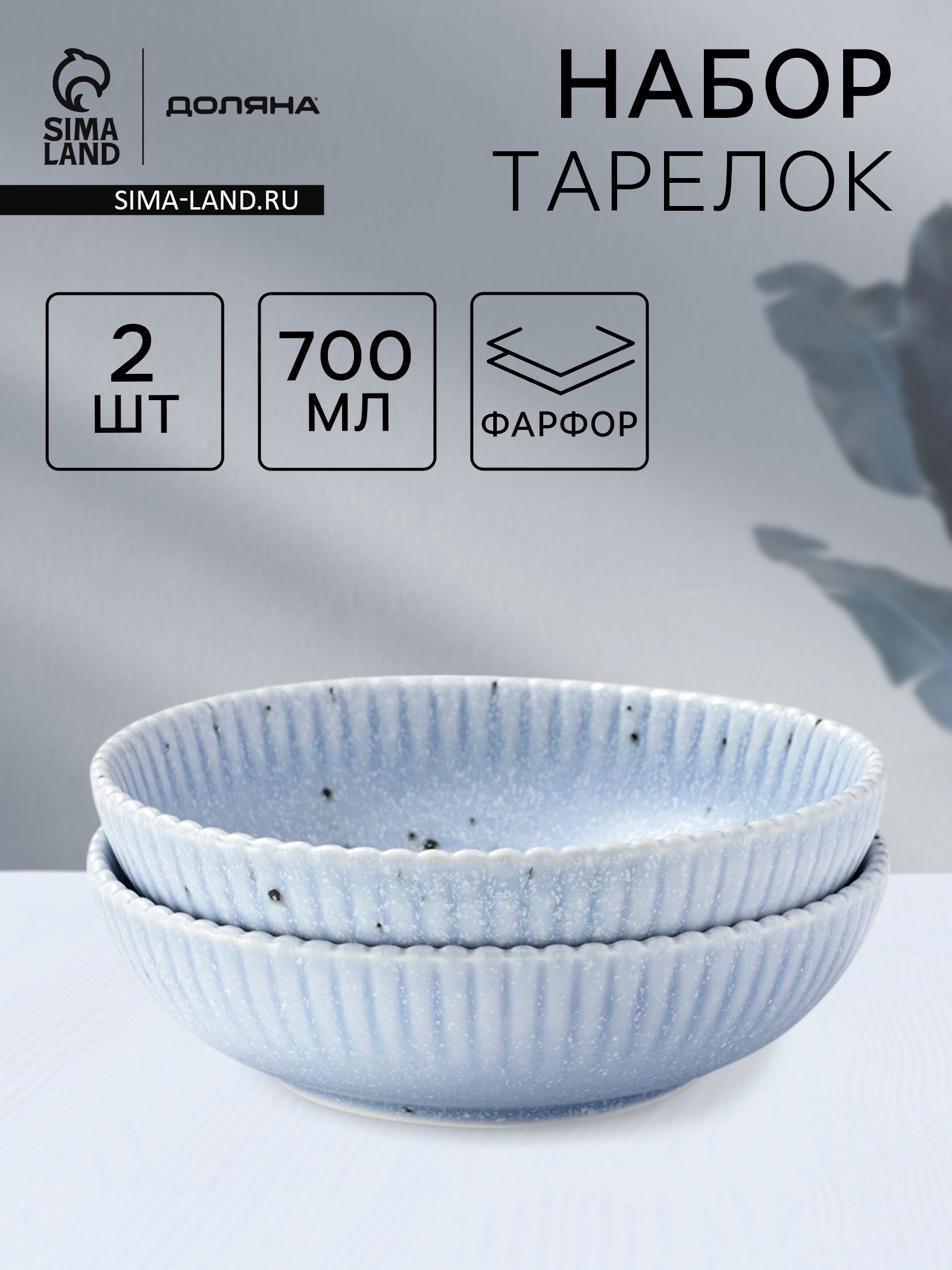 Тарелки глубокие доляна «коралл», 700 мл, D=18.2 см, набор 2 шт., фарфор, голубые