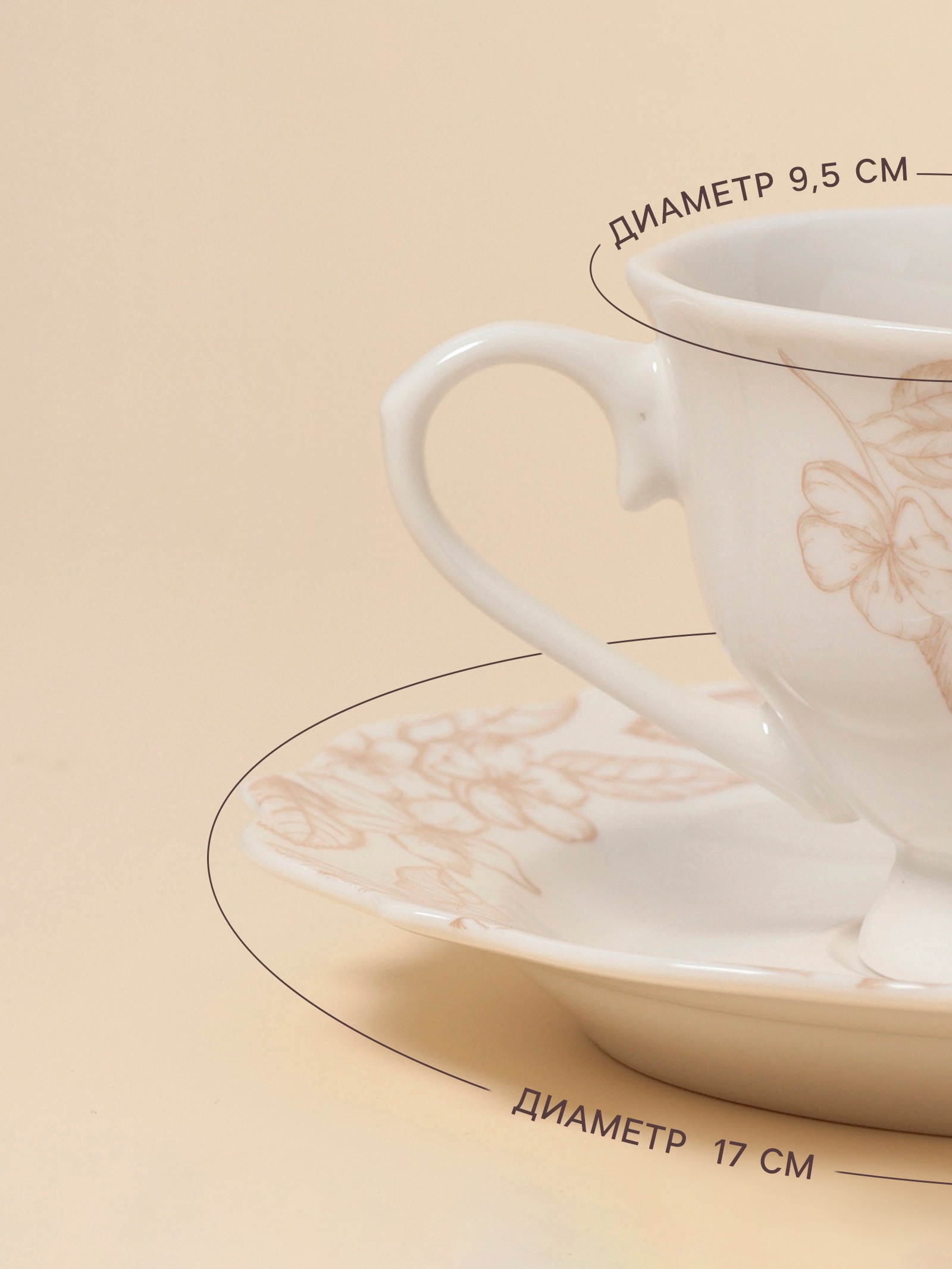 Чайная пара Sl Home «аманде», чашка 220 мл, блюдце 17 17 2 см, фарфор, белая