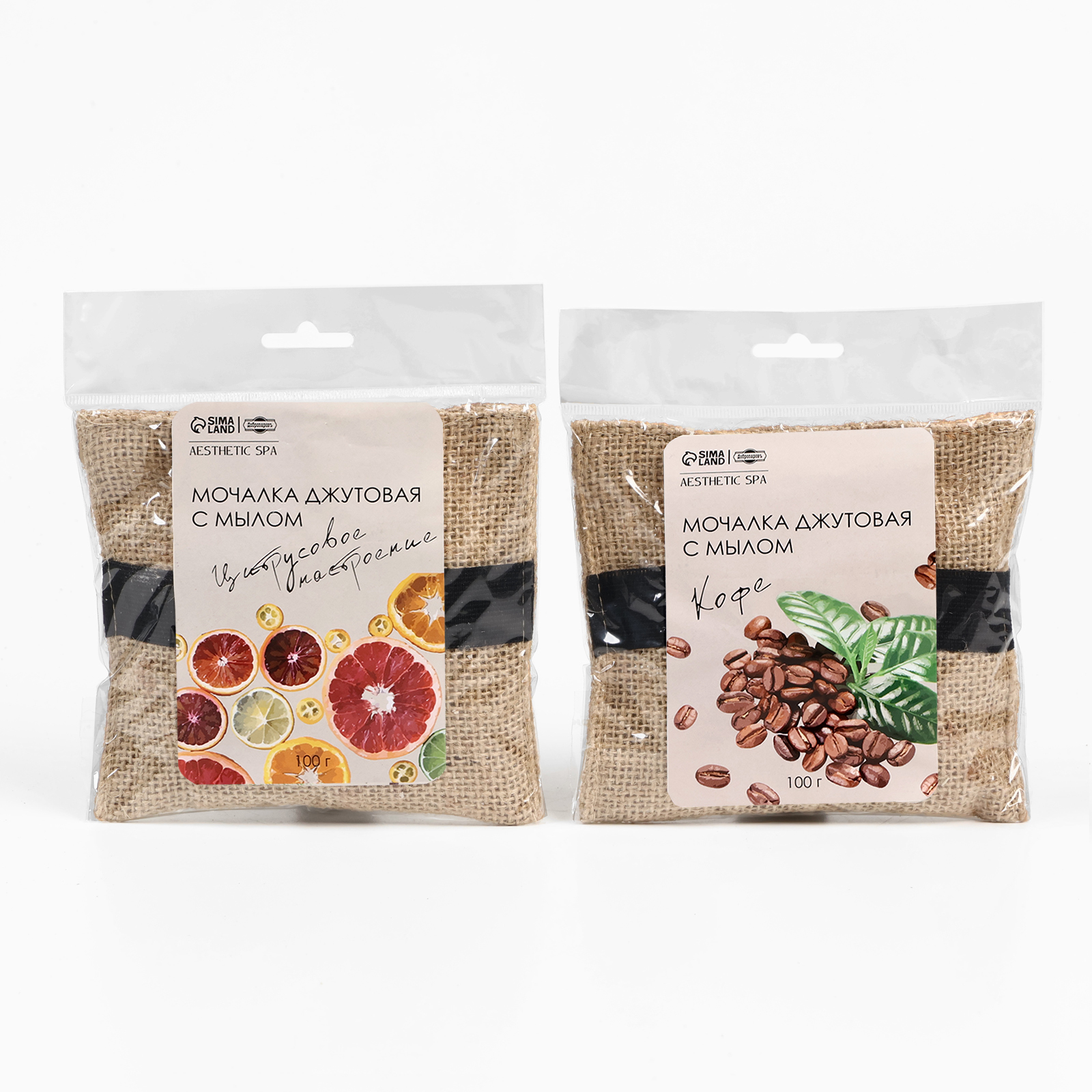 Набор джутовых мочалок с мылом 2 шт "кофе и цитрусы". Джутовая мочалка с мылом подходит для любителей натурального ухода за кожей. Преимущества мочалки Увлажнение и тонизирующий эффект благодаря мылу. Лёгкий расслабляющий массаж для лучшего кровообращения. Регенерация кожи благодаря джуту, который отшелушивает ороговевшие клетки кожи. Способ применения Намочить мочалку горячей водой и слегка отжать до образования пены. Нанести пену на влажное тело и растереть массирующими движениями. Смыть пену обильным количеством воды. После использования промойте мочалку в прохладной воде и повесьте сушиться. Наслаждайтесь очищением и увлажнением кожи! Цвет: Бежевый Длина рабочей части, см: 12 Вид: Мочалка с органическим мылом Возраст: Любой Материал: Джут Температурное ограничение: Нет  развернуть описание ▼