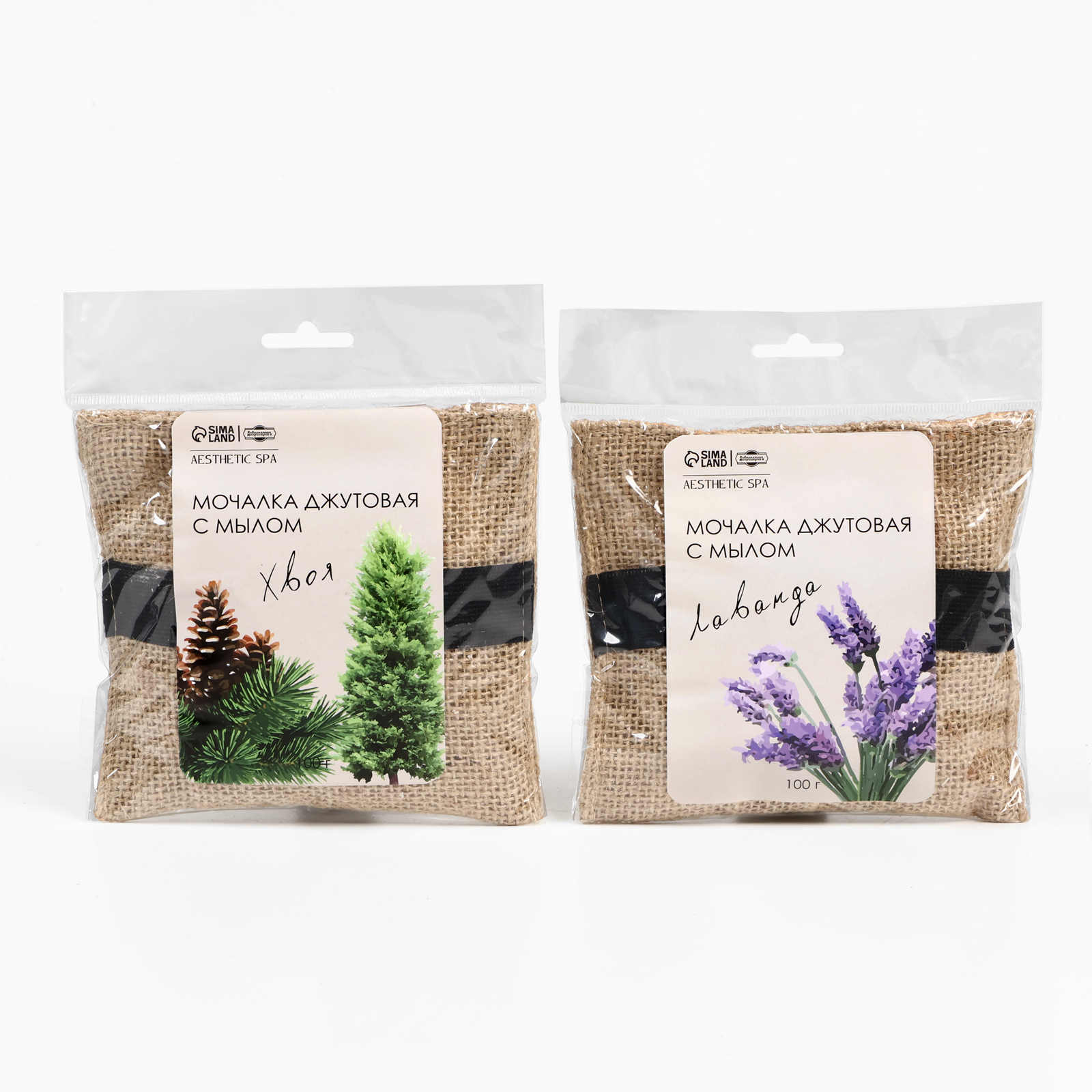 Набор джутовых мочалок с мылом 2 шт "хвоя и лаванда"