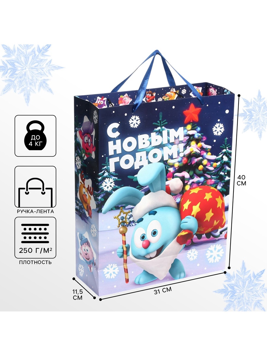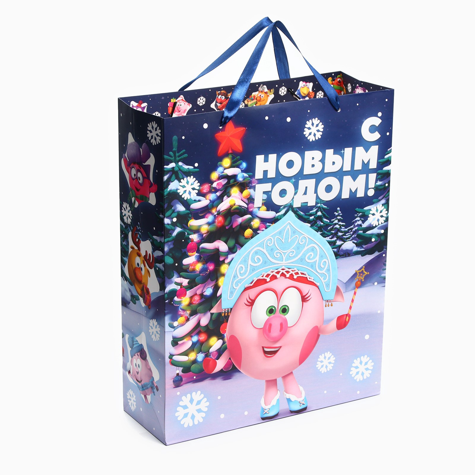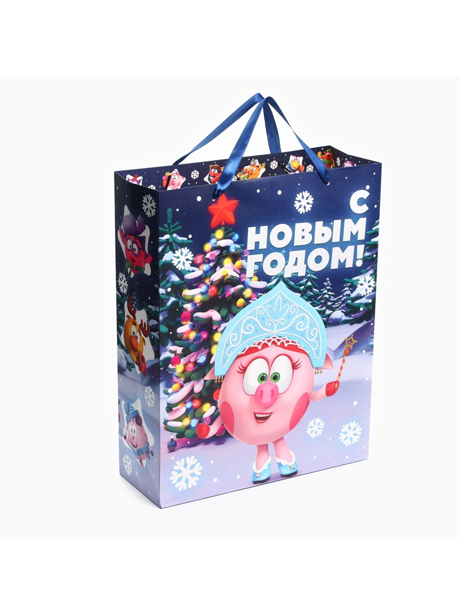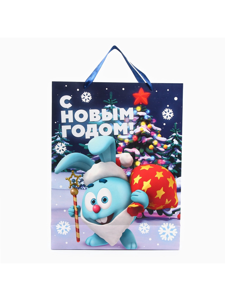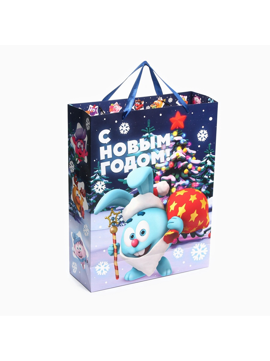 Пакет подарочный новогодний «с новым годом», 31 х 40 х 11.5 см, смешарики. Цвет:Синий|Для кого:Для девочки|Для кого:Для мальчика|Плотность, г/м :210|Тематика:Новогодняя|Символ года:Нет|Тематика праздника:Новый год|Материал:Картон|Отделка пакета:Ламинация|Вид ручки:Ручка-лента|Страна:Китай  развернуть описание ▼