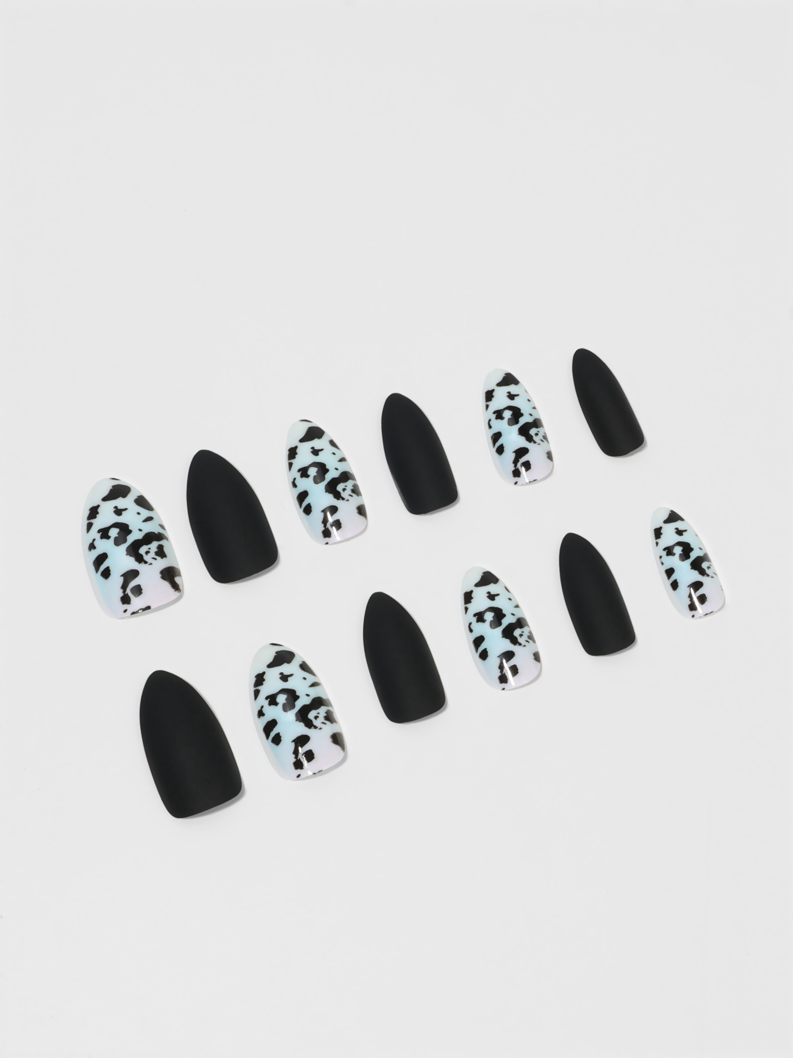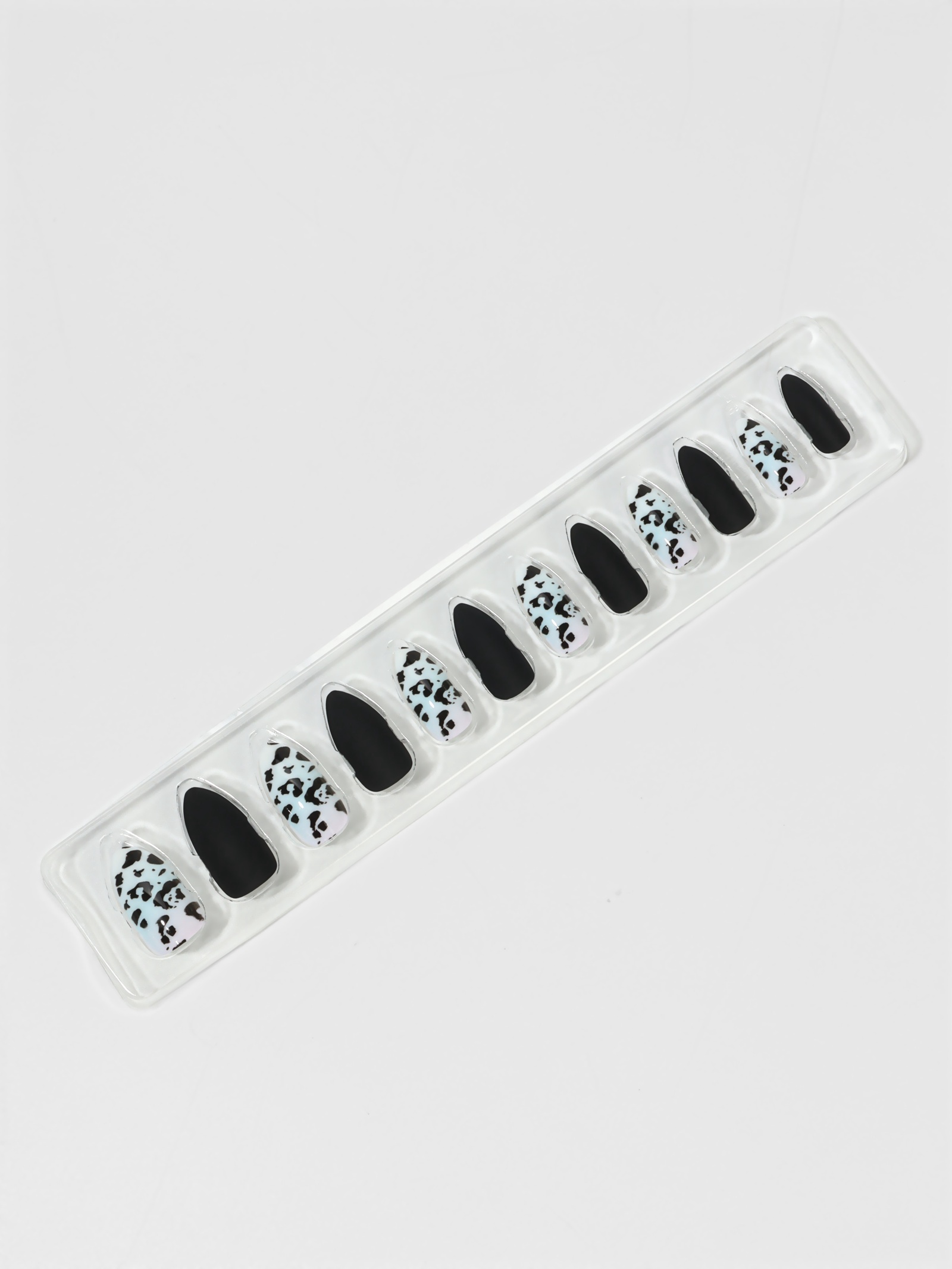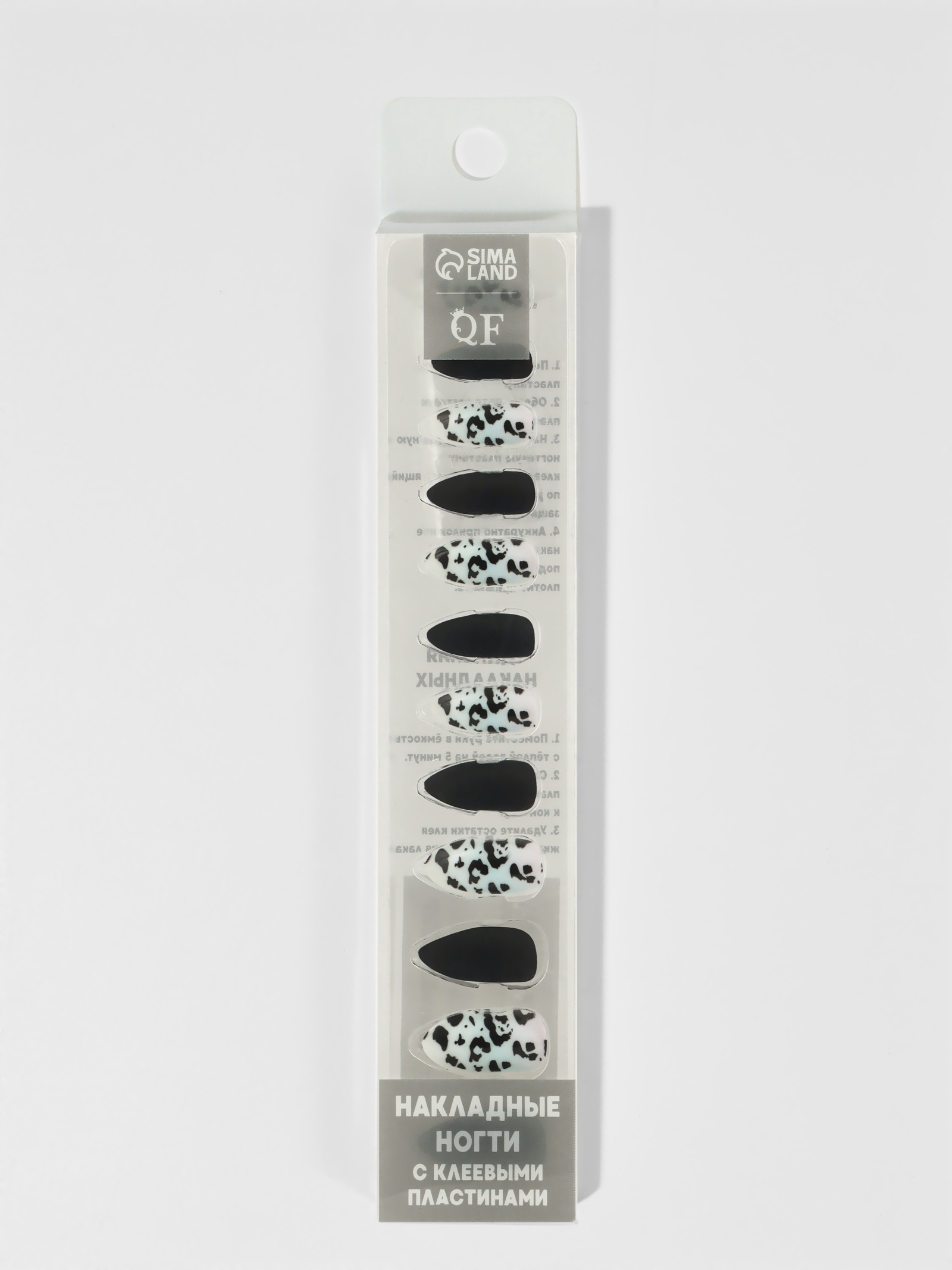 Накладные ногти «лео», 12 шт, с клеевыми пластинами, форма миндаль, чёрные, бежевые