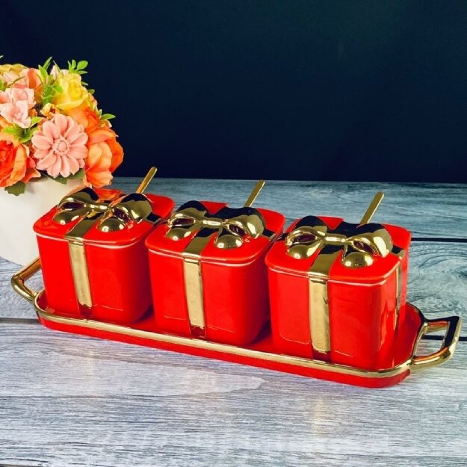 Набор баночек Lenardi Multicolor, с ложками на подставке, 350 мл, 3 шт
