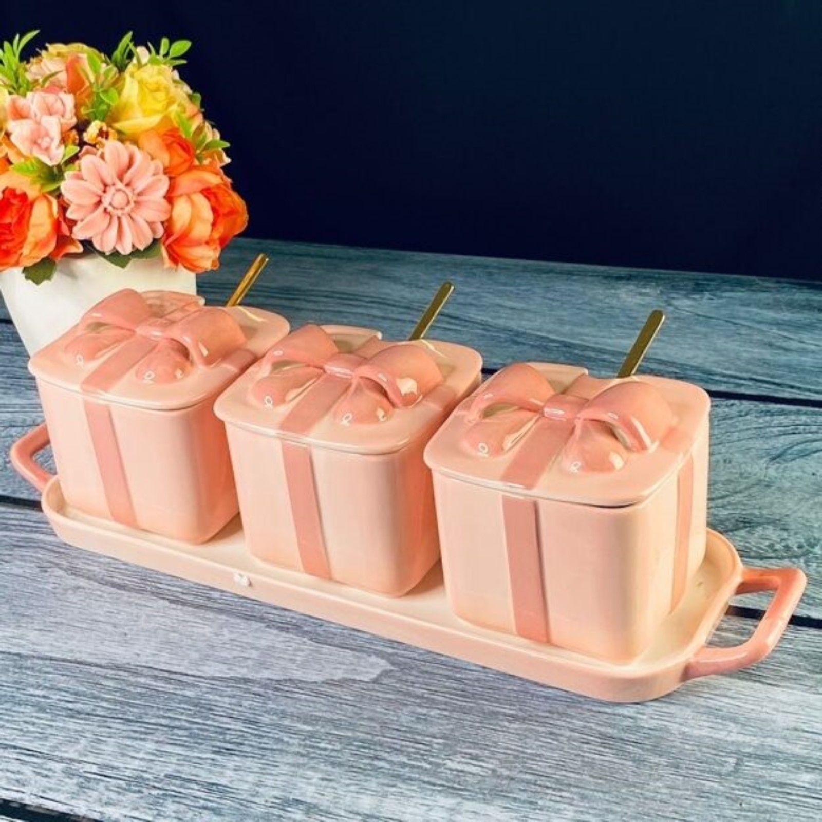 Набор баночек Lenardi Multicolor, с ложками на подставке, 350 мл, 3 шт