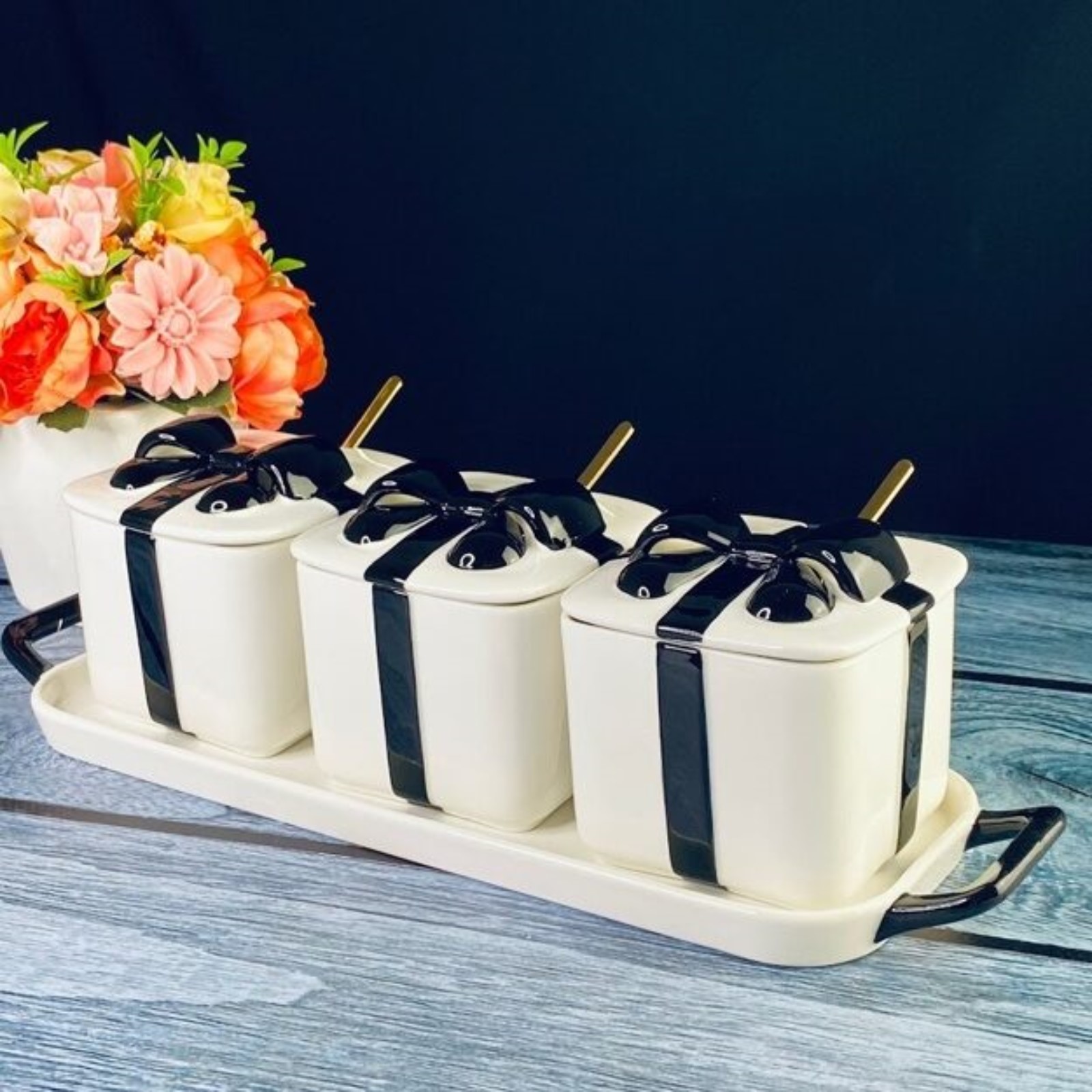Набор баночек Lenardi Multicolor, с ложками на подставке, 350 мл, 3 шт