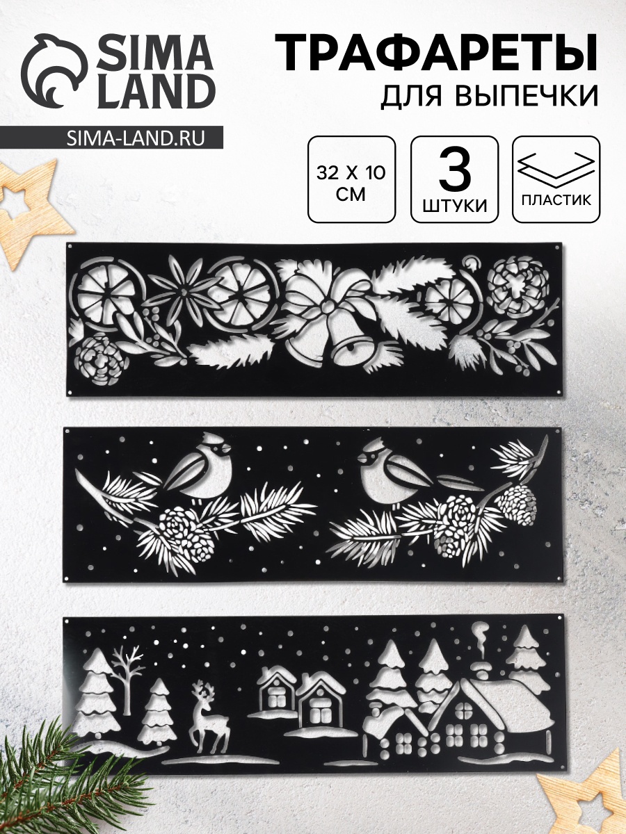 Трафареты для выпечки новогодние «стильный новый год», 3 шт., 32x10 см