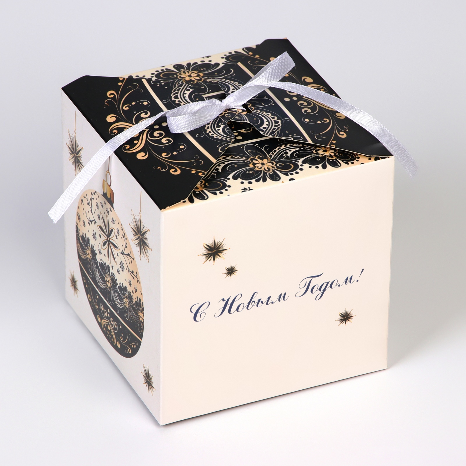 Коробка подарочная новогодняя складная «с новым годом», 10 10 10 см. Складная новогодняя коробка - это удобный и практичный способ упаковки подарков. Она выполнена из плотного картона и легко складывается, что позволяет экономить место при хранении. Внешняя сторона коробки украшена яркими новогодними узорами и изображениями, что придает ей праздничный вид. В такую коробку можно положить любой подарок - от игрушек до косметики. Складная новогодняя коробка - это отличный выбор для тех, кто ценит функциональность и красоту в одном упаковке. Цвет:Бежевый|Форма:Квадратная|Длина, см:10|Ширина, см:10|Высота, см:10|Тематика:Рождественская|Тематика:Шары|Тематика:Новогодняя|Символ года:Нет|Тематика праздника:Рождество|Тематика праздника:Новый год|Материал:Картон|Вид:Складные коробки|Размер:Мини (до 10 см)|Окошко:Нет|Крышка-дно:Нет|Страна:Россия  развернуть описание ▼
