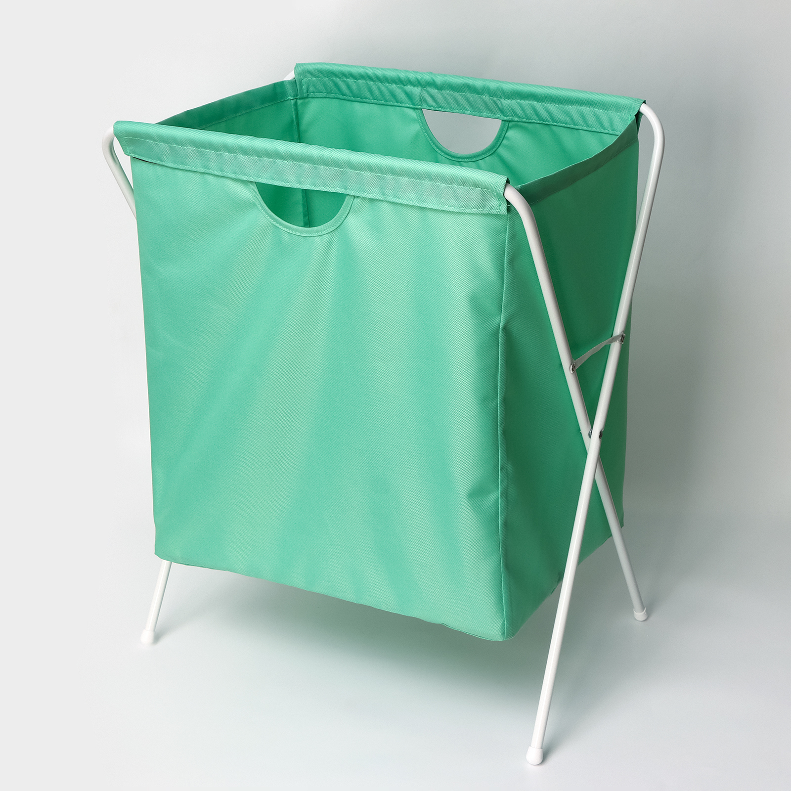 Корзина - мешок для белья, 53x39x62 см, цвет мятный. Универсальная корзина в лаконичном дизайне. Отлично подойдет для хранения вещей до и после стирки, игрушек и других полезных вещей. Преимущества:Объём 70 литров;Удобные ручки для переноски;Легкое сложение;Компактное хранение. Цвет: Зелёный Форма: Прямоугольная Ширина, см: 39 Высота, см: 62 Объём, л: 70 Крышка: Нет Материал: Металл Материал: Текстиль Температурное ограничение: Нет Особенности: С ручками Основной материал: Металл Основной материал: Текстиль Форма: Прямоугольник  развернуть описание ▼