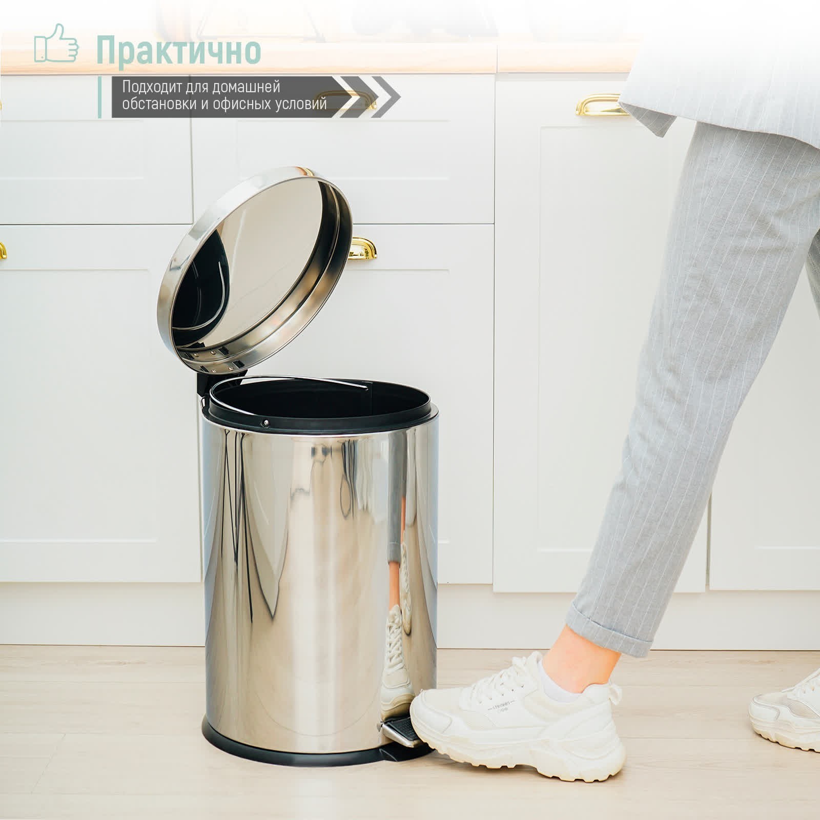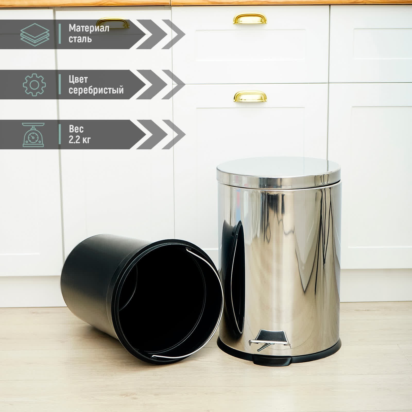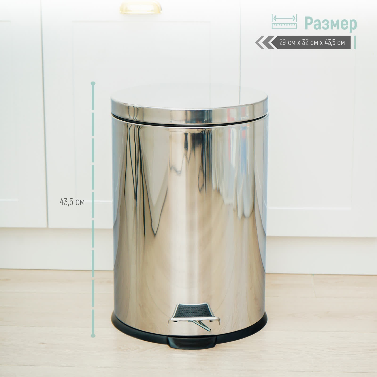 Ведро с педалью доляна, 20 л, нержавеющая сталь