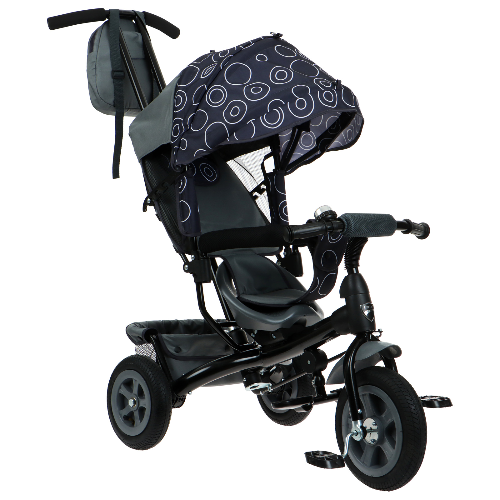 Велосипед трёхколёсный vivat 1, цвет чёрный. Цвет: Чёрный Для кого: Унисекс Максимально допустимый вес, кг: 20 Модельный год: 2023 Материал рамы: Сталь Диаметр колёс, дюймы: 10 переднее, 8 заднее Складная рама: Нет Материал колёс: Резина/Пластик Надувные колеса: Да Ручка для родителей: Да Регулируемая спинка: Да Тент: Да Страховочный обод: Да Доп. подставка для ног: Да Свободный ход педалей: Нет Функция свободного хода руля: Нет Рекомендуемый возраст, лет: 1 - 3 Рекомендуемый рост, см: 80 - 100 Возраст: Детский Стояночный тормоз: Нет Фара: Нет Вид: Городской Разворот сиденья: Нет Складная подножка: Да Температурное ограничение: Нет Светозвуковая панель: Нет  развернуть описание ▼