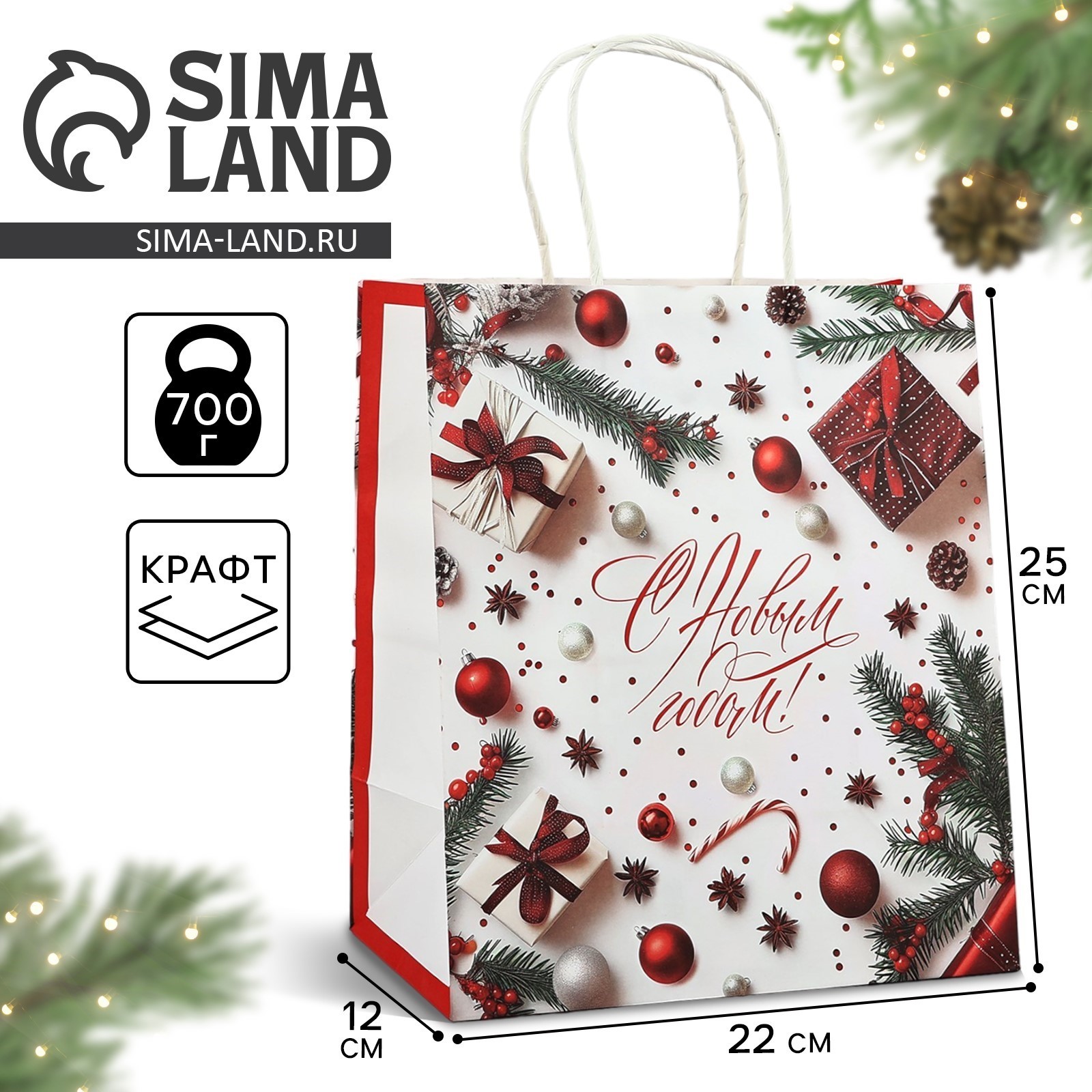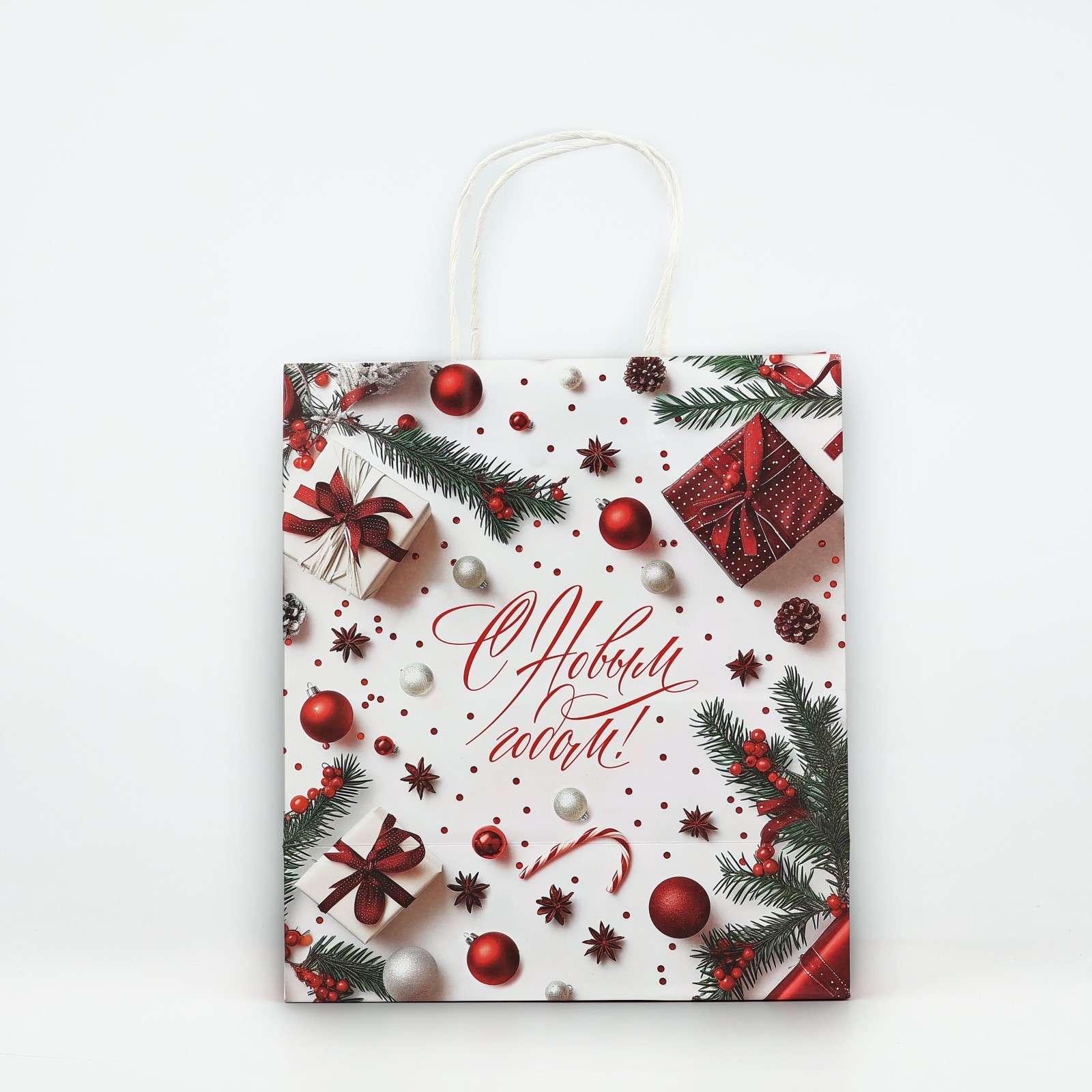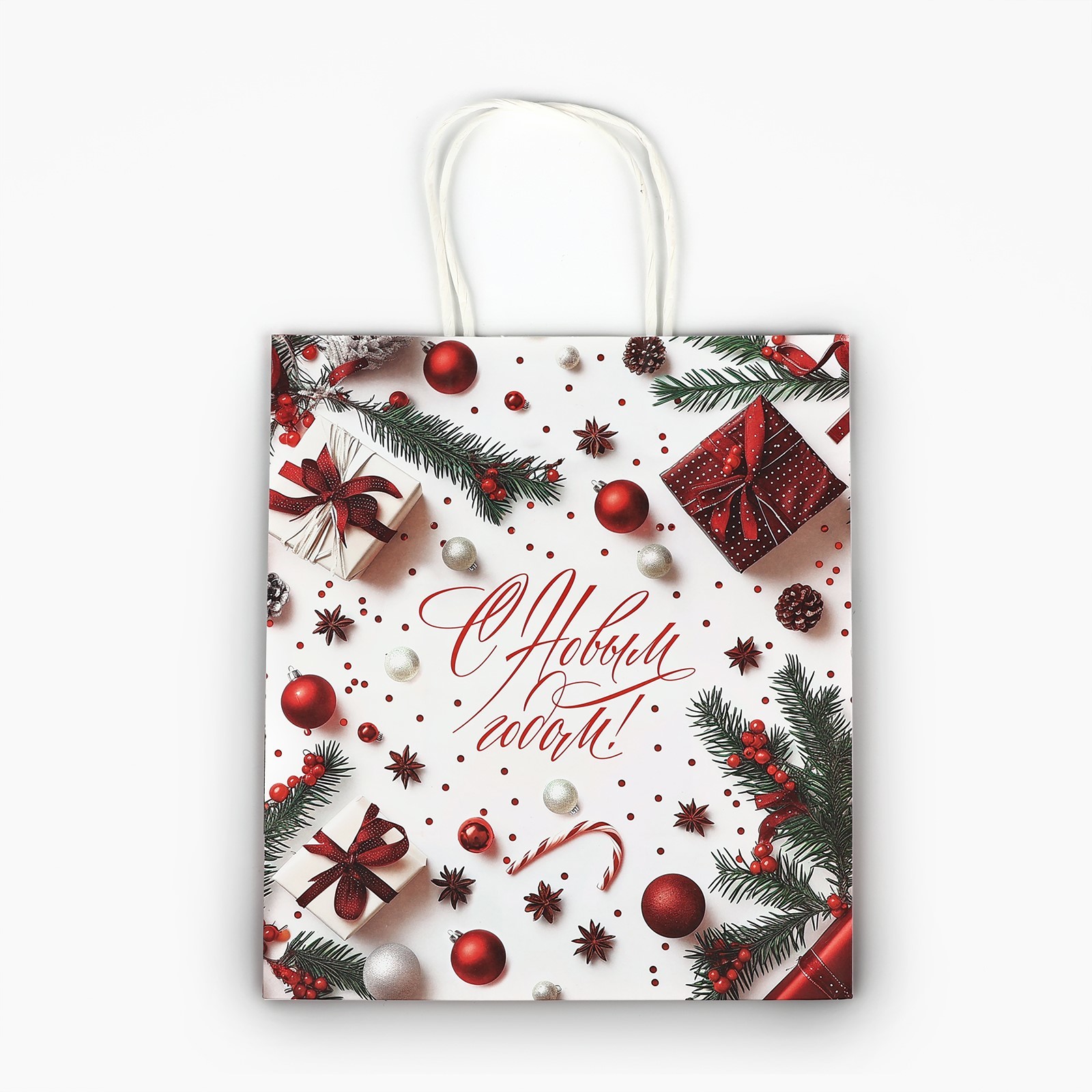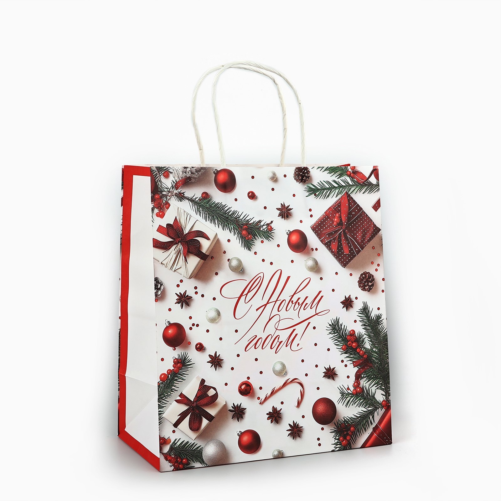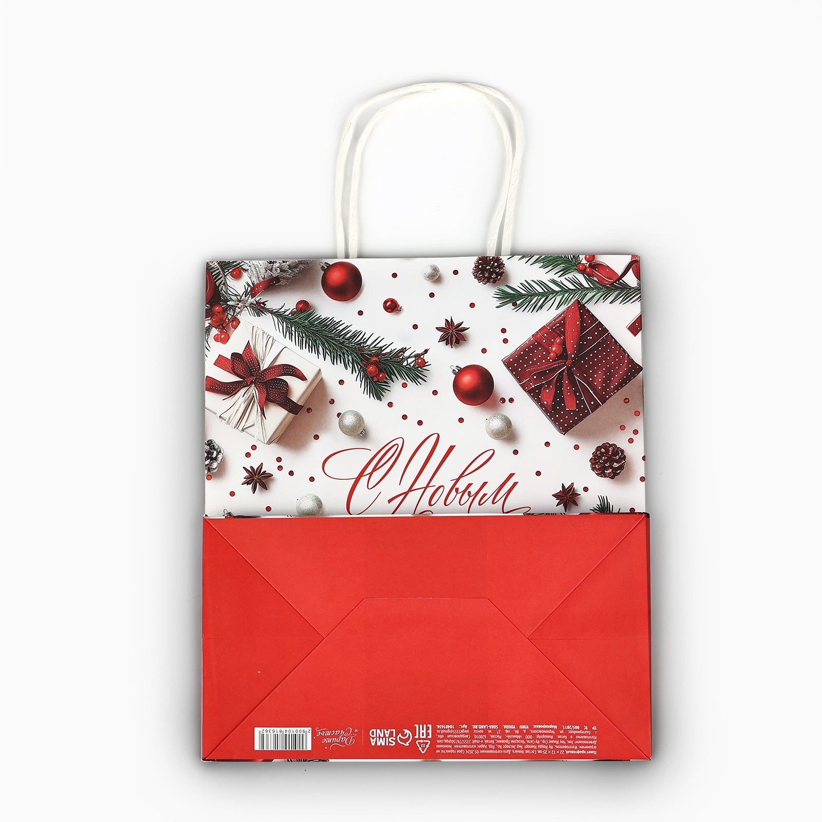 Пакет подарочный новогодний крафтовый «с новым годом», 22 х 12 х 25 см. Цвет:Разноцветный|Для кого:Унисекс|Плотность, г/м :150|Тематика:Новогодняя|Символ года:Нет|Тематика праздника:Новый год|Вид ручки:Крученый шпагат|Страна:Китай  развернуть описание ▼