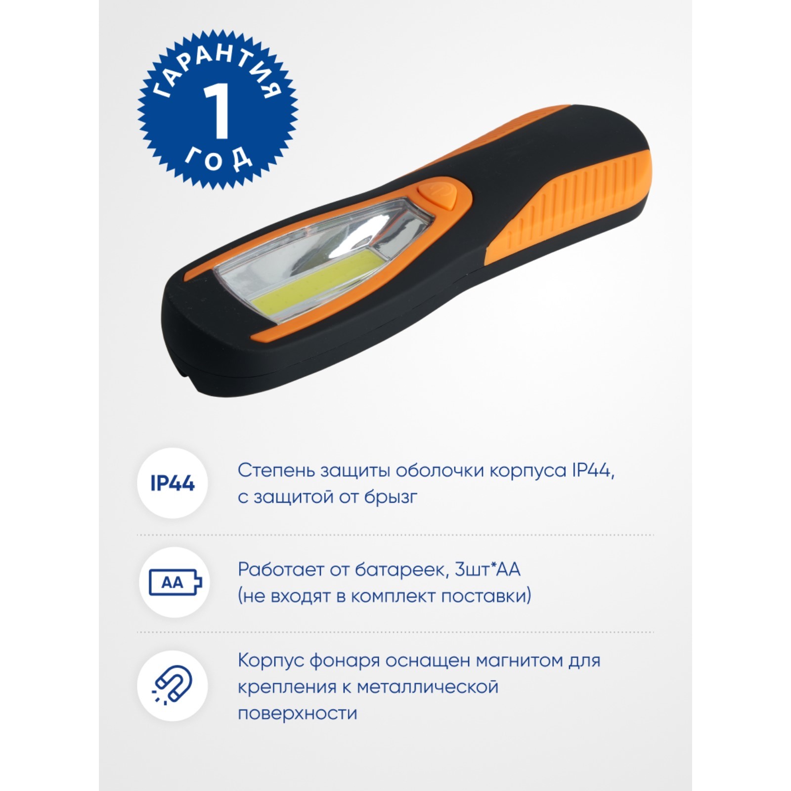 Фонарь рабочий feron th2402 на батарейках 3хaa, cob 2w пластик.
