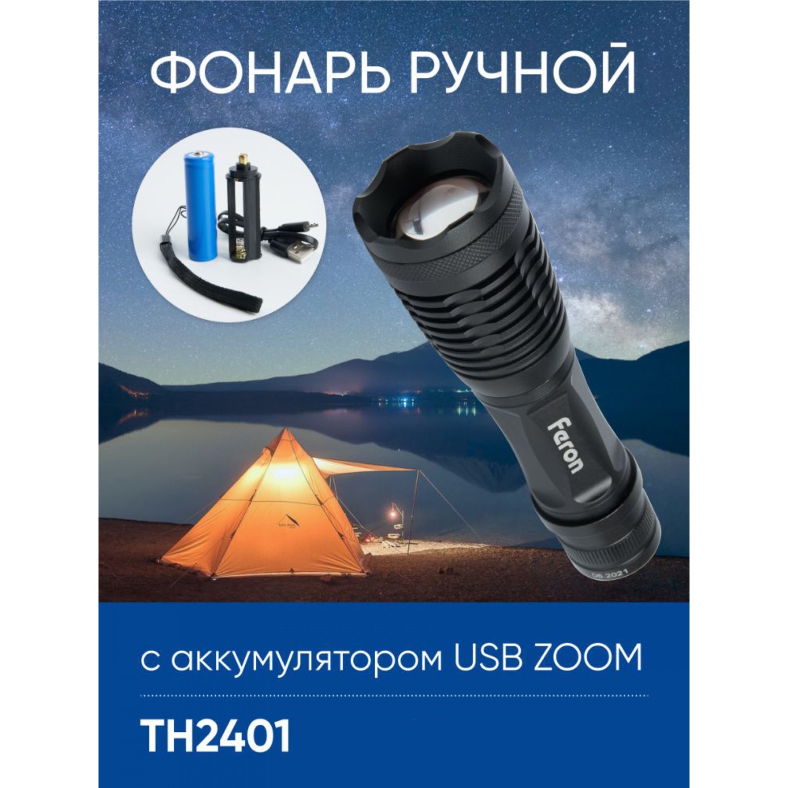 Фонарь ручной Feron Th2401с аккумулятором Usb Zoom