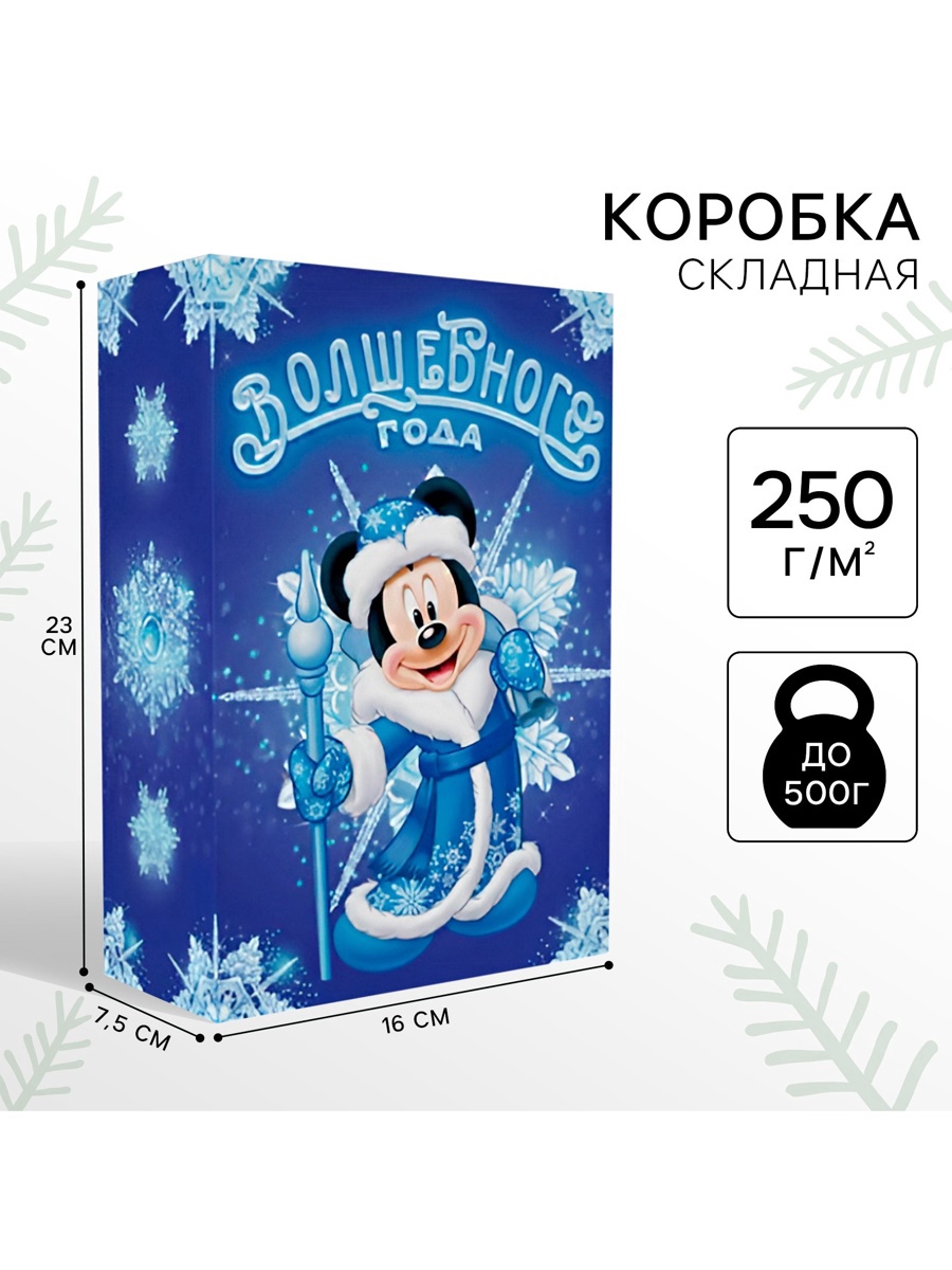 Коробка подарочная «с новым годом», 16 х 23 х 7.5 см, микки маус. Цвет:Синий|Для кого:Для мальчика|Для кого:Для девочки|Форма:Прямоугольная|Плотность, г/м :250|Длина, см:16|Ширина, см:7.5|Высота, см:23|Допустимый вес вложения, г:500|Тематика:Мультфильмы|Тематика:Новогодняя|Символ года:Нет|Тематика праздника:Новый год|Материал:Картон|Вид:Складные коробки|Размер:Средний (18-24 см)|Окошко:Нет|Крышка-дно:Нет|Страна:Россия  развернуть описание ▼