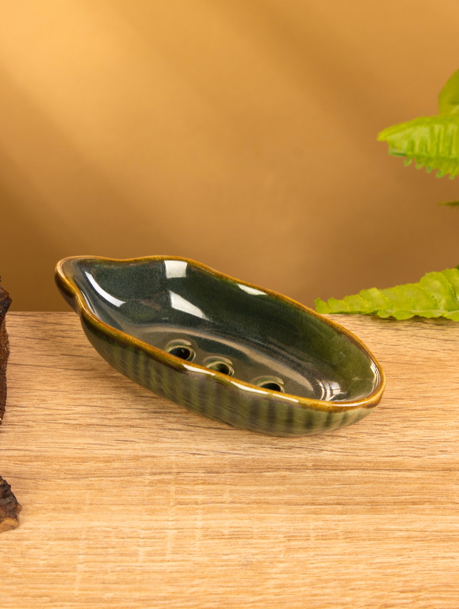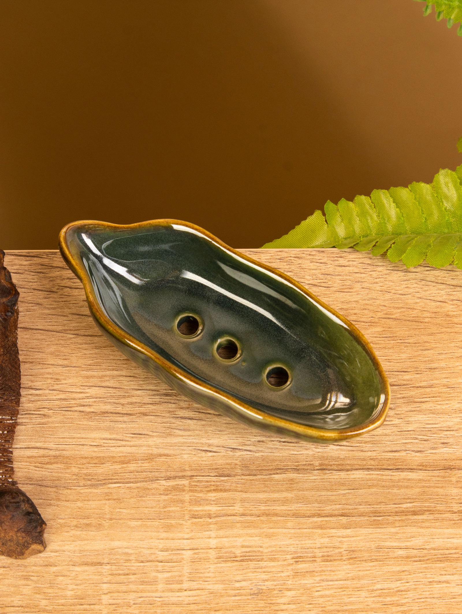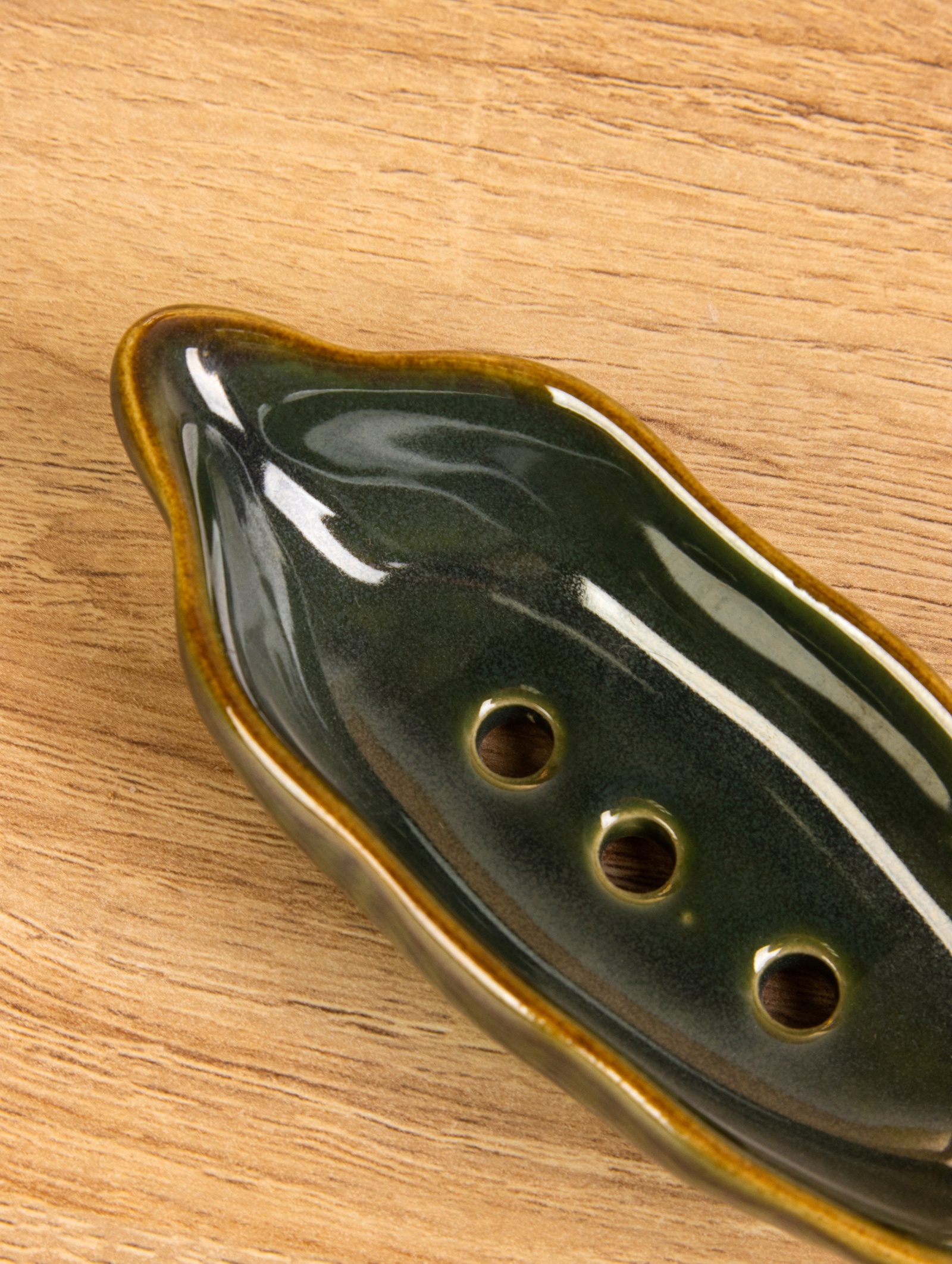 Соусник «листочек», 11x4x2.5 см, керамика, зелёный