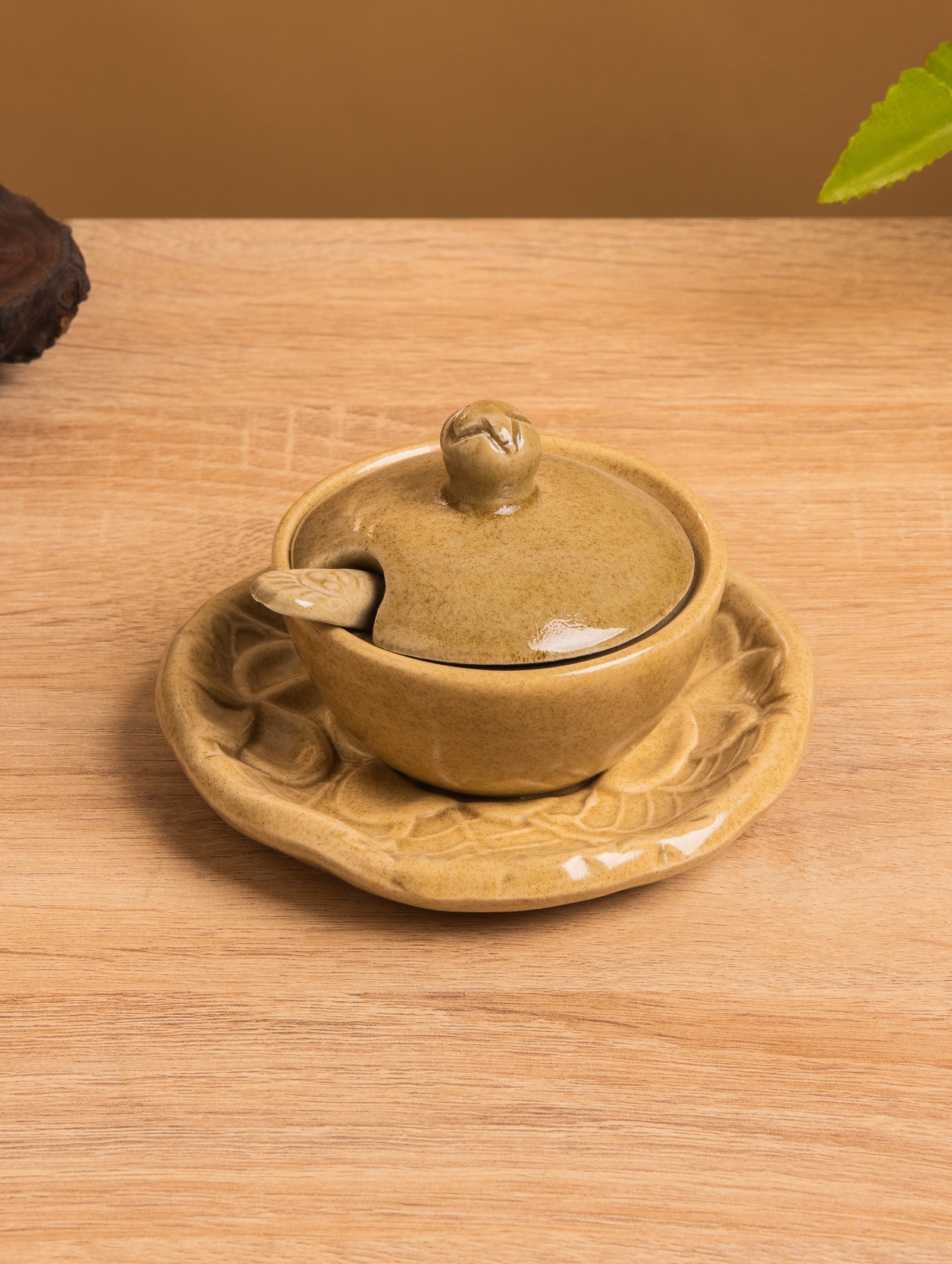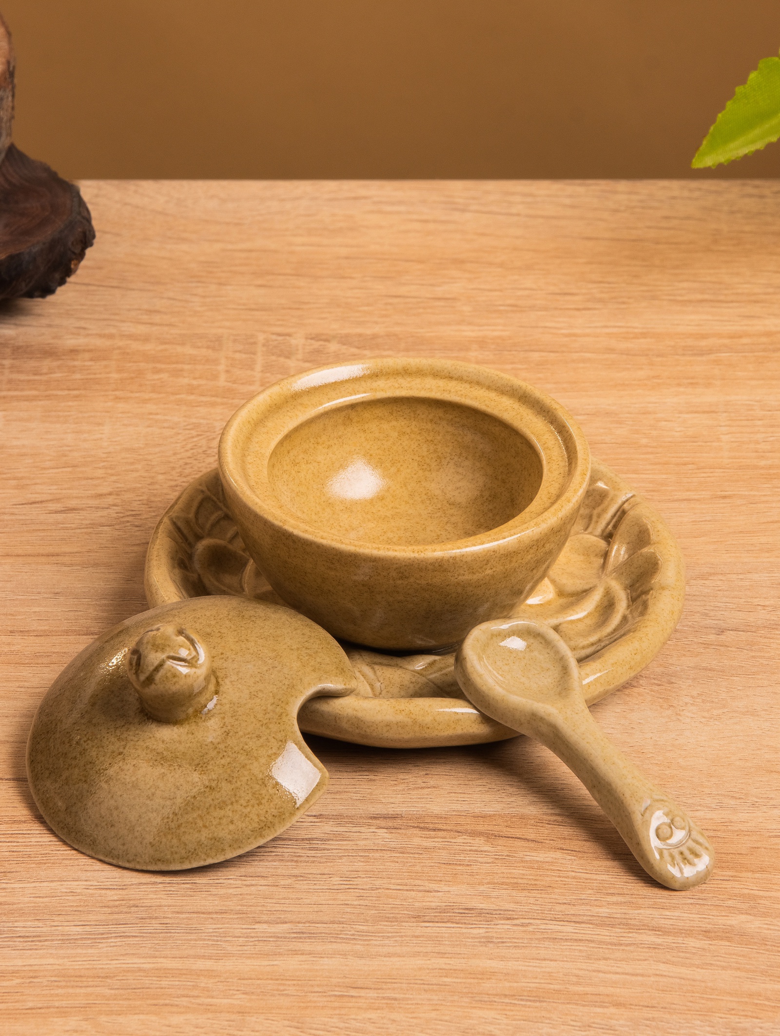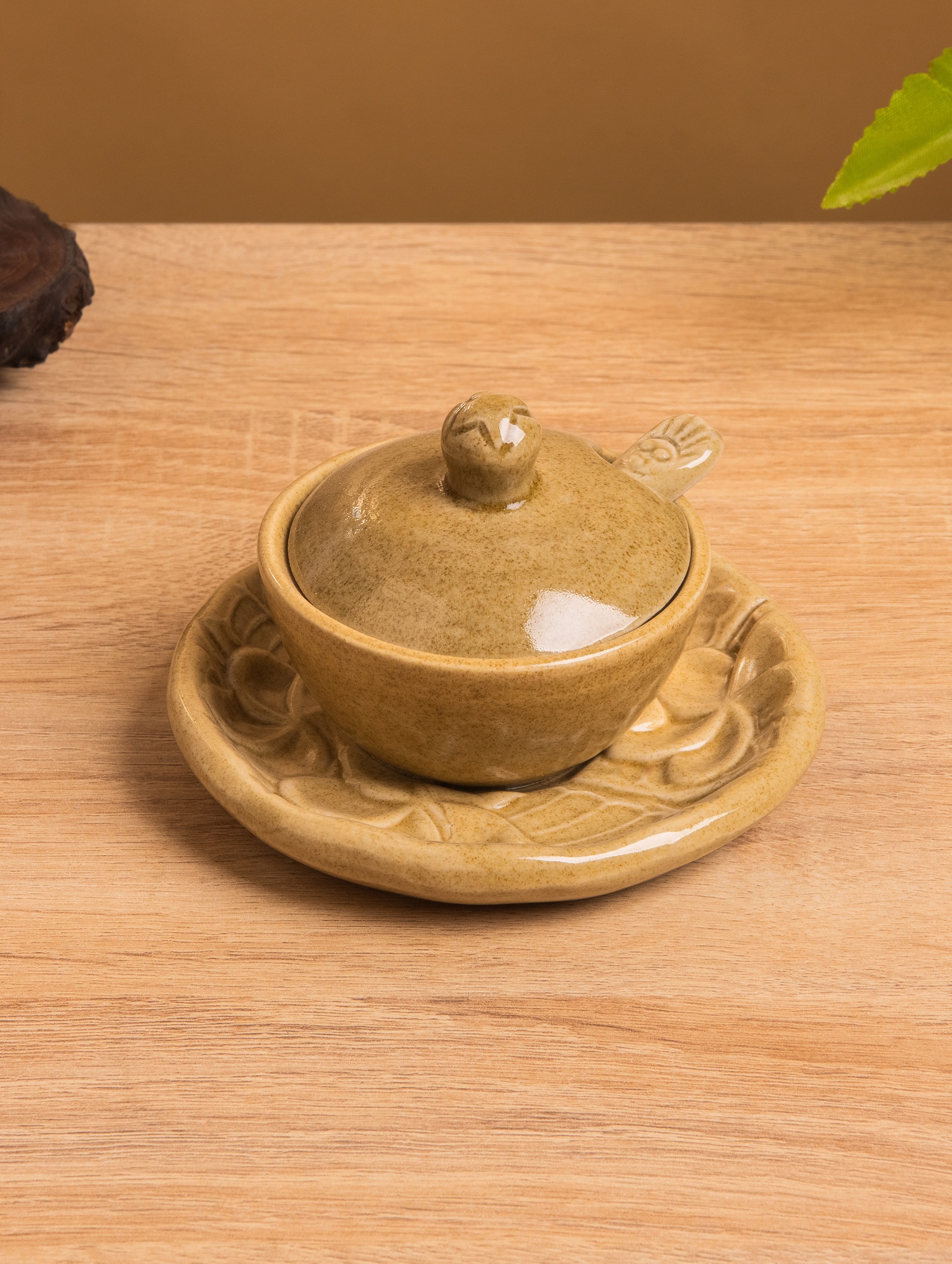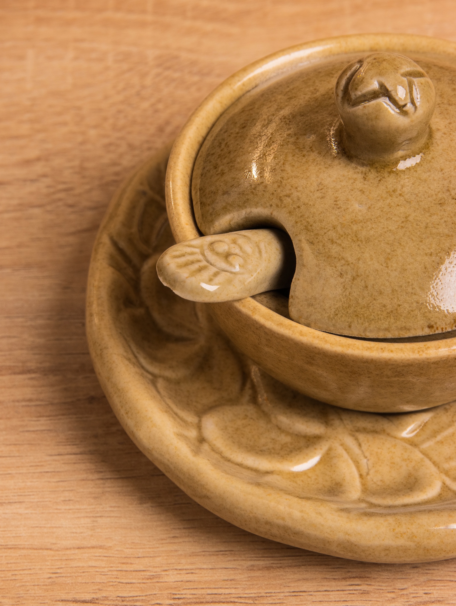 Соусник с крышкой на подставке «флора», 11x11x7 см, керамика, бежевый