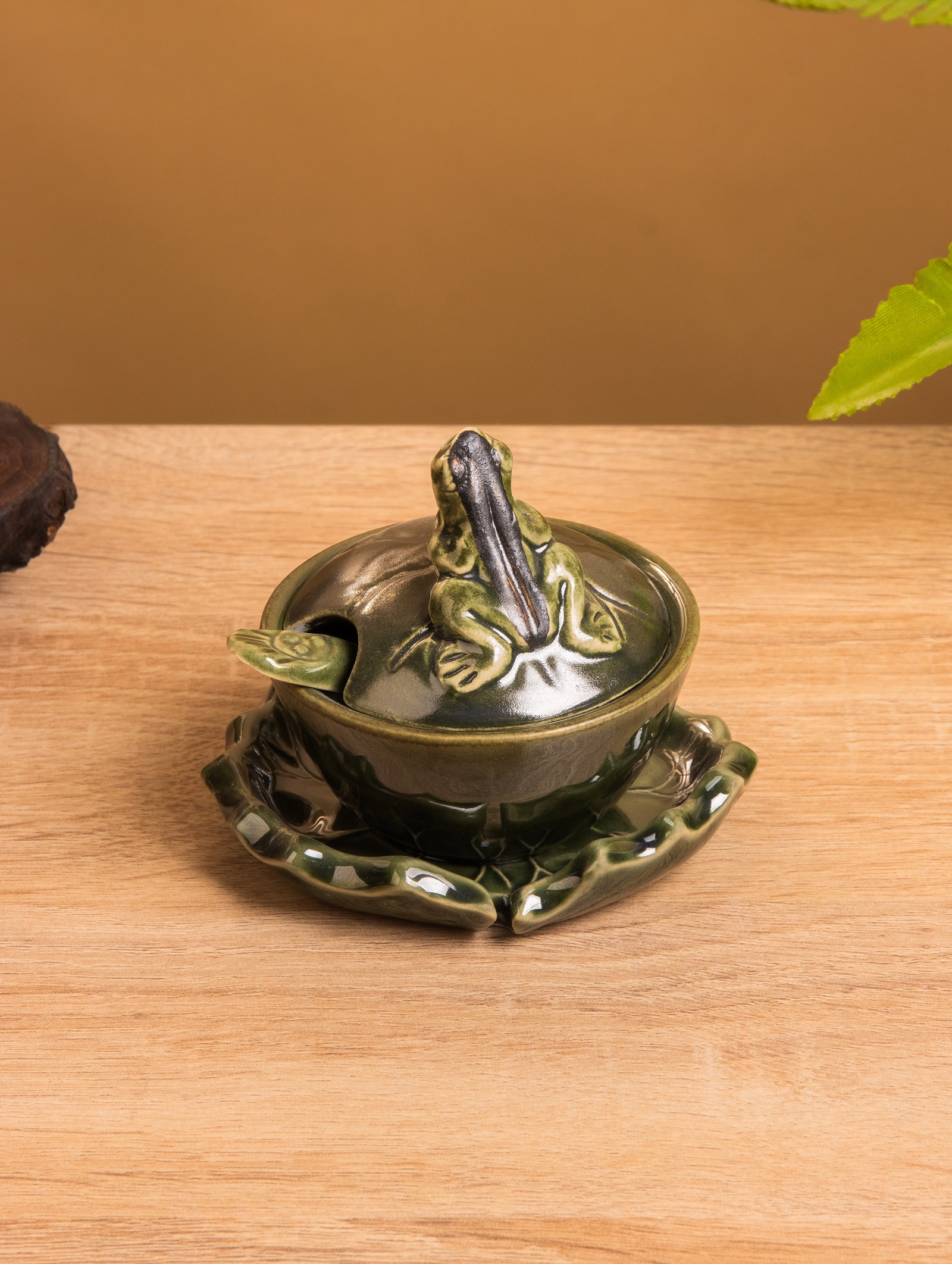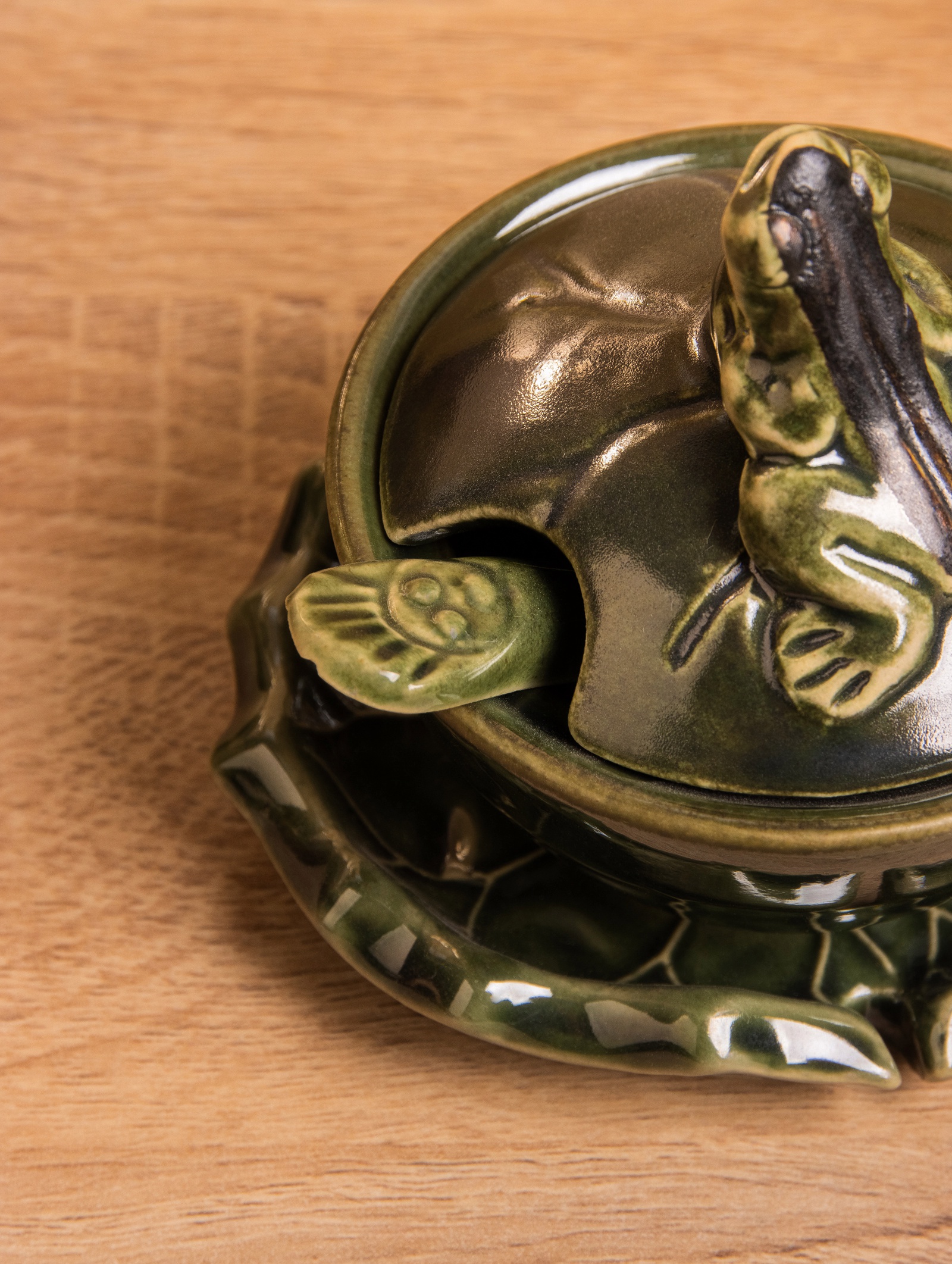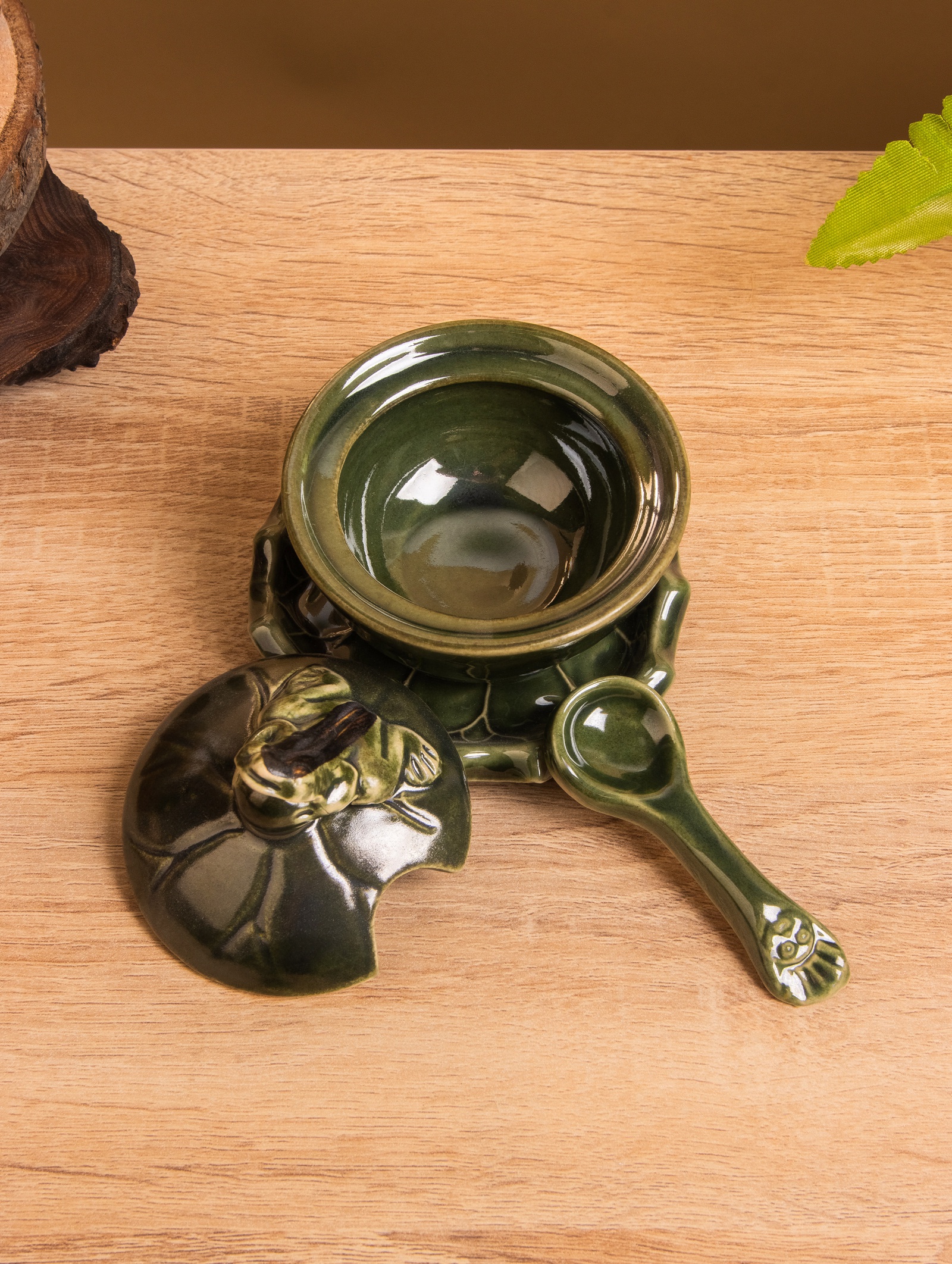 Соусник с крышкой на подставке «лягушка», 8x9x10 см, керамика, зелёный
