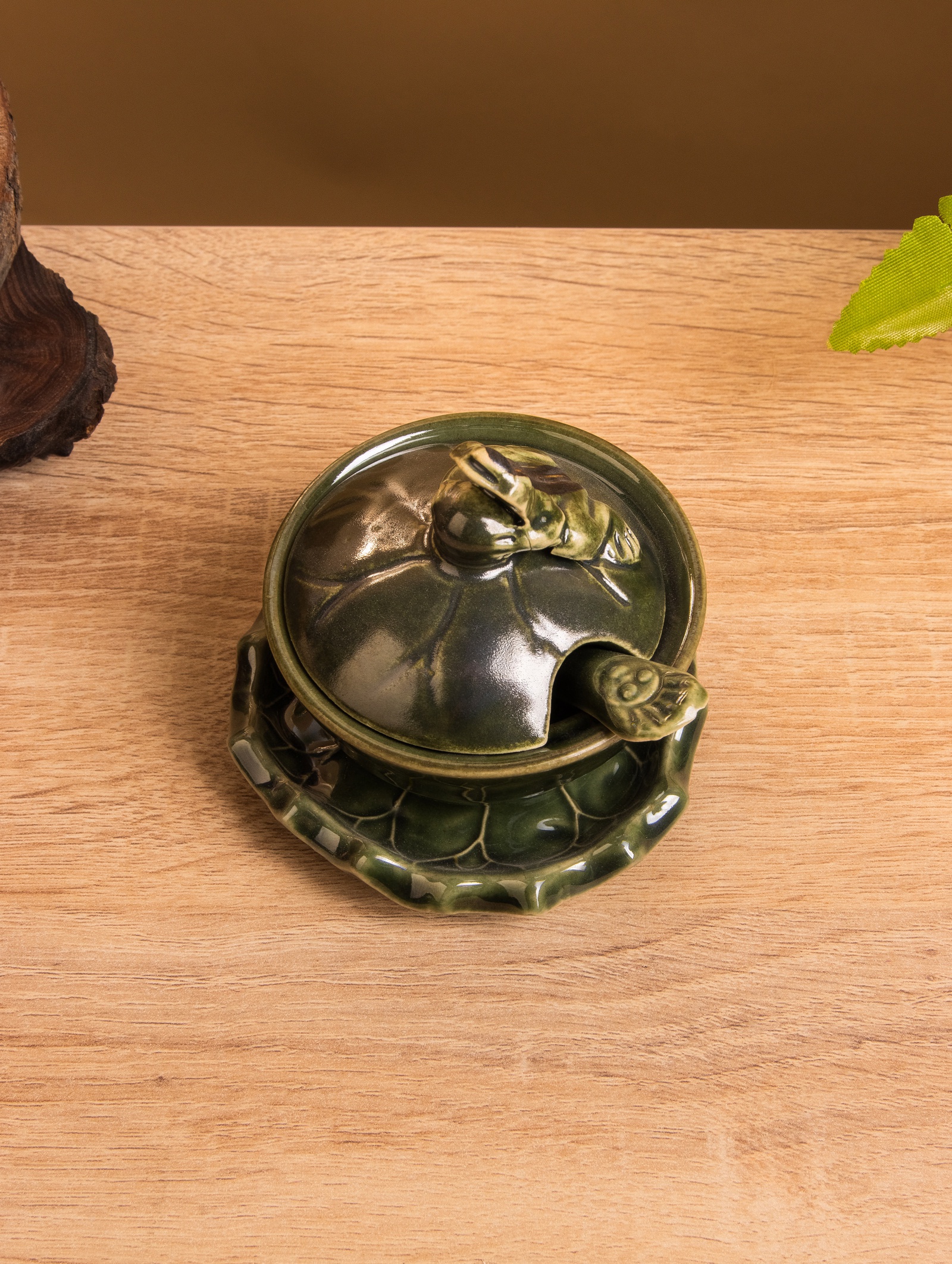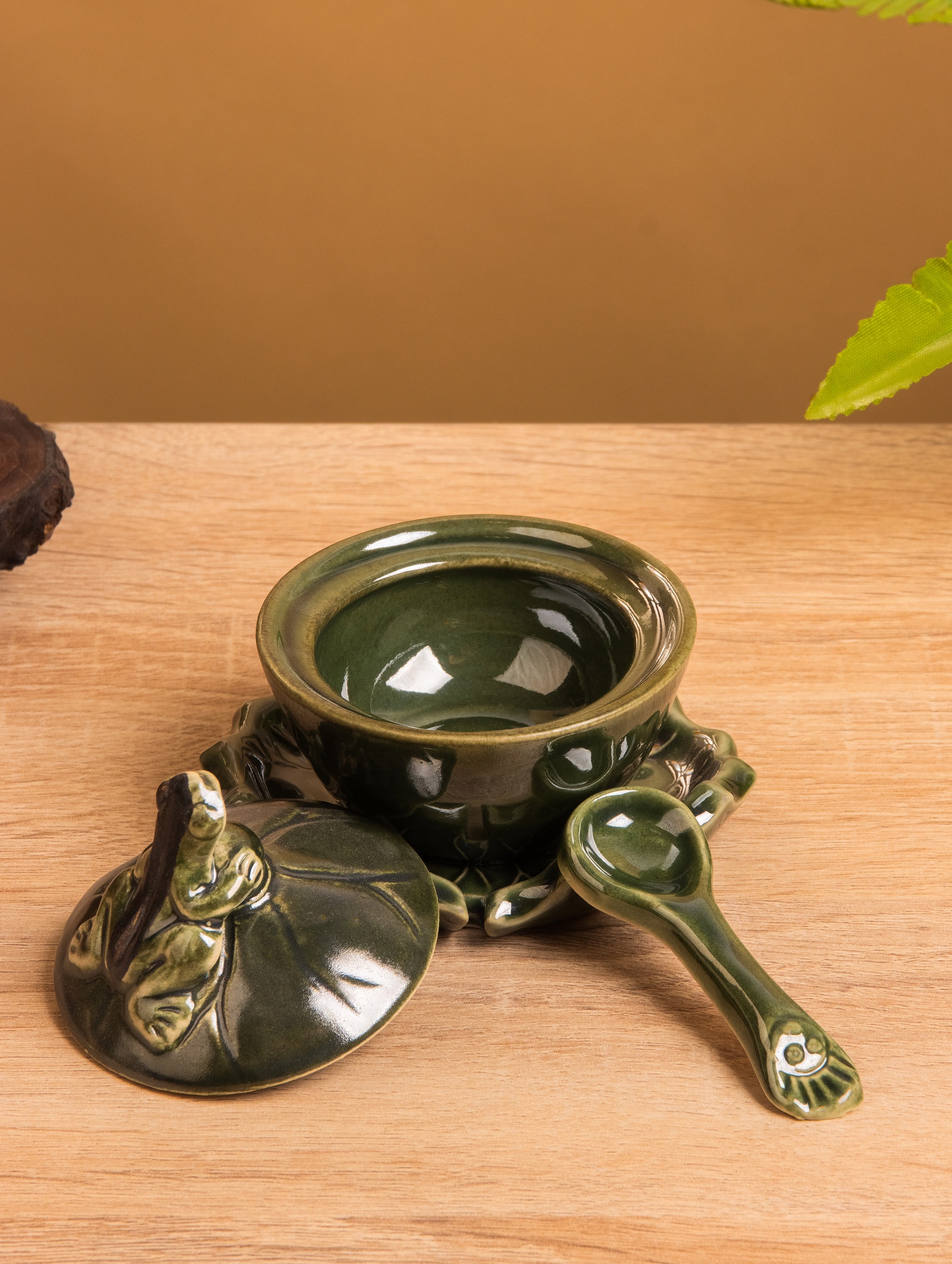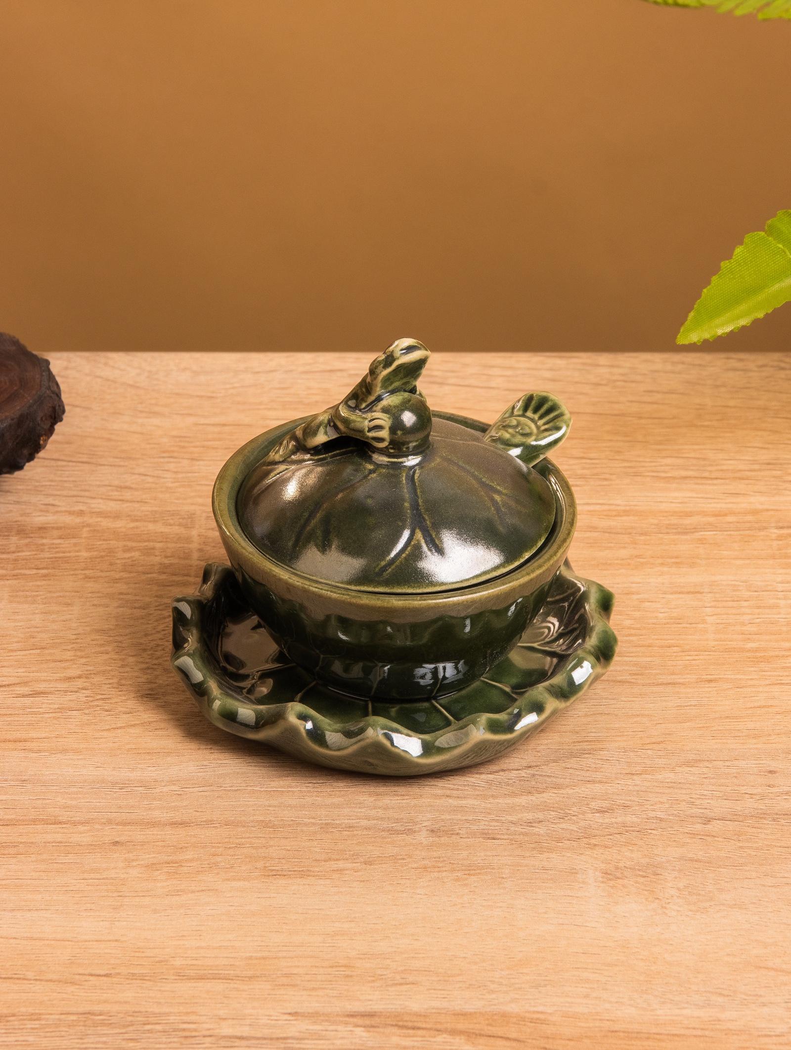 Соусник с крышкой на подставке «лягушка», 8x9x10 см, керамика, зелёный