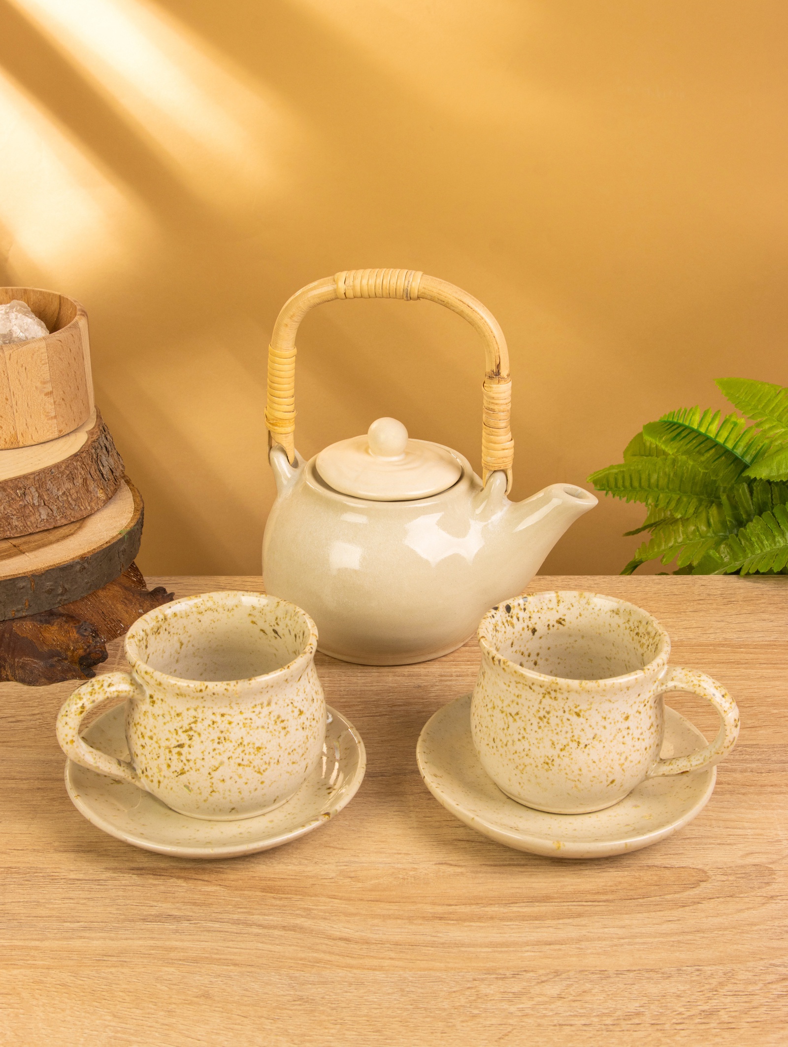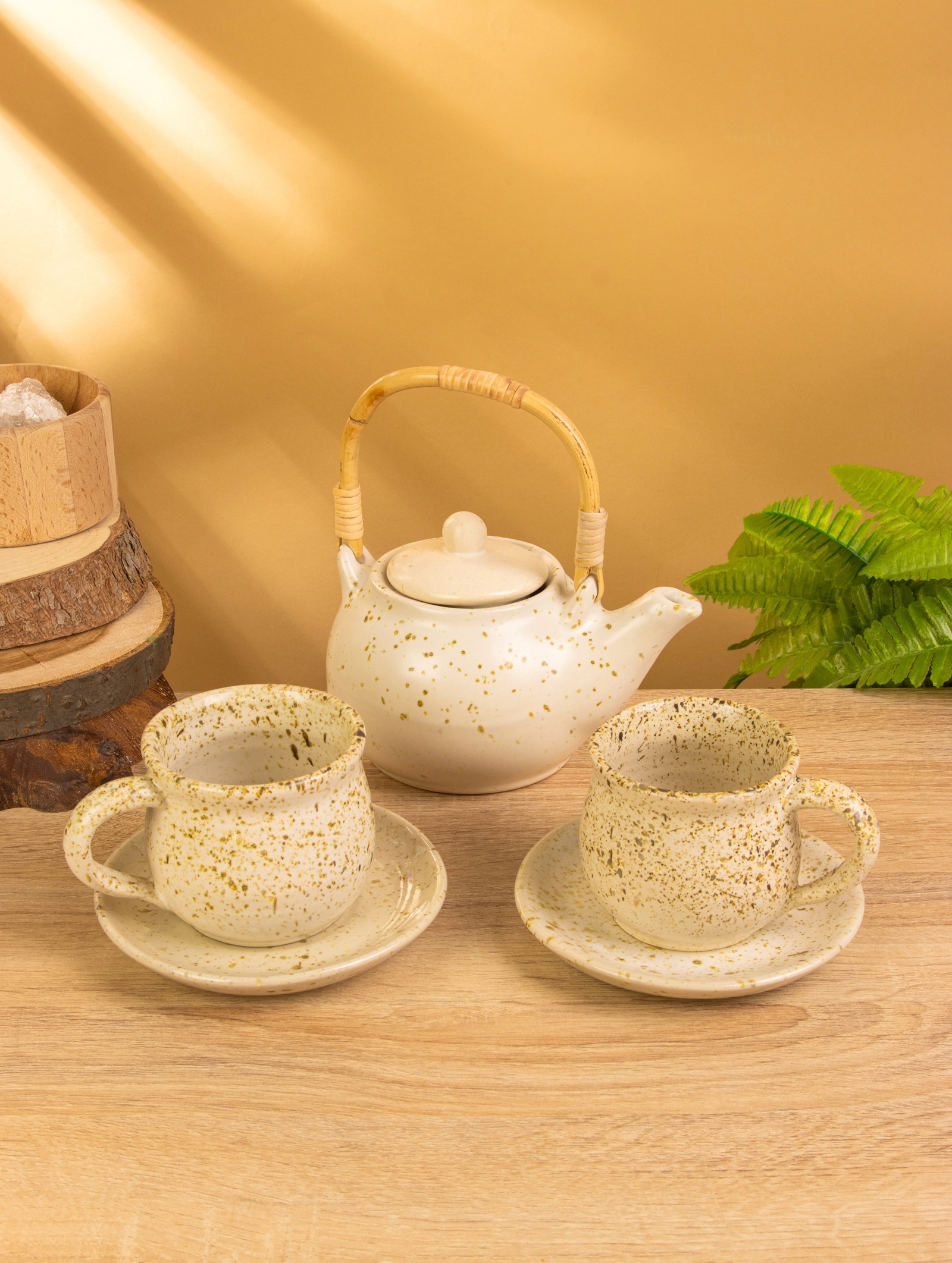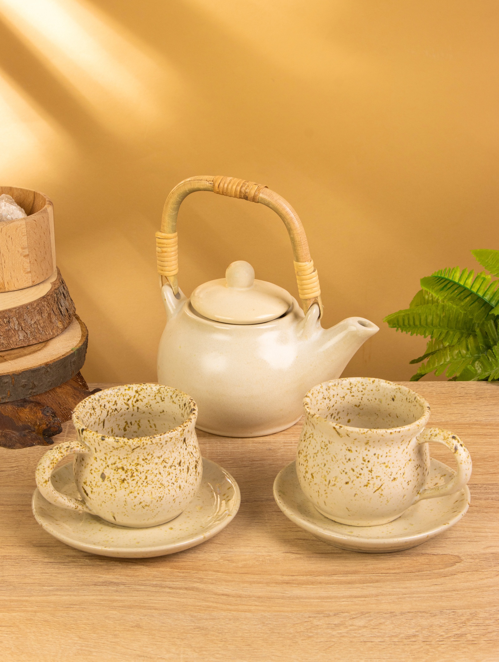 Набор чайный «камень», чайник, 2 кружки, 27x24x16 см, керамика, бежевый в крошку, микс