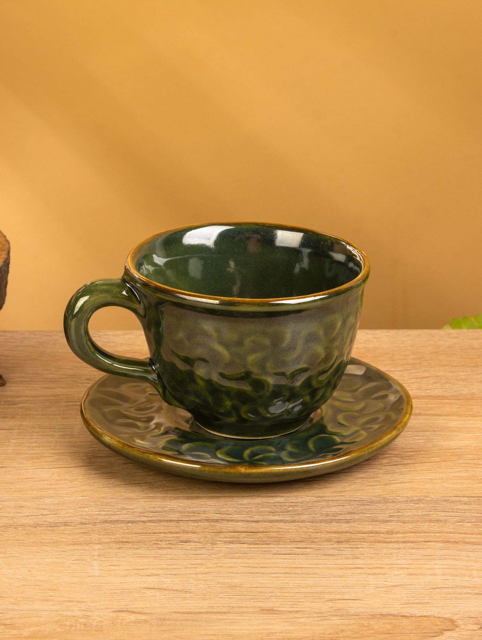 Чашка с блюдцем «флора 1», 13x13x8 см, керамика, зелёная