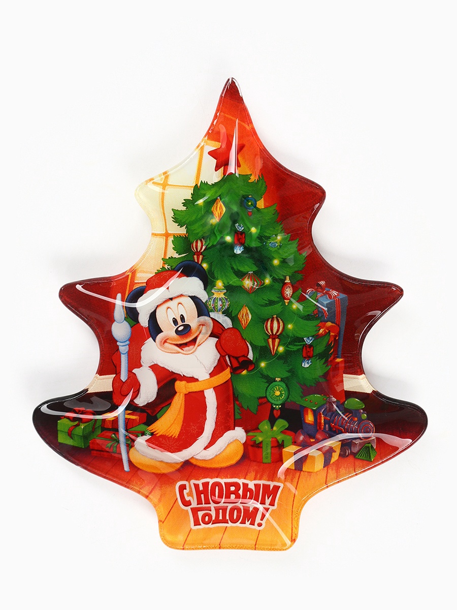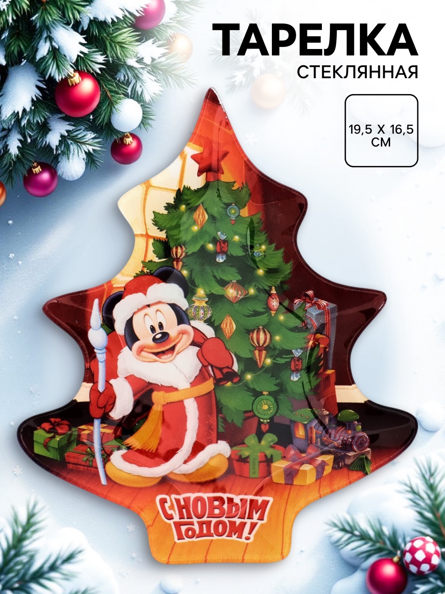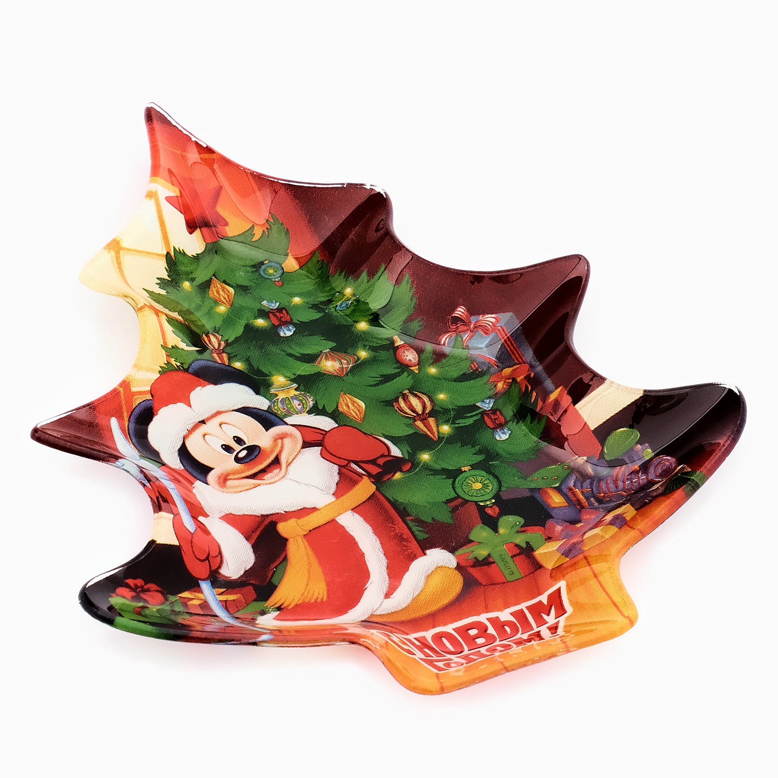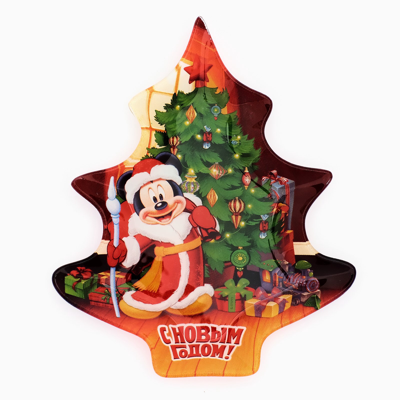 Тарелка стеклянная новогодняя «с новым годом!», микки маус, 19,5 х 16,5 см