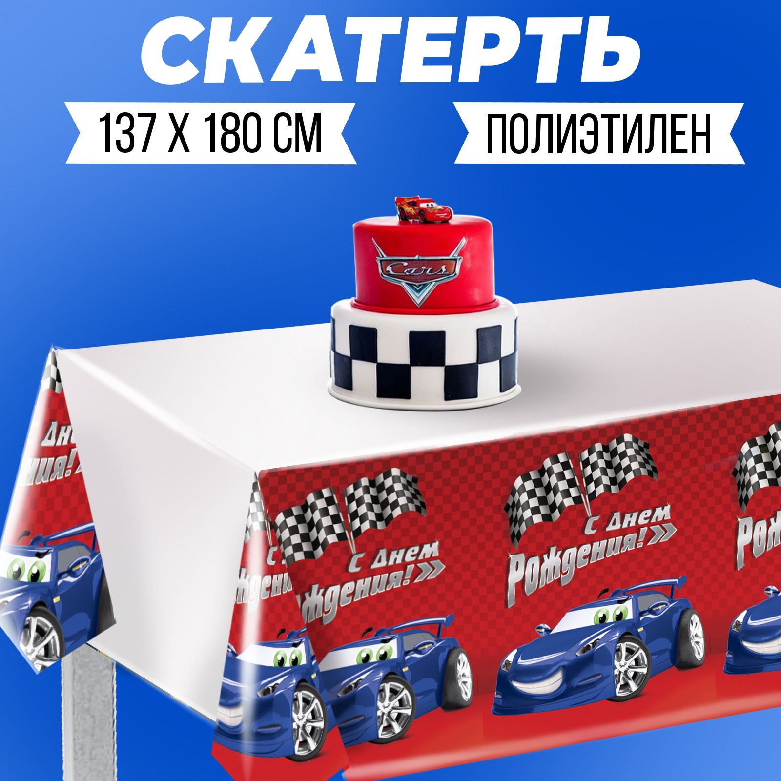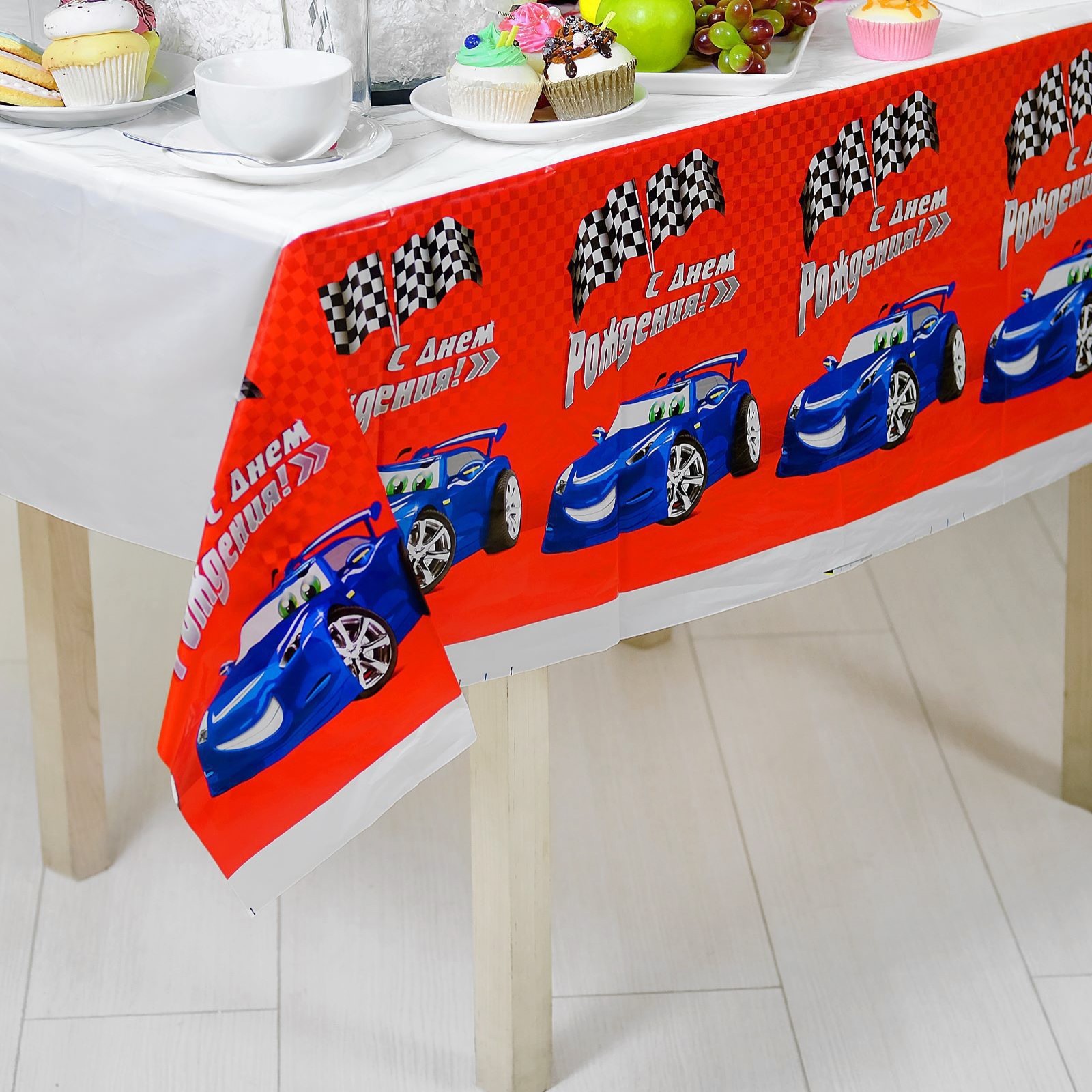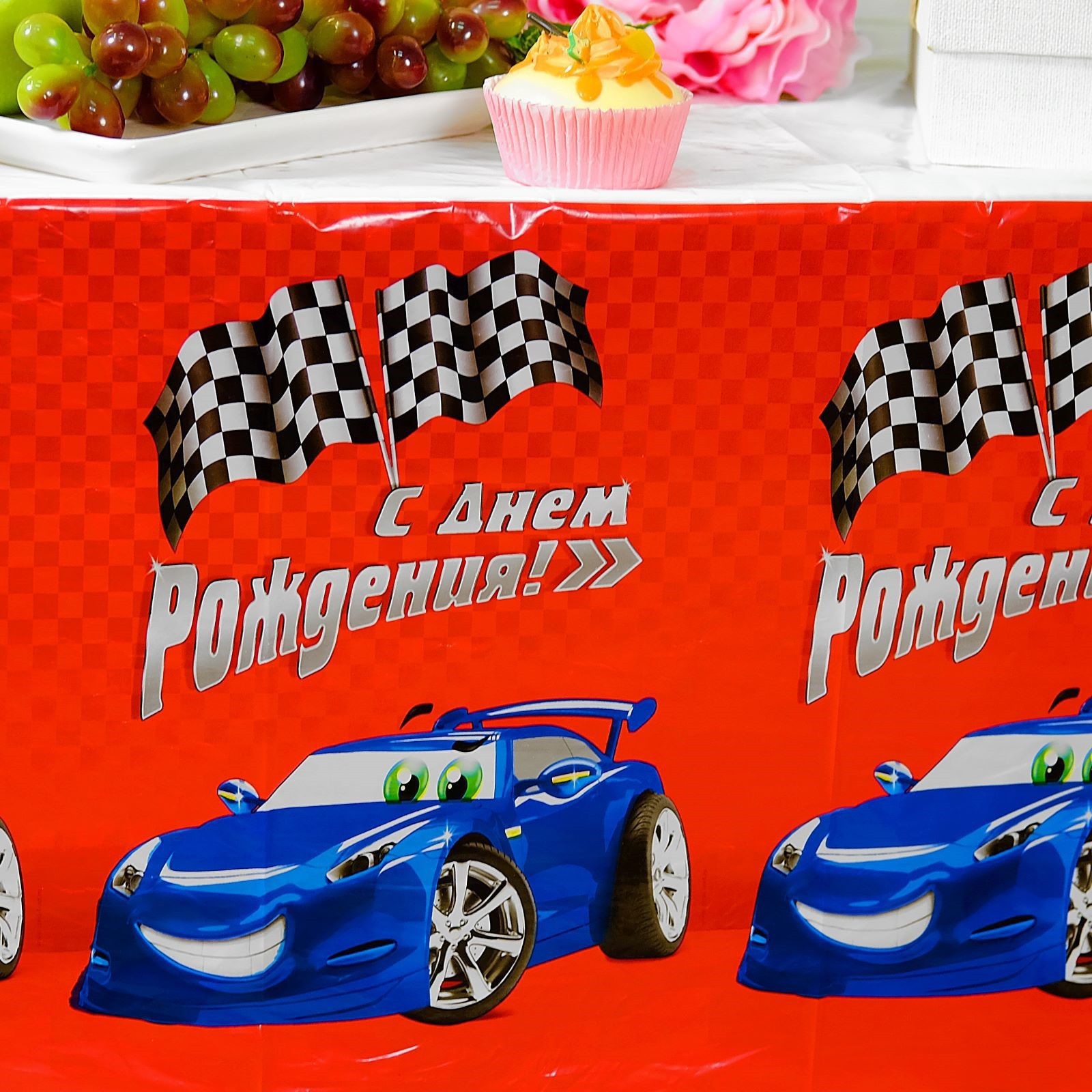 Скатерть одноразовая «с днём рождения», тачка, 180х137 см