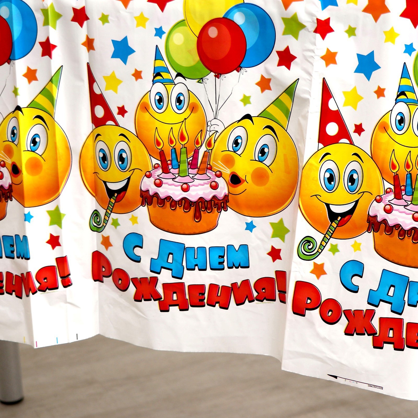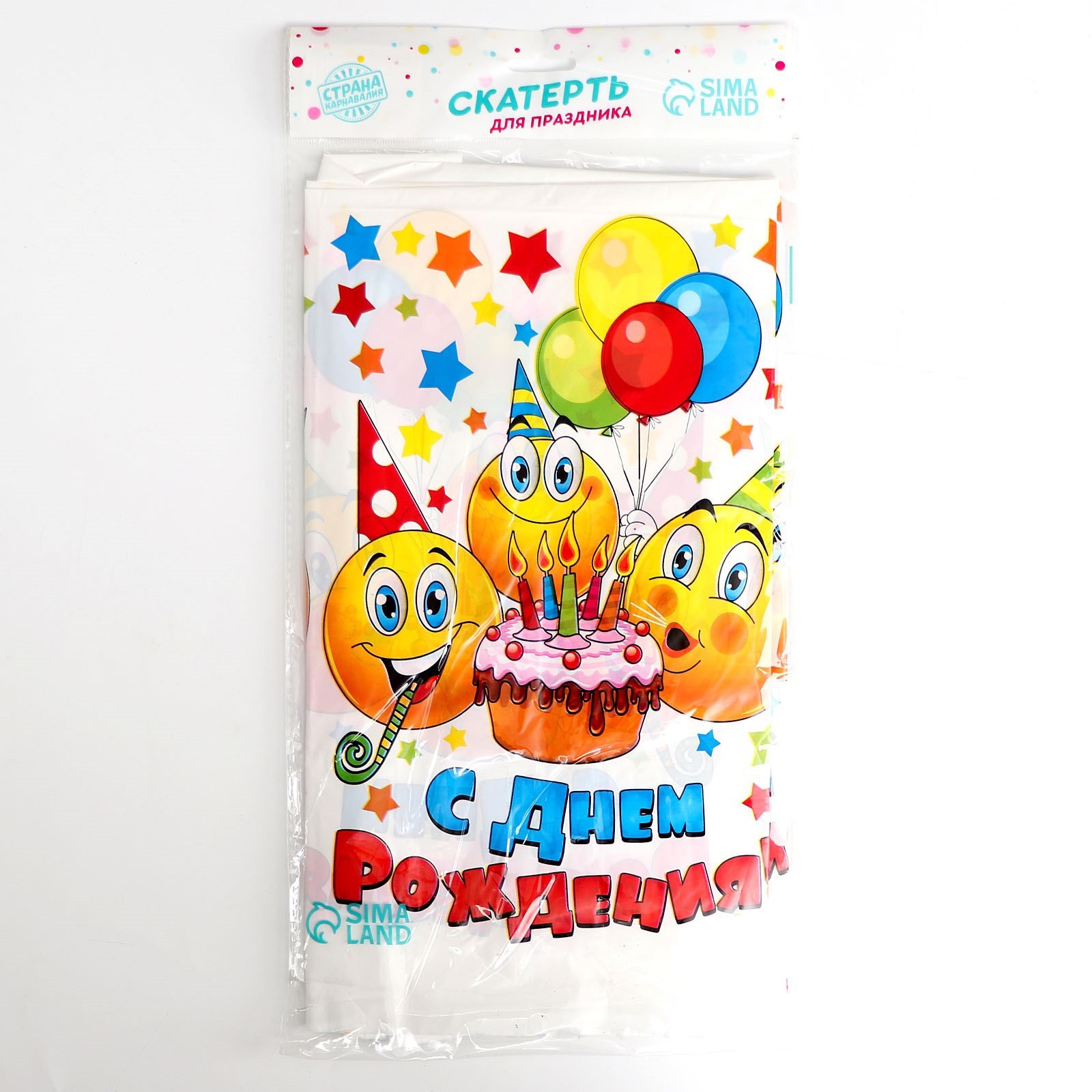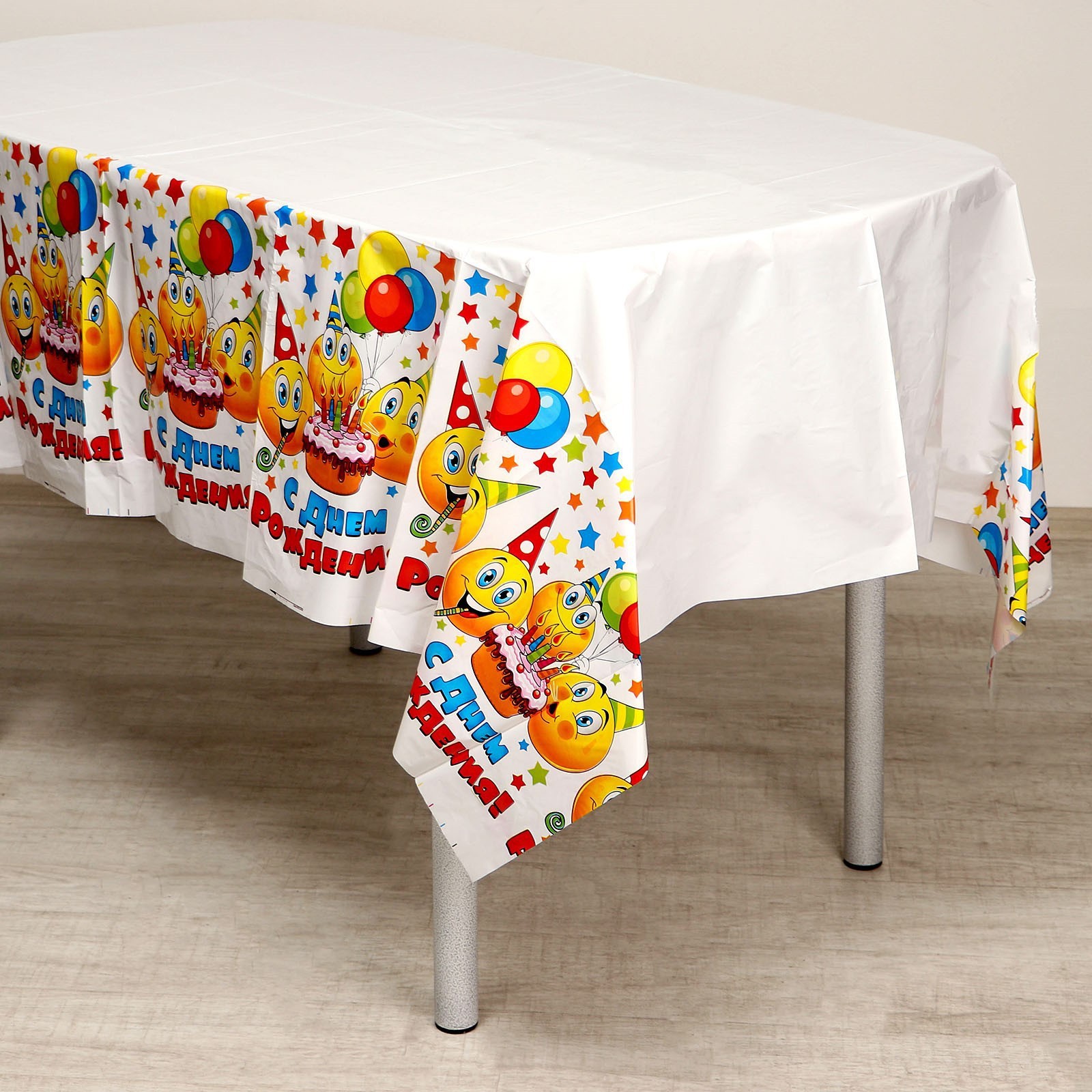 Скатерть одноразовая «с днём рождения», смайлы и тортик, 180х137 см