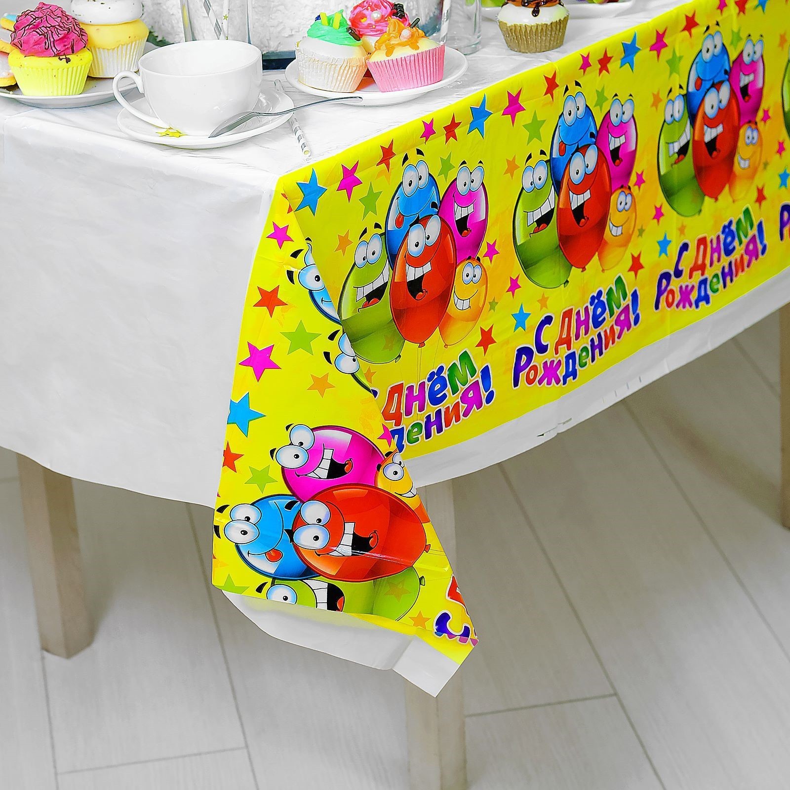 Скатерть одноразовая «с днём рождения», весёлые шары, универсальная