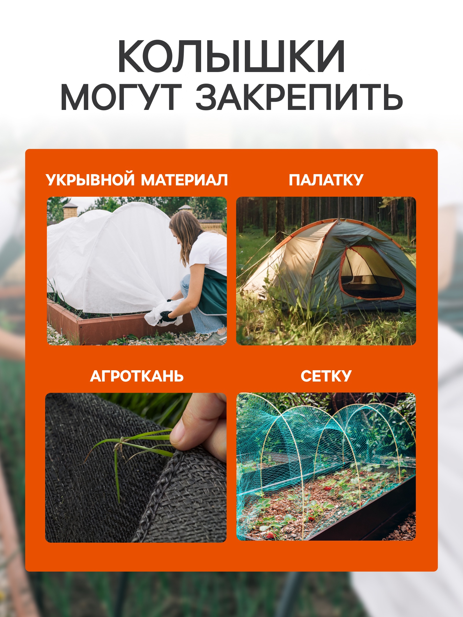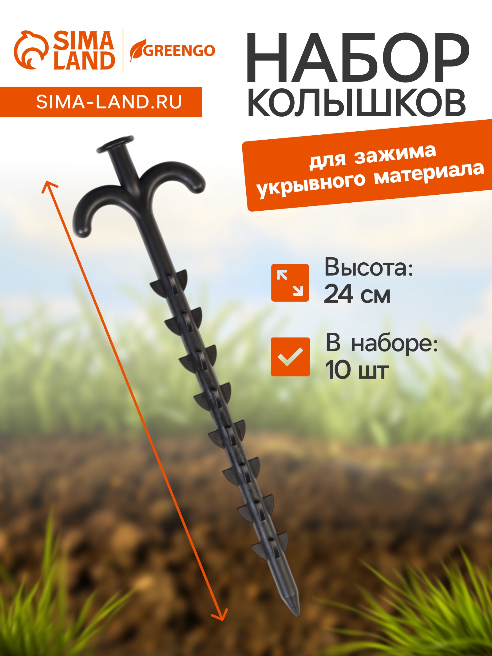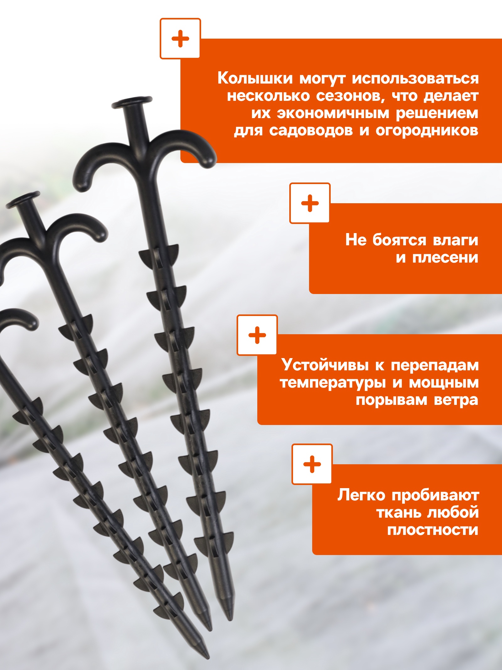 Набор колышков для зажима укрывного материала с грунтозацепами, H=24 см, набор 10 шт., Greengo