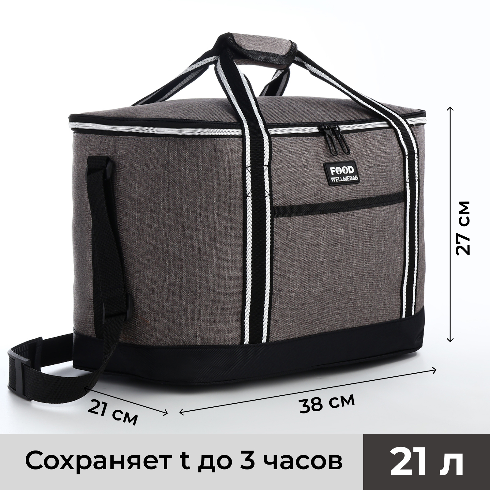 Термосумка на молнии, наружный карман, 21 л, цвет серый