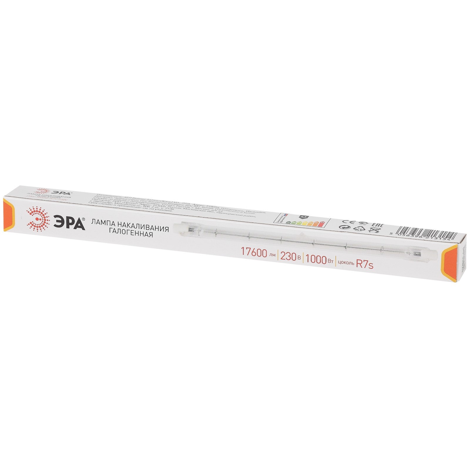 Лампа галогенная эра, r7s, 1000 вт, 17600лм, 3000 к. Цвет свечения: Тёплый белый Вид лампы: Галогенная Цоколь: RX7s Мощность, Вт: 1000 Напряжение, В: 230 Световой поток, лм: 17600 Материал основания: Металл Материал основания: Стекло Цветовая температура: 3000К Форма лампы: Трубчатая Индекс цветопередачи: RA > 80 Тип источника освещения: Лампа не в комплекте  развернуть описание ▼